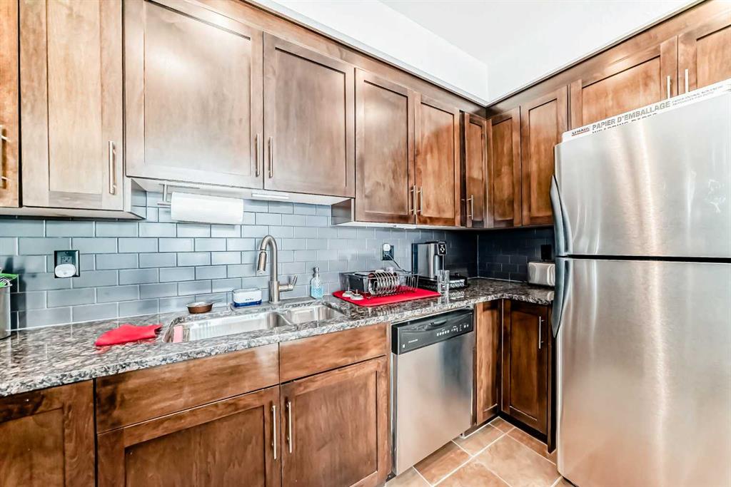 Welcome to Unit 206 at 1005B Westmount Drive, a beautifully maintained second-floor condo in The Savana at Strathmore Lake Estates, offering the perfect blend of comfort, convenience, and lakeside living. This well-designed 764 sq ft, 1-bedroom, 1-bathroom unit features a bright open-concept layout with generous natural light throughout. The kitchen is finished with granite countertops, rich shaker-style cabinetry, stainless steel appliances, and a breakfast bar, making it both functional and stylish. The cozy living area is anchored by a corner gas fireplace with tile surround, creating a warm and inviting space to relax. The spacious primary suite includes a walk-in closet and ensuite. Enjoy the convenience of in-suite stacked laundry. Step outside to your private balcony with a gas BBQ hookup, perfect for evening grilling. The unit also includes a titled surface parking stall. Located steps from Strathmore Lake, walking paths, parks, shopping, and everyday amenities, this home offers an easy, low-maintenance lifestyle in one of Strathmore’s most desirable condo communities.