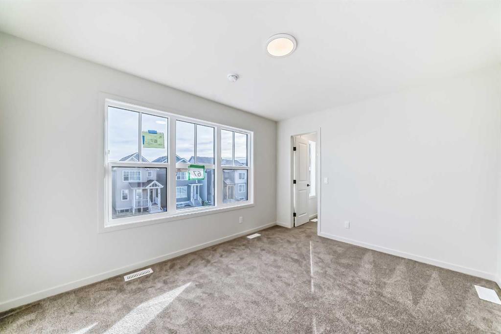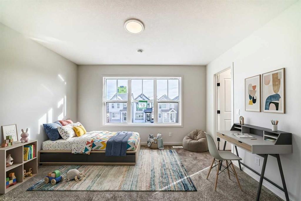 Welcome to the “Grada” by Hopewell Residential, where contemporary design meets family-friendly functionality in the vibrant community of Rangeview. Offering 2,112 sq. ft. of thoughtfully planned living space, this home features 3 spacious bedrooms and a bright, connected layout designed to make everyday life feel easier and more enjoyable. Step inside and you’ll immediately appreciate how the main floor is built for real life. Just off the entry, a versatile flex space with a glass insert door is ideal for a home office, playroom, homework zone, or quiet retreat. From there, the home opens into an inviting dining area and lifestyle room that flow effortlessly for both daily routines and entertaining. The soaring open-to-above living room adds a true wow factor, flooded with natural light and framed by large windows. An electric fireplace anchors the space, bringing a cozy focal point that makes it feel just as inviting on quiet evenings as it does when you’re hosting. At the centre of it all, the kitchen is designed to impress and perform. You’ll love the upgraded layout with a stylish chimney-style hood fan, built-in microwave, extra storage drawers, elegant quartz countertops, and a large island that anchors the space for casual meals, coffee catch-ups, and gathering with friends. The cabinetry is a standout with rich wood grain cabinets throughout, complemented by a stacked square modern backsplash for a crisp, contemporary finish. Thoughtful upgrades continue with spindle railing and knockdown ceiling textures, adding a modern edge across the home. Outside, this home offers something just as valuable: a large west-facing lot that’s made for sunshine and lifestyle. Whether it’s afternoon light pouring into the backyard, room for kids to play, or space to create the outdoor setup you’ve been dreaming of, this is the kind of lot that makes everyday living feel bigger, especially during Calgary’s long summer evenings. Upstairs, you’ll find three good-sized bedrooms, including a luxurious primary suite featuring a step-in shower, your own private retreat. The additional bedrooms are perfect for a growing family, served by a beautiful full bathroom, while the upper floor laundry room is perfectly placed to keep day-to-day life running smoothly. Downstairs, the basement is ready for your future plans with a 9-foot foundation, and the separate side entrance adds valuable flexibility, ideal for a future development or the potential of a mortgage-helper suite (a secondary suite would be subject to approval and permitting by the city/municipality). Set in southeast Calgary, Rangeview is designed around connection, pathways, parks, and a community feel that encourages getting outside, meeting neighbours, and enjoying a more lifestyle-forward neighbourhood. Discover your next chapter with The Grada.