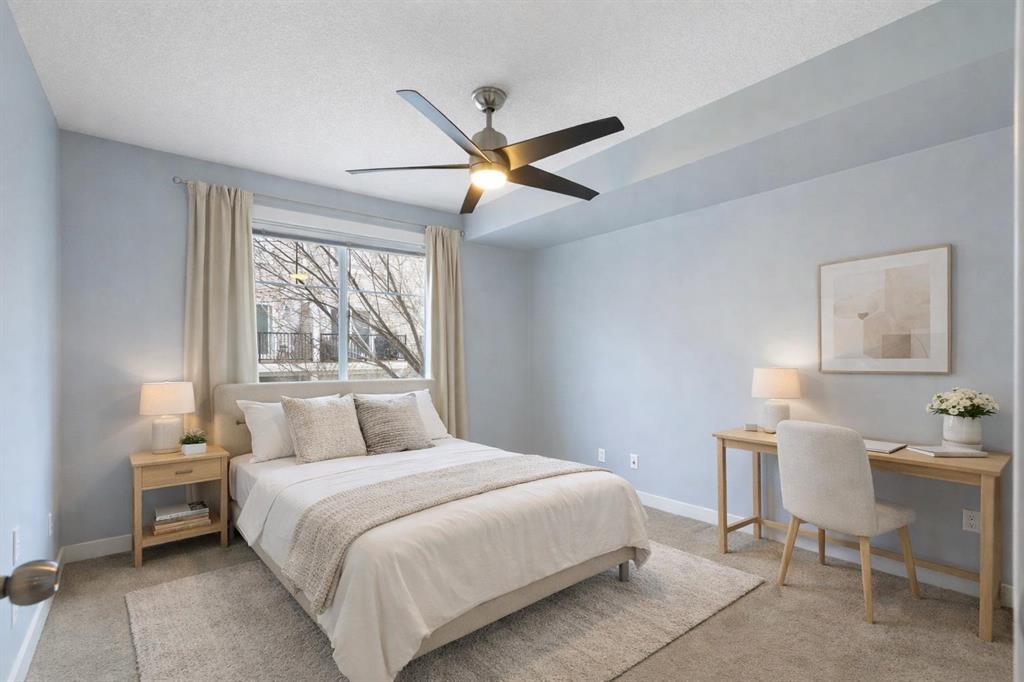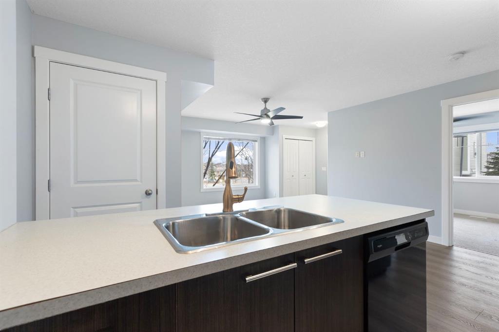 Welcome home to this perfectly situated, bight and sunny, south facing, two bedroom, one bathroom, unit with an assigned parking stall right outside of your private entrance! You won't want to miss this one! The large, open living space with treed south facing views welcomes you home from the end of the day. The kitchen, with breakfast bar, is the perfect spot for prepping dinner with friends, or hanging out with loved ones on a lazy Sunday morning. There are two spacious bedrooms, each with ample closet space and a private aspect. The huge, covered balcony is perfect for BBQ season, or for a lounge in the sun, whenever summer returns again. The three piece washroom as a newer walk-in shower (2022), and the hot water heater (2025), washer/dryer (2023), fan lights (2023), flooring and paint (2022) have all be done, so you can move in and just start living. You'll appreciate the layout as much as the in suite laundry and storage. Park your car and walk to all this area has to offer. Your steps from the picnics at the lake (it's just across the road!), grocery stores and shops, restaurants and coffee bars! Call your favourite realtor to schedule your showing today!