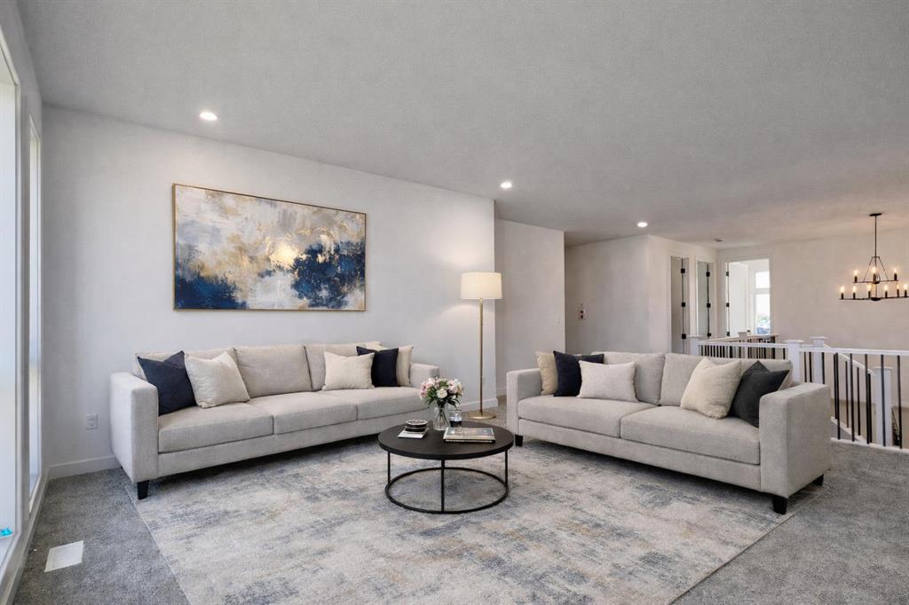 Welcome to this beautiful huge luxurious family home nestled on a quiet cul-de-sac, this stunning property offers OVER 3,200 sq. ft. above grade with 4 BEDROOMS and 3 BATHROOMS on the UPPER LEVEL! A grand, open-to-above entry sets the tone, leading to a main floor with soaring ceilings, gorgeous flooring, and abundant natural light. The chef’s kitchen is unbelievable! Featuring a 6-seat island, quartz counters, soft-close cabinetry, and a walk-through pantry. The bright dining area and spacious living room—with sleek fireplace—flow seamlessly to the deck and expansive pie-shaped backyard. A versatile den/office/formal dining room and powder room complete the main level. Upstairs, the airy BONUS room is perfect for family time. The primary suite boasts a walk-in closet, spa-inspired 5-piece ensuite, and DIRECT access to the laundry room. Three additional bedrooms (including one with ensuite) plus a family bath round out the level. The TRIPLE garage easily fits vehicles and toys. Close to schools (including the new high school), shopping, golf, baseball, and tennis—just 10 minutes to Stoney Trail. This is luxury living, redefined.