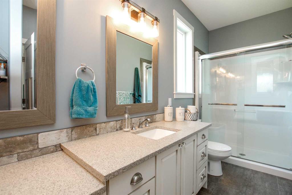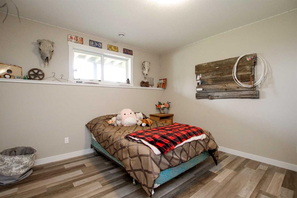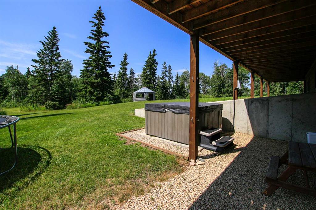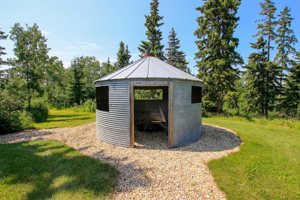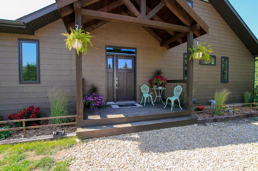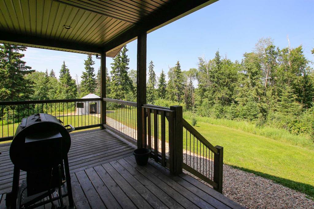 157.69 ACRES ~ FULLY DEVELOPED 2 STOREY WALKOUT ~ 5 BEDROOMS, 4 BATHS W/OVER 2000 SQ. FT. ABOVE GRADE~ 40' X 60' HEATED SHOP W/KITCHEN, BATHROOM, LAUNDRY & LOFT ~ SET UP FOR HORSES ~ 2 PONDS ~ Located just minutes east of Morningside and ideally positioned between Lacombe and Ponoka, this property offers the perfect blend of convenience and seclusion ~ Covered front veranda welcomes you to this well cared for home loaded with upgrades ~ The spacious foyer with 2-storey ceilings leads to the open concept main living space featuring hardwood flooring, high ceilings and an abundance of large windows that fill the space with natural light ~ The stunning kitchen offers an abundance of white cabinets, tons of quartz counter space including a large island with an eating bar, full tile backsplash, under cabinet lighting, window above the sink with a view, upgraded stainless steel appliances, and access to the wrap around deck and yard ~ Easily host large gathering s in the dining room that offers a second garden door with access to the wrap around deck ~ The living room is a generous size and is centred by a cozy fireplace that features a stone surround, raised hearth and a mantle ~ The primary bedroom can easily accommodate a king size bed plus multiple pieces of furniture, has dual closets with built in organizers and an ensuite with a walk in shower and oversized vanity with a built in desk ~ The home office has large windows that fill the space with natural light and is located next to the 2 piece bathroom ~ Laundry is located in it's own room just off the foyer, and offers built in cabinets ~ Open staircase overlooks the main floor and leads to the upper level where you will find 2 generous size bedrooms, a 4 piece bathroom and a playroom or storage space ~ The fully finished walkout basement with high ceilings, large above grade windows and operational in floor heat offers two additional bedrooms, a den/craft room, 4 piece bathroom, ample storage space and a large family room with a separate entry leading to a covered patio area with a hot tub ~ Just behind the house is a fire pit area and a playhouse ~ 40' x 60' shop is heated and fully finished inside with a full kitchen, 4 piece bathroom, laundry, and loft with another treed fire pit area ~ Fencing for horses with a barn and waterer ~ 2 ponds offer water supply for livestock ~ This beautiful property is surrounded by mature trees, rolling hills, scenic country views and is perfectly set up for a variety of uses; hobby farm, equestrian retreat or simply more space to live and grow! Seller receives annual surface lease of $3,000/year.