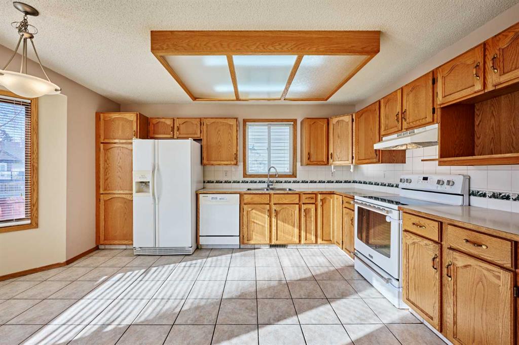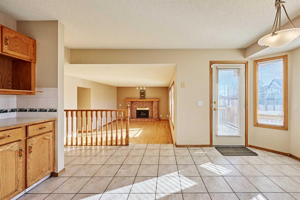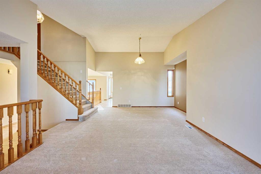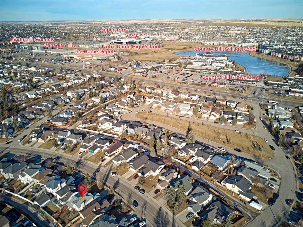 Welcome to this warm and inviting home in the sought-after community of Harvest Hills, known for its quiet streets, walking paths, parks, and easy access to everyday amenities. With quick connections to major roads such as Deerfoot Trail, shopping, schools, and the Calgary International Airport, this location offers both comfort and convenience for busy families and professionals. Inside, the main floor features a full kitchen with a bright dining nook, along with a dedicated dining room that flows into the family room, where high vaulted ceilings create an open and welcoming feel. A half bathroom, main-floor washer and dryer, and a functional office/den with built-in desk, cabinets, and drawers add everyday practicality. Upstairs, the primary bedroom offers a comfortable retreat with a walk-in closet and full ensuite bathroom. Two additional bedrooms and another full bathroom provide plenty of space for family or guests. The fully developed basement is a great bonus space, offering a large recreation room with a wet bar, flexible space for a gym, games area, or hobby room, and a full bathroom — perfect for relaxing or hosting friends. Recent upgrades include BRAND NEW CARPETS and NEW PAINT on the main and upper levels, central vacuum, central air conditioning, and a ROOF REPLACED IN LATE 2025 with durable Class 4 asphalt shingles, giving you peace of mind for years to come.