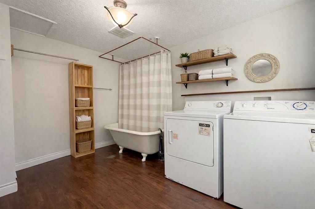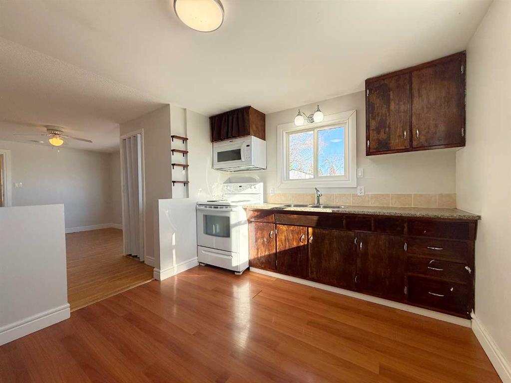 This 1958 bungalow offers 702 sq ft with bright main-floor living space and a practical, efficient layout. The functional living room and eat-in kitchen are filled with natural light, and the primary bedroom features walk-through access to a four-piece bath with convenient main-floor laundry. The lower level provides additional space including a second four-piece bathroom and storage area. While suited for utility use, hobbies, or future improvement, the basement offers flexibility and added function. Significant upgrades include new windows (2024), pre-finished metal siding (2024), and shingles replaced in 2021—helping reduce major exterior expenses for years to come. Situated on a generous 9,982 sq ft R2-zoned lot, the property also includes a 14’ x 24’ detached garage and ample off-street parking.