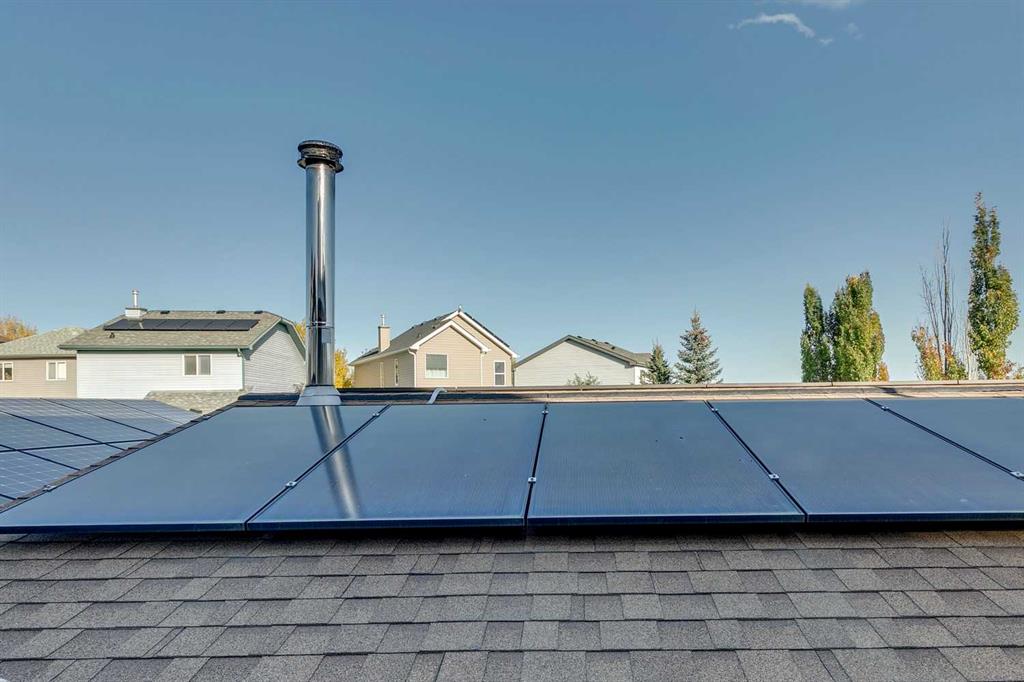 A rare property offering what many homes simply don’t: a true, oversized heated garage/workshop paired with an energy-efficient, beautifully maintained residence. The showpiece is the exceptional 28' x 30' over-height heated garage, purposely built for trades, hobbyists, collectors, or personal business use. Featuring a 20' x 9' security roll-top door, overhead gas heat, vented wood stove, dedicated exterior wood storage, built-in workbench and cabinetry, this is a year-round workspace that is almost impossible to find in a residential setting. Adding even more value, 25 solar panels (installed 2022) allow the property to operate near net-zero electricity annually, keeping utility costs impressively low. Inside, the home has been meticulously maintained and thoughtfully updated by the original owner. The renovated kitchen features an newly expanded island, quartz counters, updated appliances, and luxury vinyl plank flooring that carries throughout the main and upper levels. Upstairs, the primary bedroom offers a walk-in closet and ensuite, while two additional bedrooms share a full bath and convenient upper laundry with new washer and dryer (2024). Outdoor living is equally inviting with a two-tiered rear deck, privacy walls, and clear-cover roof — creating a comfortable, sheltered space for grilling and relaxing in any season. For added flexibility, the home includes an (illegal) separate-entry basement suite complete with kitchen, living/sleeping area with egress window, full bath, and laundry. Between the suite and the extraordinary garage/workshop, this property offers unique potential for multi-generational living, home-based business, or supplemental income. Additional highlights: excellent access to transit, shopping, and amenities, only 2 km to Fish Creek Park, and quick connections to Stoney Trail and 22X.