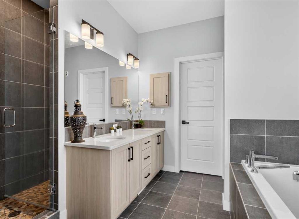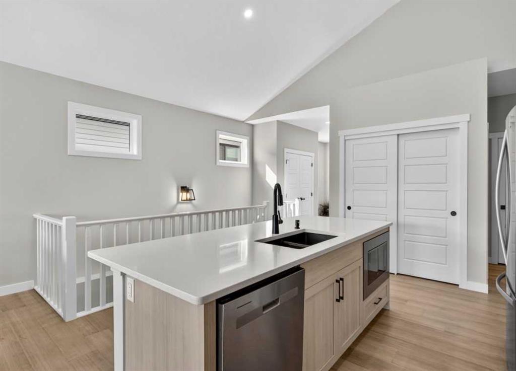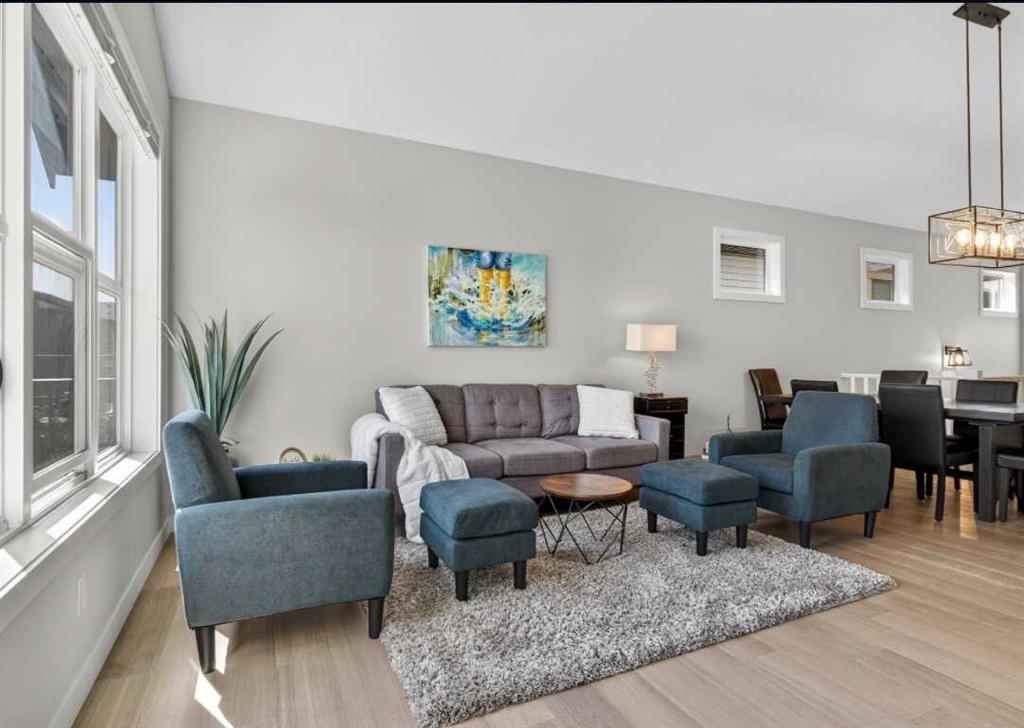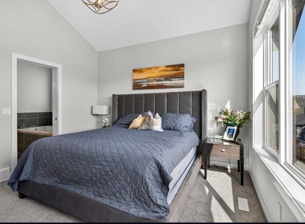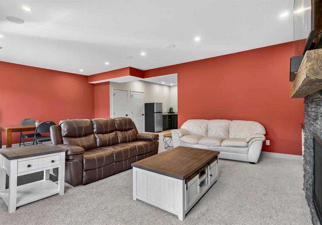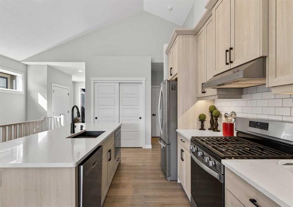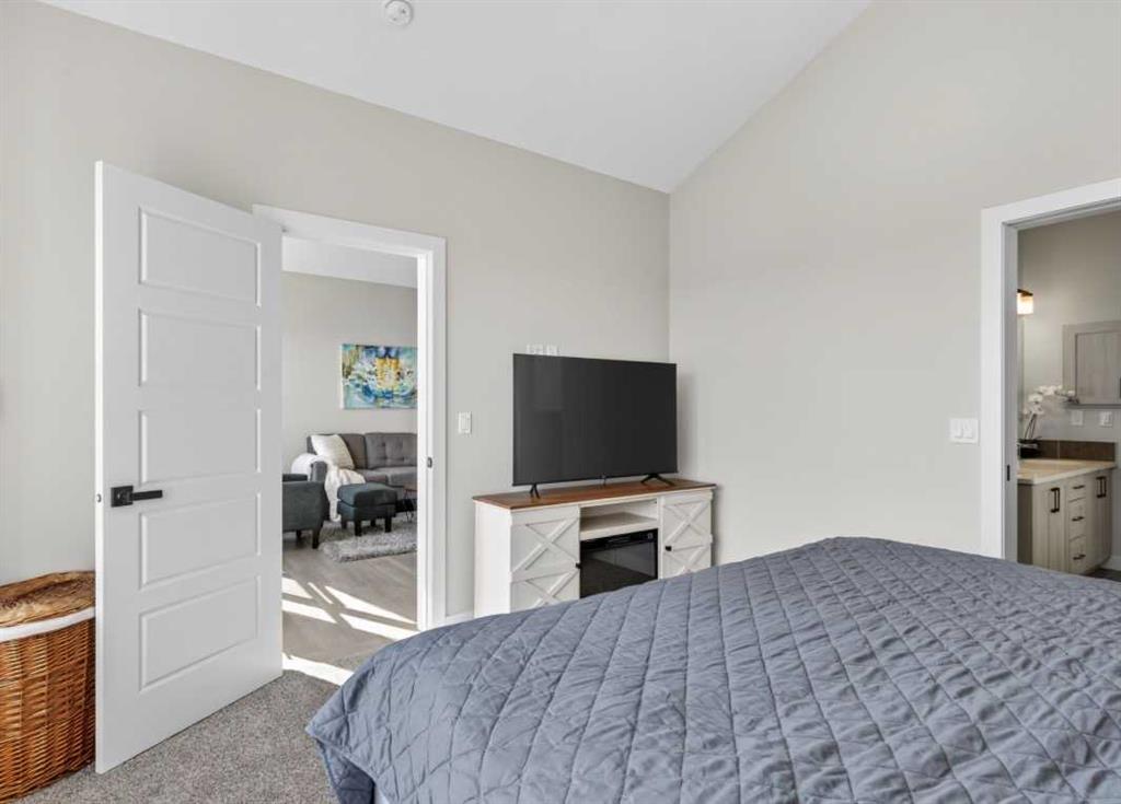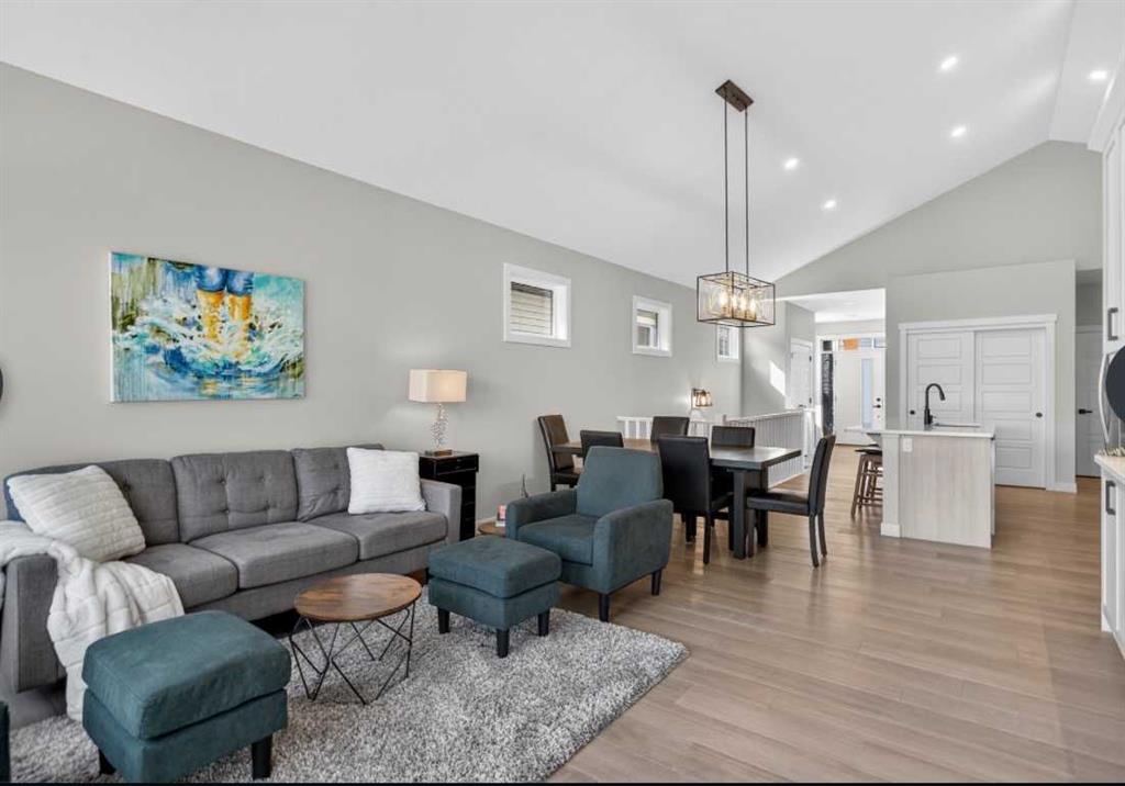 OPEN HOUSE Saturday Feb 14th 1-4pm ~Your NEW HOME awaits.... Stunning 2024 Trico Homes Wynwood 28 Vaulted Ceiling Bungalow with finished Walkout Basement Development by Basement Builders in Scenic Precedence area. This beautifully designed bungalow combines comfort, style, and breathtaking views in one exceptional package. As you step through the front door, you are WELCOMED into the heart of the HOME greeted by soaring VAULTED CEILINGS and an open, light-filled floor plan. The kitchen is a delight to cook in with a large island, gas range, and tall cabinetry with quartz countertops, and pantry. Continuing on the main level is the dining area, and living room with electric fireplace and flatscreen TV making this the perfect space for both everyday living and entertaining. Finishing off this level is the Vaulted Primary Bedroom with 5 piece ensuite with SPECTACULAR walk in shower, walk in closet, second bedroom/office, main bathroom, and laundry room. Another added bonus off the living room is the 10 by 14 deck with gas BBQ hook-up which overlooks the landscaped backyard and North East views of the Cochrane Hills, PLUS a double attached garage with high ceilings.....add more storage. Head downstairs to the beautifully fully finished walkout basement offering even more living space that has been thoughtfully designed for relaxation, entertainment or a man cave. A massive family room centres around a striking floor-to-ceiling stone gas fireplace with mantle, and 75 inch big screen TV with SURROUND SOUND. There are so many added BONUSES including a large BAR area making this level perfect for hosting gatherings. Finishing off the basement you will find two additional bedrooms and 4 piece bathroom plus utility room. The walkout door leads to a covered patio with beautifully landscaped yard, extending the living space outdoors, plus electric hook up for a future hot tub area. This HOME BLENDS a thoughtful layout with high-end finishes and stunning surroundings, making this bungalow the best of both worlds! A retreat like setting with easy access to Cochrane’s amenities, schools, and scenic trails. Whether you are entertaining friends or enjoying quiet evenings on the deck, this home truly has it all. DO NOT WAIT... make this HOME yours TODAY!