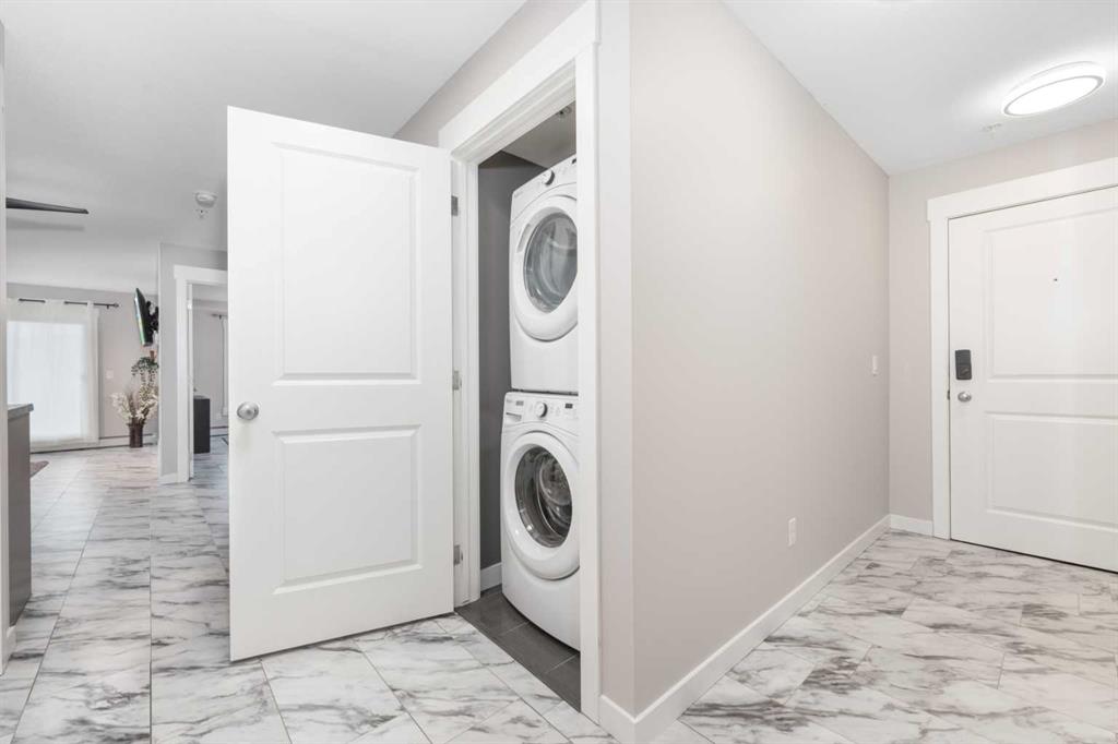 WELCOME to this BEAUTIFULLY FULLY FURNISHED, MOVE-IN READY, MAIN FLOOR CORNER UNIT offering 944 SQ FT of BRIGHT and FUNCTIONAL LIVING SPACE. Ideally located just 10 MINUTES FROM CALGARY INTERNATIONAL AIRPORT, this gorgeous home features 2 SPACIOUS BEDROOMS and 2 FULL BATHROOMS. Enjoy a MODERN OPEN-CONCEPT LAYOUT with GRANITE COUNTERTOPS, FRESH PAINT, and a STYLISH CONTEMPORARY FEEL. Both bedrooms and bathrooms are GENEROUSLY SIZED, offering COMFORT and FUNCTIONALITY for everyday living. The SPACIOUS PRIMARY SUITE is a true retreat, complete with HIS-AND-HERS CLOSETS and a PRIVATE 4-PIECE ENSUITE. The SECOND BEDROOM and BATHROOM are located on the OPPOSITE SIDE for ADDED PRIVACY—perfect for GUESTS, ROOMMATES, or a HOME OFFICE. Additional features include IN-SUITE LAUNDRY, a TITLED HEATED UNDERGROUND PARKING STALL, and a SECURE STORAGE SPACE. There’s also AMPLE VISITOR PARKING for guests. Step outside to your PRIVATE GROUND-LEVEL PATIO, ideal for RELAXING or ENTERTAINING. Perfectly situated WITHIN WALKING DISTANCE TO SCHOOLS, PARKS, AND PUBLIC TRANSIT, and just MINUTES FROM COSTCO, CROSSIRON MILLS MALL, with EASY ACCESS to STONEY TRAIL and DEERFOOT TRAIL. You’re only 20 MINUTES TO DOWNTOWN CALGARY—making this an excellent choice for PROFESSIONALS, FIRST-TIME BUYERS, DOWNSIZERS, or INVESTORS. This home truly combines COMFORT, CONVENIENCE, AND LOCATION—and is FULLY FURNISHED & READY FOR IMMEDIATE POSSESSION.