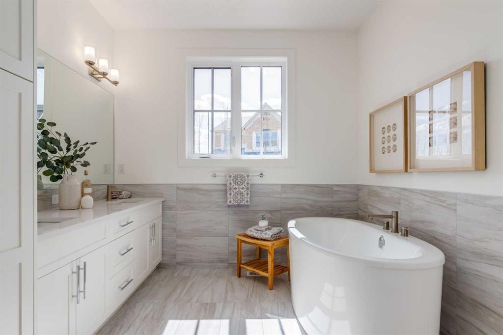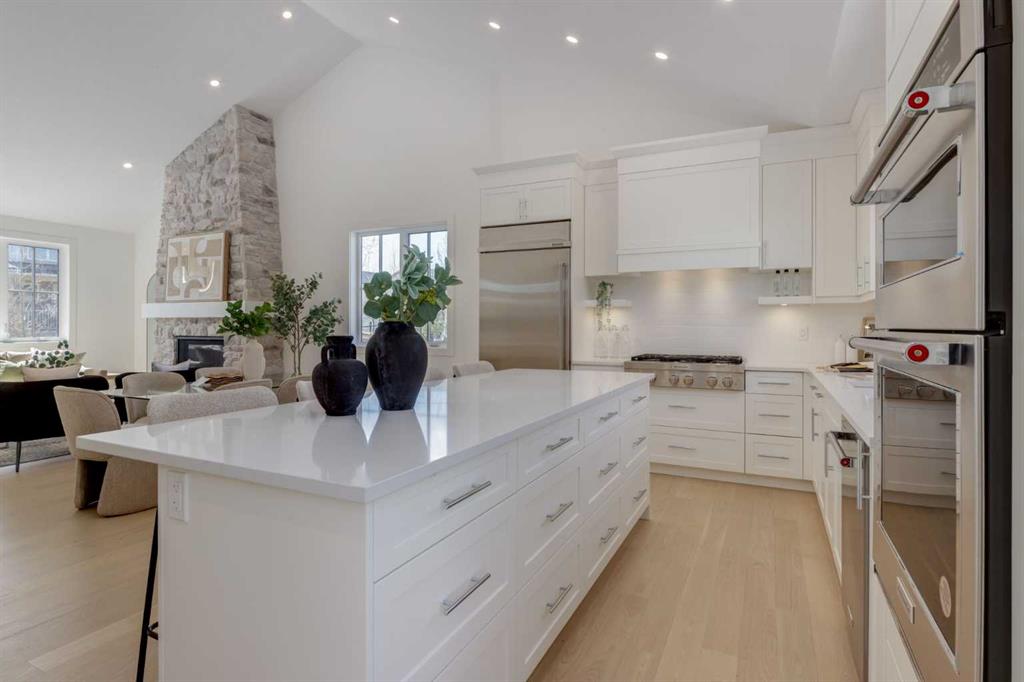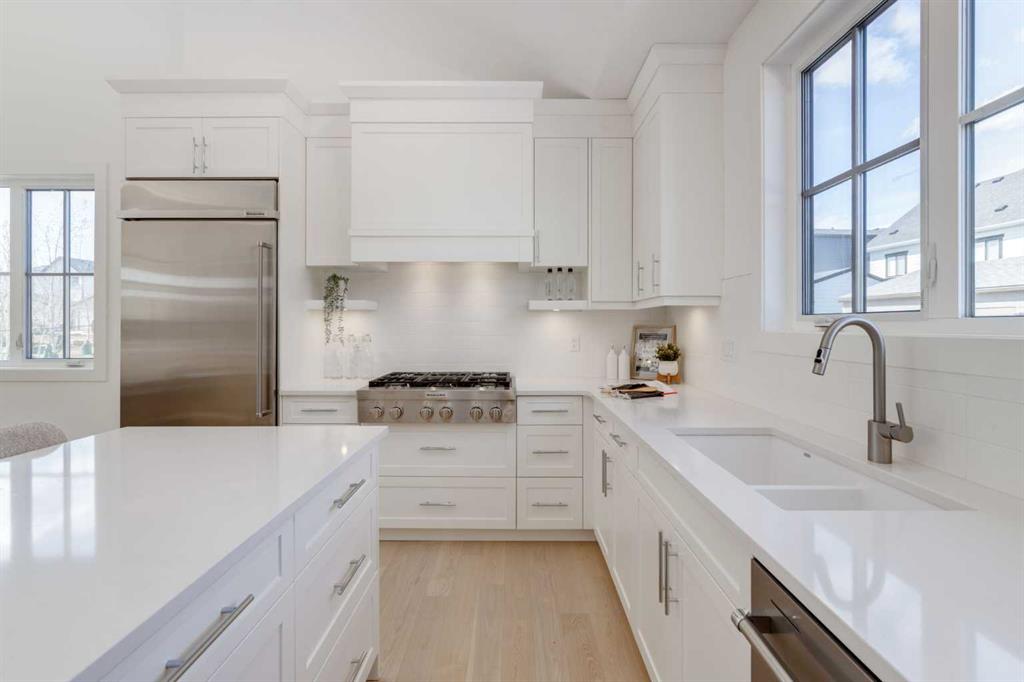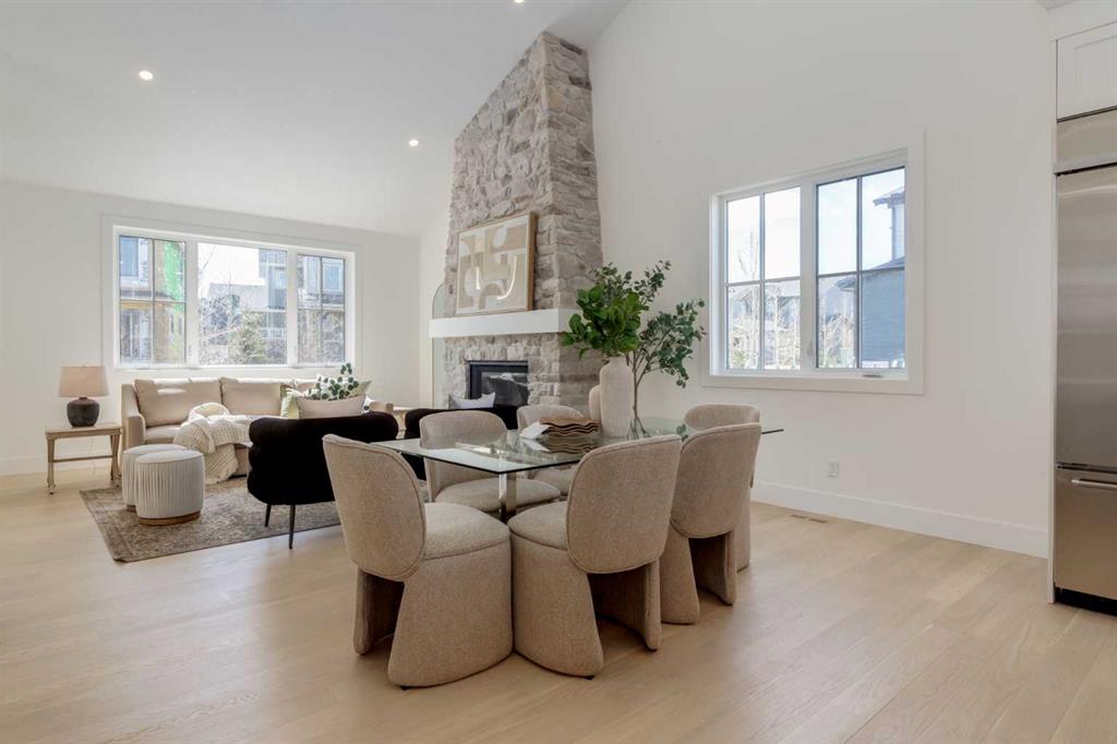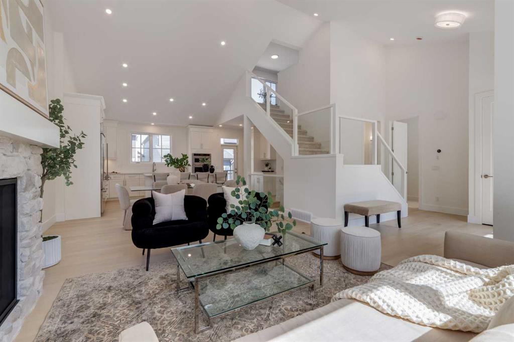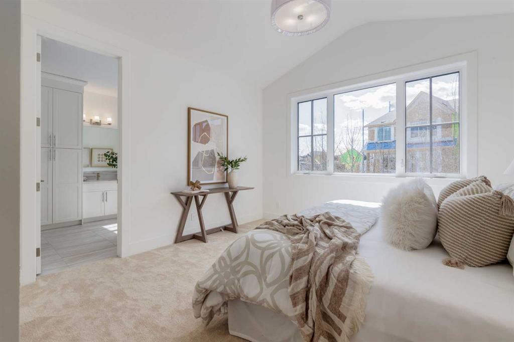 Welcome to The Schaffer, a stunning example of luxury single-level living that’s been meticulously crafted to offer both style and comfort. With over $200,000 in upgrades, this home showcases the best in modern design, starting with vaulted ceilings throughout the main living space that create an open, airy feel and elevate every corner of the home. The soaring ceiling continues into the primary bedroom, turning it into a serene retreat with architectural presence and a calm, spacious vibe you’ll feel the moment you walk in. At the heart of the home is an expansive open-concept layout, anchored by a large L-shaped kitchen and oversized island that flows seamlessly into the dining area, perfect for everyday living and effortless entertaining. The kitchen is as functional as it is beautiful, featuring classic white cabinetry, a modern box-style hood fan, and upgraded appliances including a gas cooktop. Quartz counters wrap the generous workspace, while details like the window over the sink, cabinet-style pantry, stacked white subway tile, and full-width pot-and-pan drawers across the island make the space feel thoughtfully designed and truly elevated. In the living room, a showstopping oversized gas fireplace with a stone surround extending all the way to the vaulted ceiling creates a dramatic focal point, warm, inviting, and perfect for cozy nights in. A sleek glass-insert railing adds a modern touch and carries through both the stairwell to the basement and up to the loft, tying the home together with clean lines and light-filled sightlines. Upstairs, the cozy loft area, with its own electric fireplace, offers flexible space ideal for a home office, reading nook, or a quiet retreat away from the main living area. Practicality meets polish in the laundry room, complete with a full sink and built-ins that make day-to-day routines feel effortless. The primary ensuite is a true spa-inspired escape, featuring a freestanding soaker tub, a fully tiled shower, and a full-height, cabinet-style linen closet, a simple upgrade that makes a big difference in storage and everyday convenience. Downstairs, the fully finished basement is an entertainer’s dream, offering two additional bedrooms and a 4-piece bathroom conveniently positioned between them, perfect for kids, guests, or multi-generational living. The spacious recreation room includes an electric fireplace for added ambiance, plus a rough-in for a future wet bar, setting the stage for movie nights, game days, or hosting friends with ease. Built on a unique lot with nearly 60 feet of frontage, The Schaffer stands out with a wider, more distinctive floor plan, a rare find that enhances both curb appeal and livability. Out front, a shared green space adds an inviting extension of the home, thoughtfully designed with meeting areas, mature trees, and spots to enjoy the outdoors with family and neighbours, offering a sense of community without sacrificing privacy. The Schaffer is more than just a home—it’s a lifestyle.