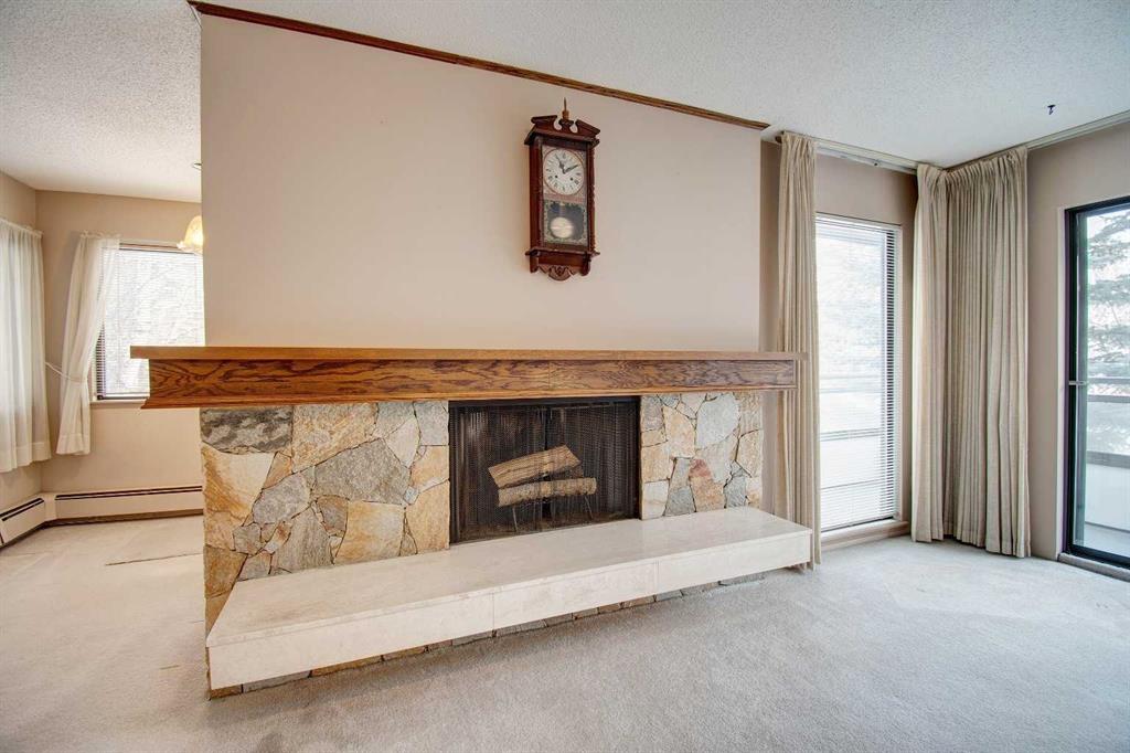Welcome to this spacious ADULT 25+ BUILDING gem, perfectly positioned across the street from MARKET MALL with unbeatable convenience and calm. The unit faces a quiet street, and offers SECURE FOB ENTRTY, elevator access, secure UNDERGROUND parking, and extra-secure storage—the fundamentals done right. Enjoy a welcoming common area, easy TRANSIT access, and handy same-floor community laundry. Inside, you’ll find TWO generous bedrooms plus a FLEXROOM/den, a cozy stone-faced wood-burning FIREPLACE, and a standout 17' x 9'11" BALCONY—big enough to actually live on. At 1,077 sq ft, this is one of the larger units in the building, and the price reflects the opportunity for some TLC in paint and flooring. BONUS: the building is in the process of receiving new windows and exterior trim, adding long-term value and fresh curb appeal.