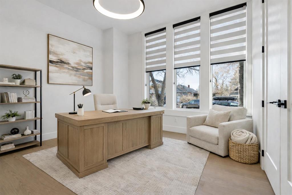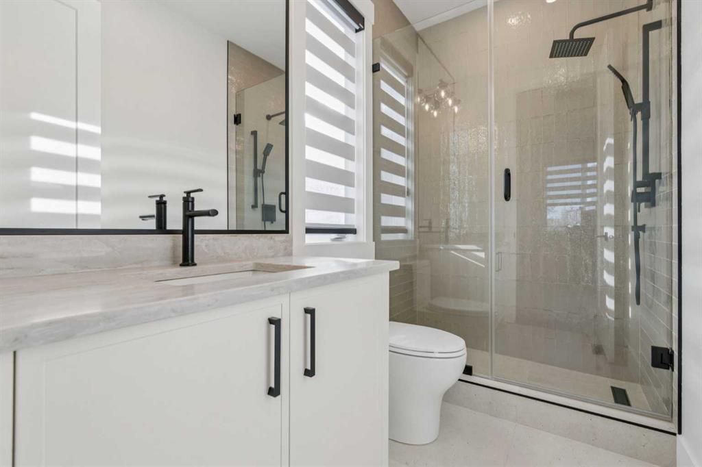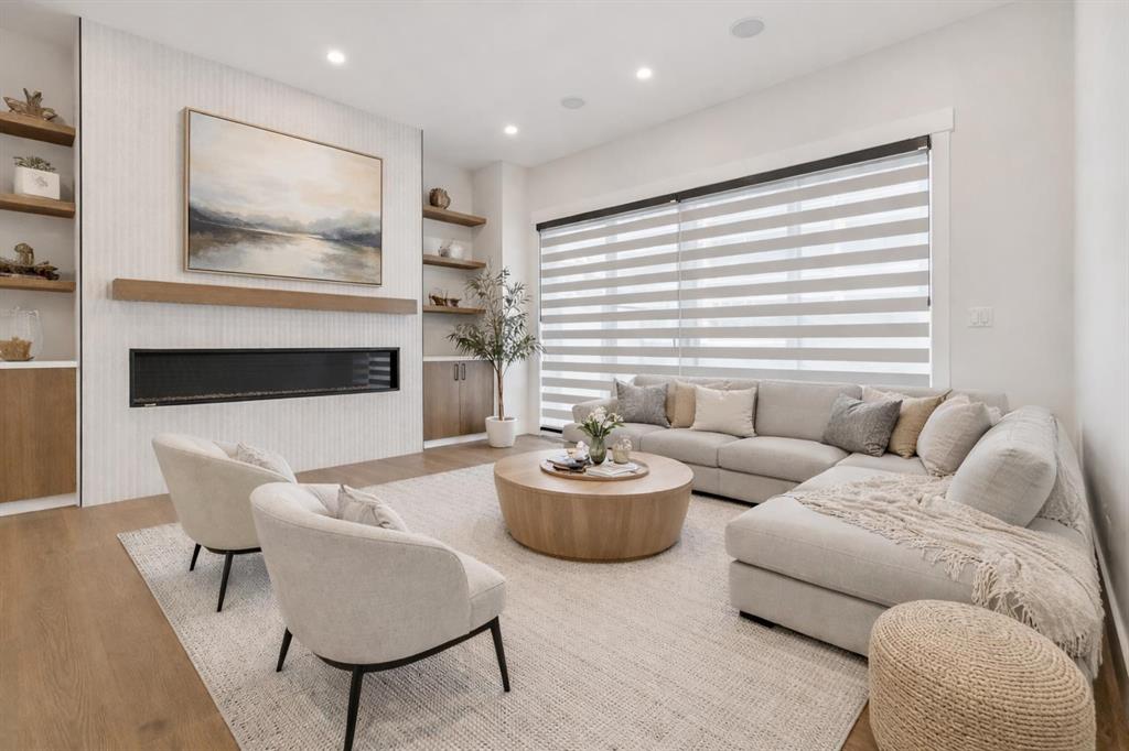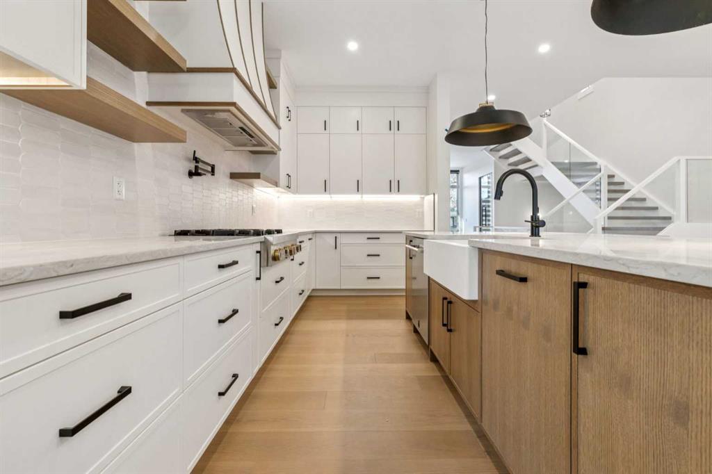 Tucked into a well located and established pocket of Hillhurst, this ELEGANTLY CRAFTED custom-built home offers elevated inner-city living just steps from Kensington, the Bow River pathway system, parks, dining and everyday amenities. Offering over 4,500 ft² of meticulously finished living space, this home is designed for modern family living and long-term lifestyle flexibility, featuring 6 bedrooms, 6 bathrooms, a walk-up lower level and insulated TRIPLE GARAGE with vaulted ceiling. The main floor is bright and open with large windows, seamless flow between living, dining and entertaining spaces, and a striking chandelier that creates a beautiful focal point within the staircase. The kitchen is both functional and refined, featuring premium JennAir appliances, custom cabinetry, quartz surfaces, a large statement island and walk-in pantry. A main floor flex room with full bathroom and walk-in closet offers excellent versatility for guests, or an executive office workspace. Upstairs, the primary suite offers a quiet retreat with spa-style ensuite including steam shower and soaker tub. The walk-in closet offers room to move, complete with built-ins and practical storage design. Two additional bedrooms each feature private ensuites and walk-in closets, plus a bonus living area and second laundry room for added convenience. The lower level features a large recreation area, wet bar, glass enclosed fitness space, two additional bedrooms, full bathroom and mudroom with built-in storage and direct outdoor access. Additional highlights include hardwood flooring, 10' main floor ceilings, 9 ft ceilings on the upper, built-in speakers, power blinds, custom built-ins and a timeless modern exterior finished with durable premium materials and expansive window design.
