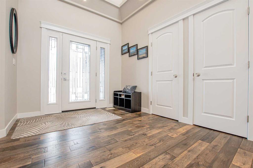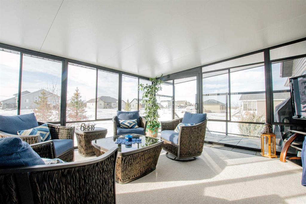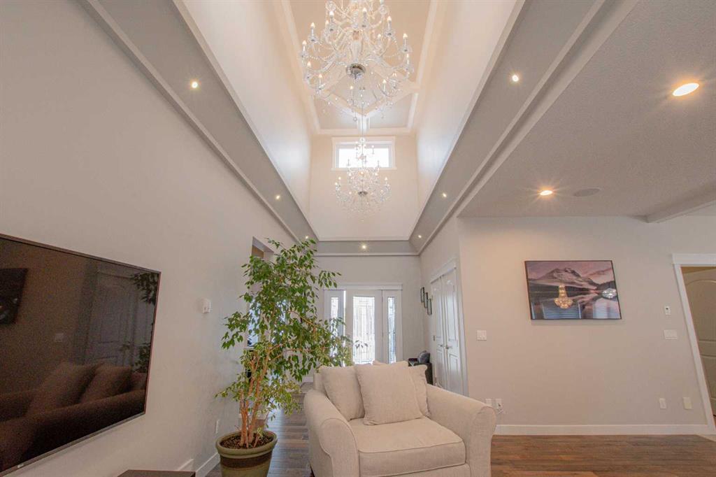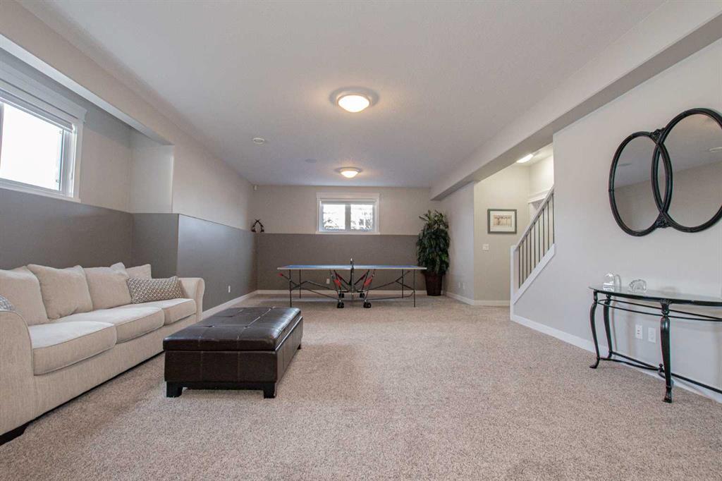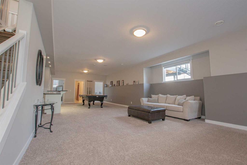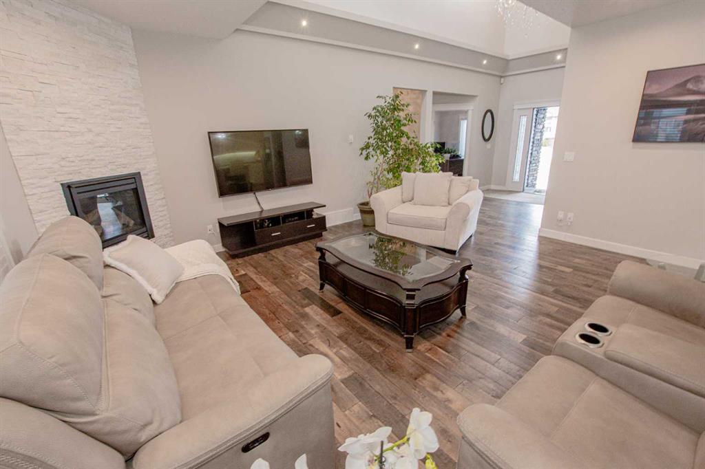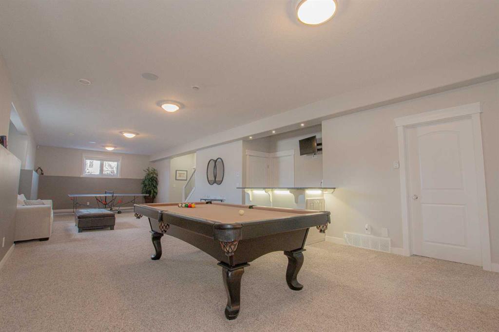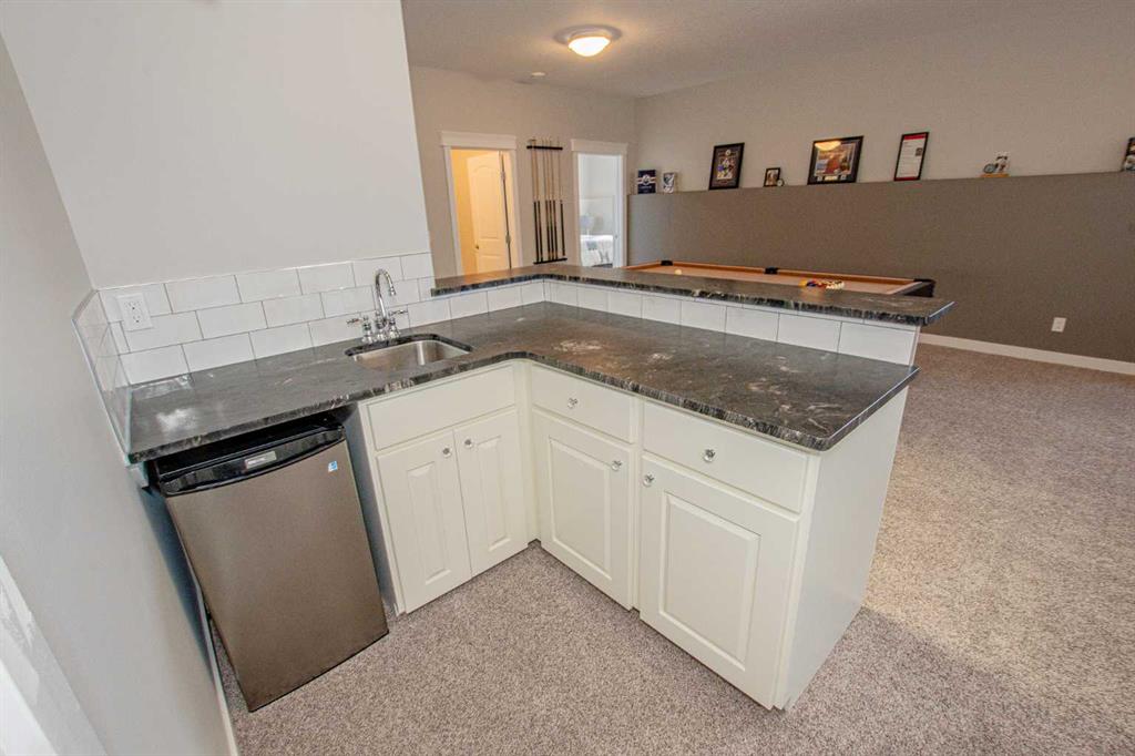 This stunning executive bungalow showcases true pride of ownership with an exceptional design perfect for both entertaining and everyday family living. Located in the highly desirable County neighborhood of Carriage Lane Estates this 2000 Sq.ft+ bungalow is sure to please! Step inside to a spacious open-concept floorplan featuring high-end crown molding finishes throughout, a chef-inspired kitchen with floor-to-ceiling cabinets, luxurious leathered granite countertops, gas cook-top, a massive island with a built-in wine cooler, and a generous walk-in pantry. The inviting living room centers around a gas fireplace, complimented by elegant hardwood flooring throughout. The main floor is complete with three generous sized bedroom and a beautiful main flr bathroom. The primary suite is a true retreat, offering a gas fireplace, a large walk-in closet, and a spa-like ensuite with his and hers sinks, a standalone soaker tub, and a glass/tile shower featuring dual rain shower heads. Laundry located just off garage with additional cabinets and wash sink leading to the fully finished & heated triple car garage with Mezz storage and flr drains. The fully finished basement is designed for comfort and functionality, boasting perimeter in-floor heating, wet bar, a spacious family room with included pool table, three additional bedrooms (1 is oversized with vinyl plank flooring, great home gym) and another fabulous 5-piece bathroom. Outside, this professionally landscaped yard features enclosed sunroom off dining nook with side BBQ area, tons of mature trees and shrubs, curbing & irrigation, 12'x18' shed, AC, and even a 4-hole putting green with bunker – perfect for relaxing or entertaining outdoors. Completing this impressive property is RV parking for added convenience. This home has been meticulously maintained, and it shows from the second you arrive. All of this PLUS County taxes in one of GP's most popular family areas with new Harry Balfour K-8 school just min away, great parks, ponds & walking trails. It's time to move your family to Carriage Lane Estates where there's room to grow!