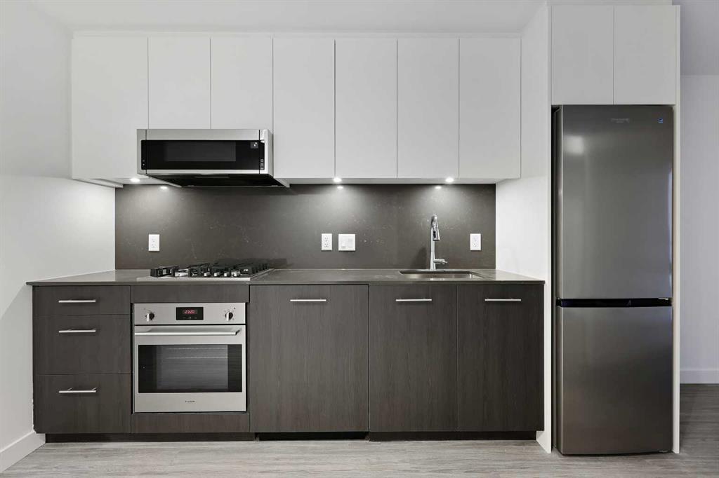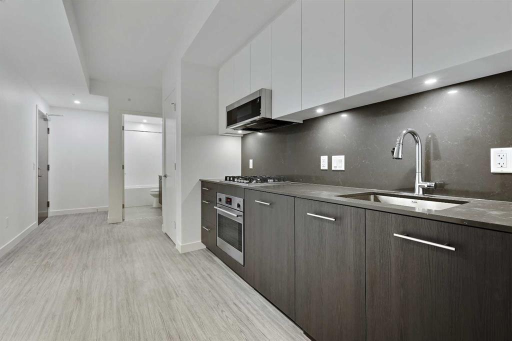 Welcome to First & Park, an elegant new address in Calgary’s sought-after Eau Claire community. This one bedroom, one bathroom home combines modern design with everyday convenience. The open-concept layout features a sleek kitchen with contemporary cabinetry, quartz countertops, and premium appliances, flowing seamlessly into the bright living space and West facing balcony. This one bedroom unit has a full bath, and in-suite laundry offering comfort and functionality. Enjoy a titled storage locker, along with building amenities including an upscale gym & yoga studio (patio just outside which also features gas bbq hookups), party lounge, modern co-working space and concierge. Just steps from the Bow River pathways, Prince’s Island Park, dining, and downtown, this is the perfect balance of style and location. Whether you’re a first-time buyer, investor, or looking for a stylish downtown retreat, this home at First & Park is the perfect opportunity to live where the city meets the river. Packages available for FURNISHED UNITS! Great unit for university students! 1 titled storage locker with unit!