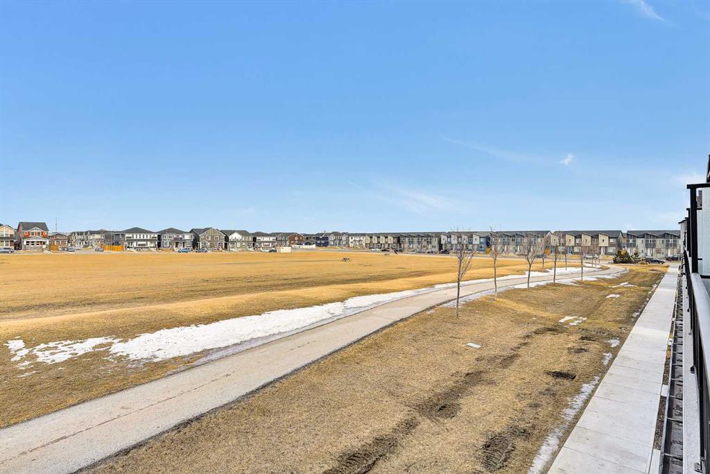 Welcome to this park-facing, modern, barely lived-in townhome in Redstone! Thoughtfully designed with an open-concept main floor, this home is perfect for everyday living and entertaining. Enjoy quartz countertops, stainless steel appliances, luxury vinyl plank flooring, and a bright patio door that opens to your spacious private balcony complete with a gas line — ideal for summer BBQs. Upstairs, you’ll find two generous primary bedrooms, each featuring its own ensuite and walk-in closet — a perfect setup for families, guests, or roommates. The upper level also offers the convenience of a laundry room and nicel-sized linen closet. The spacious single attached garage includes a separate storage area and provides direct access to the versatile den — ideal for a home office, gym, or flex space. Located just minutes from CrossIron Mills, Calgary International Airport, shopping centres, schools, public transit, and major roadways including Metis Trail, Country Hills Blvd, Stoney Trail, and Deerfoot Trail — this home offers exceptional connectivity and convenience. Book your private showing today and be sure to view the virtual tour!