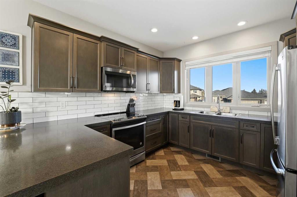 Welcome to this beautifully modified bi-level built in 2017, offering ELEGANCE, COMFORT, and EXCEPTIONAL FUNCTIONALITY. Located in a quiet, family friendly neighborhood, close to all amenities, walking trails and CRANNA LAKE, this property is the perfect blend of STYLE and PRACTICALLY. Inside you'll find stunning VAULTED CEILINGs, a cozy gas fireplace, in floor heat, and CENTRAL AIR Conditioning to keep you comfortable all year round. The thoughtful layout provides BRIGHT, OPEN LIVING SPACES ideal for both everyday living and entertaining. The gorgeous primary suite is a true retreat, featuring a 4-piece ensuite with his/her vanities, a custom TILED SHOWER and beautiful finishes throughout. The kitchen is truly a showstopper-designed to IMPRESS while offering everyday functionality. Gorgeous MAPLE cabinetry brings WARMTH and TIMELESS ELEGANCE, perfectly complemented by sleek STAINLESS-STEEL APPLIANCES that add a modern touch. A thoughtfully designed BUILT-IN work desk creates a perfect space for homework, managing household tasks, or working from home-keeping everything ORGANIZED and within reach. The sink is beautifully positioned under a sun-filled window, allowing NATURAL LIGHT to pour in while you prep, cook, or entertain. It’s a BRIGHT and UPLIFTING space that is welcoming any time of day. The OPEN-CONCEPT design seamlessly connects the kitchen to the dining and living areas, creating an AIRY, EXPANSIVE feel that's perfect for hosting gatherings or enjoying cozy family evenings. More great features include: herringbone tile, ceiling fans, vinyl fence, covered patio, hardwood exterior, closet organizers, second laundry hookup, heated garage, high efficient furnace, upgraded plumbing, and WEST EXPOSURE!!! The two bedroom LEGALLY SUITED UNIT converts back making this home a 5-bedroom, 3 bath home with large family room. Double glass doors currently separate the suite from the rest of the home. This property is extraordinary and must be viewed to see the endless possibilities. This isn't just a home, it’s a LUXURIOUS LIFESTYLE!