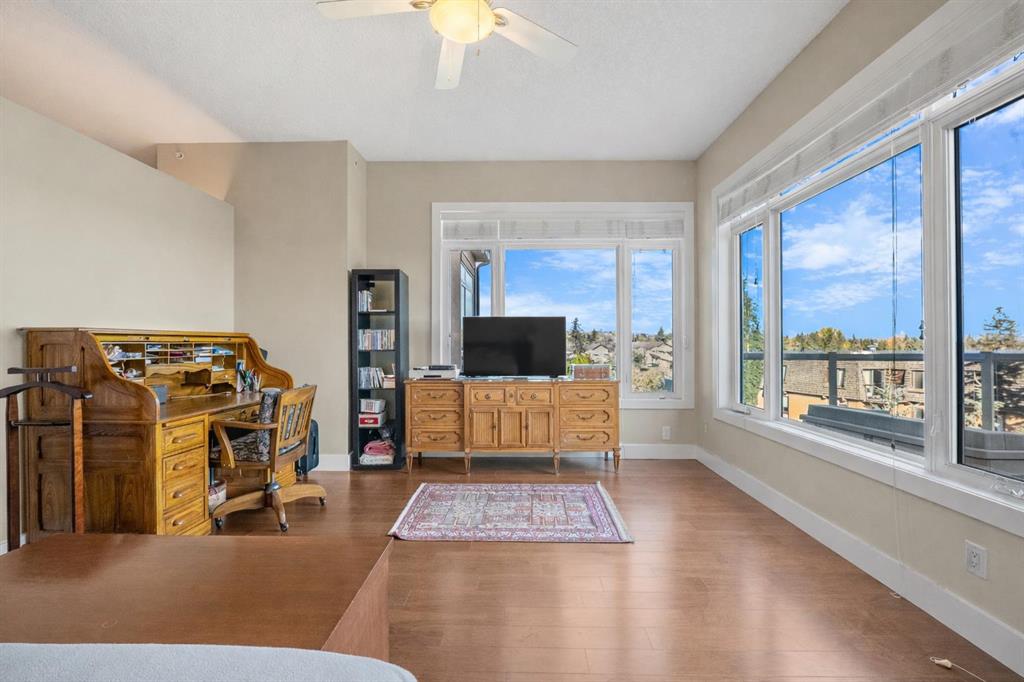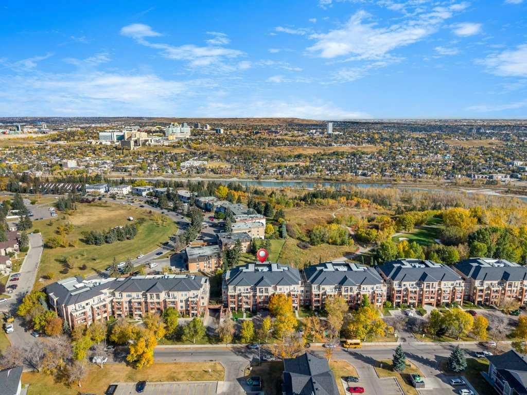 The top of the building is a small club. And membership is limited. Perched above the walking paths, stretching over the golf course and into the city skyline beyond, this 2,084 sqft penthouse isn’t just space — it’s presence. The sheer size checks the boxes and the 3 bedroom layout seals the deal. Transition from a life of cutting grass + shovelling snow to a lifestyle of sitting back + enjoying the ease of condo living. Over $100,000 has been invested with intention and refinement. Every upgrade curated - every finish deliberate. Step foot into a gourmet kitchen dressed in quartz, anchored by a gas range, stainless steel appliances, wine fridge, full pantry and customized pull-out drawers throughout. The heart of the home boasts seamless sight lines across the open-concept layout will be the desired spot for many gatherings in the years to come. The connected living + dining spaces invite celebration — whether it’s dinner for twelve or a quiet glass of wine by the gas fireplace. This is where new memories with those closest to you commence. From 10-foot ceilings to immersive built-in audio and your own projection theatre, every detail was designed for effortless living — complete with a full Hunter Douglas blinds package and phantom screens for year-round comfort. Retreat to your nearly 300 sqft primary suite, wrapped in a wall of windows. The ensuite elevates daily ritual with dual sinks and a steam shower with bench, while a fully built-out walk-in closet keeps life organized. With three rooms on hand, it provides flexibility for guests and potential for a den, lounge or library. Let's move on to the statement piece - your 600 sqft outdoor terrace. Morning coffee above the fairways - sunset cocktails over the city lights. This exterior haven provides you the space to entertain + exhale. The purchase will come with two underground, side by side parking stalls and a separate storage locker for seasonal goods. You will also find a car wash bay + bike storage onsite. The community amenities include a large fitness facility along with recreation room which hosts several resident meet ups + gatherings throughout the year. A location close to all your daily requirements, mere blocks to the c-train, walkable to the golf course and minutes into the downtown office core. This Penthouse more than an address - it's a statement piece, a vantage point and a lifestyle reserved for those who prefer privacy. Your opportunity to live where others look up.