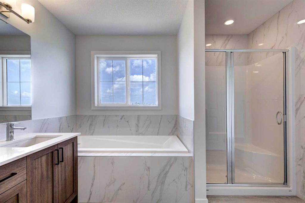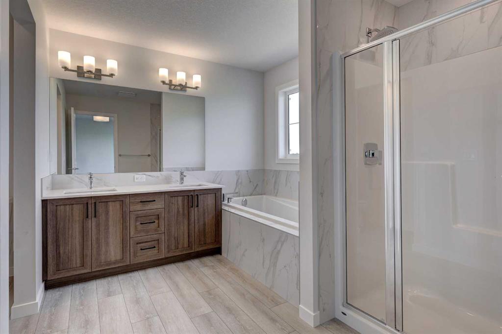 Uncover the charm of Silver Spruce; nestled in the sought-after community of Silverado w/easy access to major routes, shopping, schools & amenities. Welcome to the COLLINGWOOD – a BRAND-NEW home built by Excel homes. This amazing family home has it all – it’s loaded with upgrades – SEPARATE ENTRANCE TO FULLY DEVELOPED, TWO BEDROOM LEGAL BASEMENT SUITE!!! This home offers over 2200 sf & is delivered in an open plan, designed for families & entertainment. Main floor boasts a spacious entry, ½ bath & front flex room. The impressive kitchen is open to the great room & dining nook. You’ll notice the back of the house is almost entirely windows, flooding this home w/natural daylight. Exit to your backyard thru the oversized patio doors, to your “already built” deck! Your Impressive kitchen features loads of cabinets & drawers, SS appliances incl chimney fan & BI microwave. You’ll love the large island & huge walk-in pantry! The family room & dining area are connected & offer huge family / entertaining potential. 9’ ceilings & gorgeous luxury vinyl plank flooring make this space airy & bright. Upstairs you’ll find FOUR spacious bedrooms! The primary suite is separated from the 3 others by a huge bonus room that offers vaulted ceilings & pot lighting. The primary suite also features a spa like ensuite & walk in closet. Your laundry room & family bathroom complete this level. THE BASEMENT is fully developed & has a PRIVATE / SEPARATE side entry that leads to your 2-bedroom LEGAL suite, perfect for rental income, extended family or a live-in nanny! This level is built to upstairs standards & featuring TWO BEDROOMS, a FULL KITCHEN (w/SS appliances), FAMILY ROOM, laundry & 4 PCE BATH. All utilities are separate from the main floor – 2 furnaces & hot water tanks & laundry. This is a must-see home w/the perfect location.