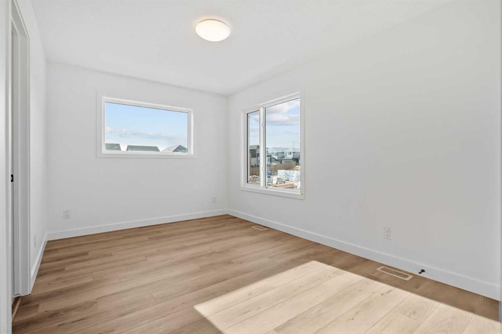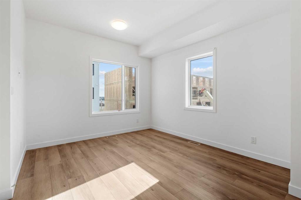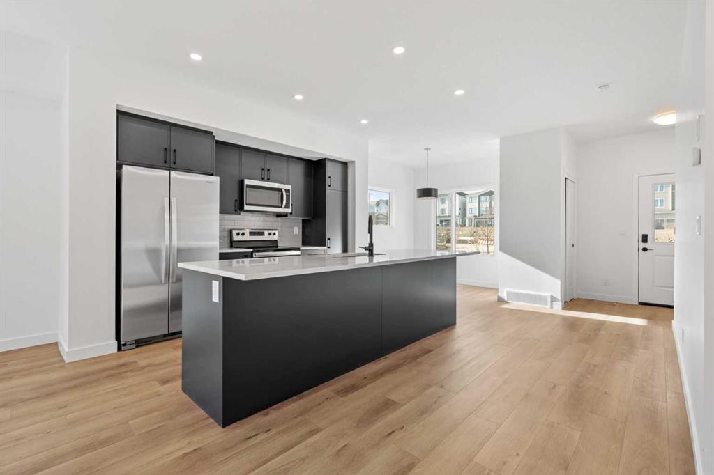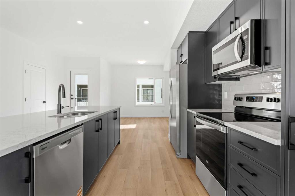 2 YEARS FREE CONDO FEES | NEW BUILD TOWNHOME | LOW CONDO FEES | 4 BED (3 UP, 1 DOWN) / 2.5 BATH / 1,327 SQ FT | ATTACHED GARAGE + DRIVEWAY | IMMEDIATE POSSESSION – Welcome to the Spruce 1 townhome by Minto Communities, an award-winning Canadian builder, located in Wildflower, proudly voted Best New Community in Canada. This vibrant, master-planned community in Airdrie is designed with lifestyle and connection in mind, offering a thoughtful mix of home styles in a neighbourhood built to grow with you. This brand-new townhome offers a spacious and functional layout ideal for families, professionals, or anyone looking for extra flexibility. The main floor features a modern kitchen positioned at the centre of the home, complete with a large island, stainless steel appliances, contemporary finishes, ample cabinetry, and storage. The dining area is located at the front of the home just off the foyer, creating an inviting space for everyday meals or entertaining. Toward the back of the home, the living room provides a comfortable retreat with direct access to a private balcony, perfect for enjoying fresh air. A convenient 2-piece bathroom completes this level. Upstairs, the primary bedroom offers a walk-in closet and private 3-piece ensuite. Two additional bedrooms, a full 4-piece bathroom, and discreet upper-floor laundry complete the upper level, providing excellent functionality for growing households or home office needs. The lower level features a fourth bedroom and direct access to the oversized single attached garage, offering versatility for guests, a home gym, or workspace. A full driveway provides additional parking, adding everyday convenience rarely found in townhome living. Residents of Wildflower enjoy exclusive access to The Hillside Hub, a standout amenity centre featuring Airdrie’s first outdoor pool, a hot tub, open-air sports court, and a variety of shared indoor and outdoor spaces designed for gathering, recreation, or quiet retreat. With nearby parks, pathways, amenities, and easy access to major routes, Wildflower delivers a truly well-rounded lifestyle. Combining award-winning community planning, modern design, low condo fees, and immediate possession, this is an outstanding opportunity to own a stylish new build townhome in one of Canada’s most celebrated communities. Don’t miss your chance to make Wildflower home! Book your visit today!