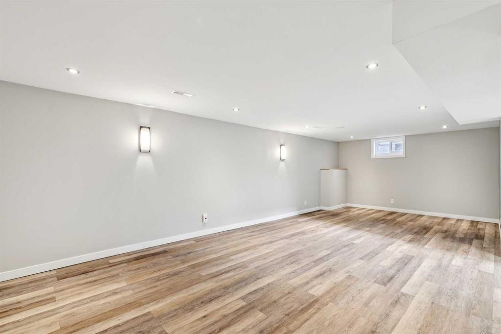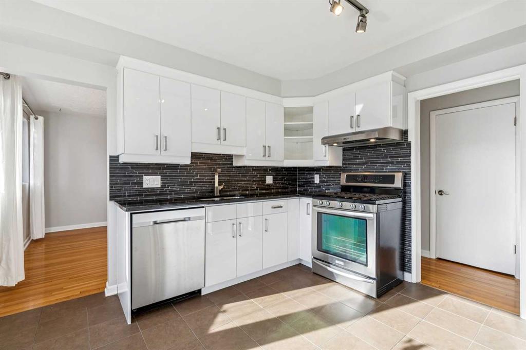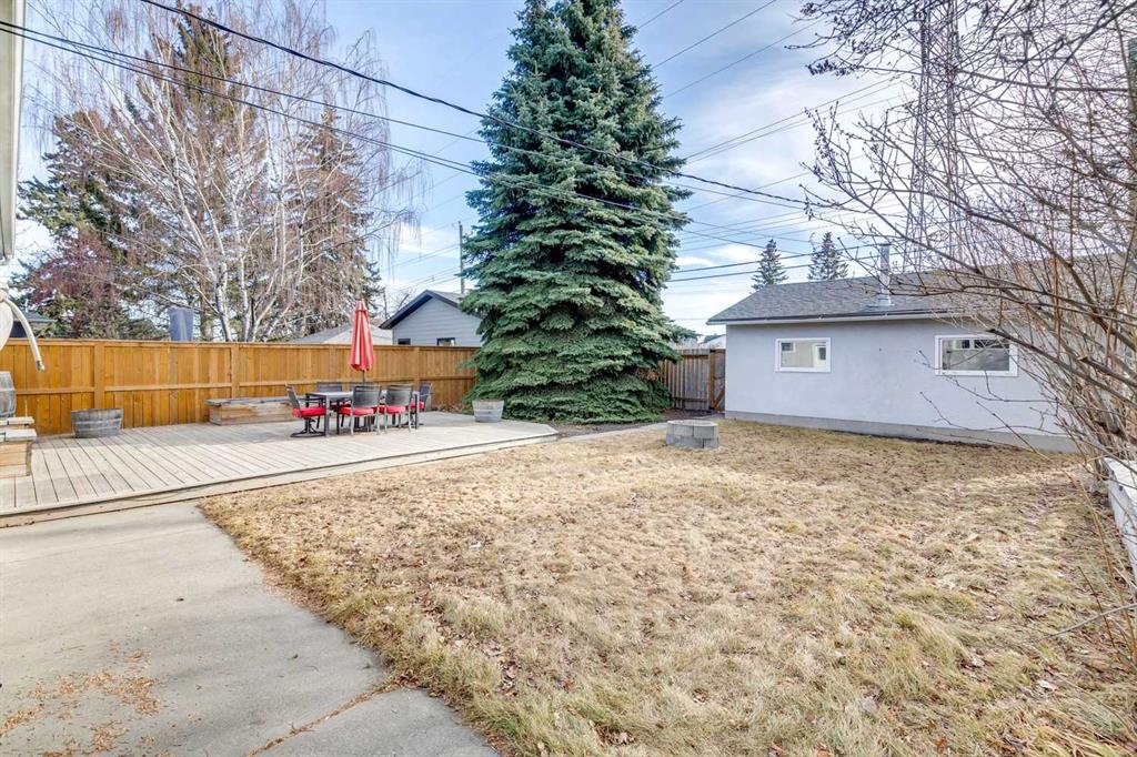 This upgraded and move-in-ready bungalow offers a rare combination of privacy and unbeatable walkability in the heart of Elboya. Situated directly across from the open green space of the St. Anthony school field, you’ll enjoy expansive views and no neighbours directly in front. The main floor is bright and inviting, featuring large living room windows that frame the park views. While maintaining a traditional layout, the dining room is perfectly situated beside the kitchen for easy entertaining and day-to-day flow. The main floor is highlighted by a large primary suite featuring extensive wall-to-wall built-in closets. Two additional good-sized bedrooms offer the perfect setup for children’s rooms or dedicated home offices. A renovated 3-piece bath completes the main level. The fully finished basement has been updated to include a modern laundry room, a spacious family room, an additional renovated full bathroom, and two large bedrooms. With a separate entrance and laundry situated outside the living area, the basement is well-configured for a potential legal suite (subject to City of Calgary discretionary approval and permitting). The private, south-facing backyard is designed for both relaxation and entertaining. A large tiered deck provides a perfect space for outdoor lounging and dining amidst perennial beds and a raspberry patch. A double detached heated garage provides comfort year-round, and a large gravel parking pad beside the garage accommodates two additional vehicles. Perfect for extra cars, a boat, or a small utility trailer. Experience the rare luxury of park-front peace and Britannia’s best amenities just steps from your front door.
