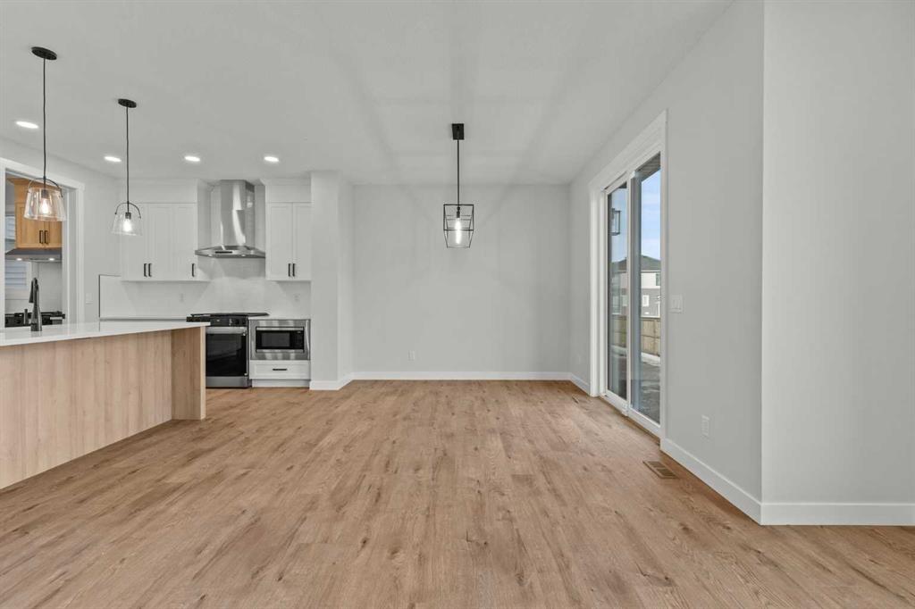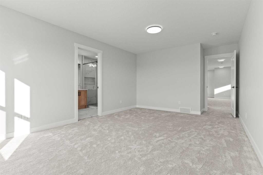 Welcome to 263 Kinniburgh Loop, a truly exceptional luxury home offering 2,457 sq. ft. of beautifully designed living space, featuring 4 bedrooms and 3 full bathrooms, thoughtfully crafted for both everyday living and entertaining. From the moment you arrive, you’re welcomed by an impressive oversized front door and a spacious, open entry that immediately sets the tone for the quality found throughout the home. Just off the foyer is a large main-floor bedroom or office, conveniently connected to a full bathroom with a standing shower—ideal for guests or multigenerational living. As you move further into the home, you’ll be captivated by the stunning chef’s kitchen featuring a nearly 9-foot island, quartz countertops, stainless steel appliances, full-height cabinetry, and high-end luxury finishes. The main floor is completed by a spacious living room with an electric fireplace, dining area, spice kitchen, and a walk-through mudroom with direct access to the garage. Everyday convenience is elevated with three main-floor closets, including two in the kitchen and one in the mudroom. Upstairs, a generous bonus room and sitting area create the perfect secondary living space. The expansive primary bedroom offers breathtaking pond views and connects to a spa-inspired 5-piece ensuite featuring dual vanities, a large glass shower with mosaic tile base, a freestanding tub, and a private toilet room. The primary flows seamlessly back into the laundry room, which also offers access back to the bonus room for added functionality. The upper level is completed by two additional large bedrooms and another beautifully finished 5-piece bathroom, with no dropped beams on the main or upper floors for a clean, open feel. This home includes all of the renowned Golden Homes standards, such as true 9-foot ceilings on the main floor, triple-pane windows, side entry, matte black iron spindle railings, matte black hardware and fixtures, built-in shelving in the pantry and primary walk-in closet, upgraded carpet underlay, a tankless hot water heater, smart home features, gas lines to both the deck and garage, and a solar panel rough-in. The exterior is fully landscaped with the lot graded and loamed, sod installed to the side entry, and a front yard tree—completing this luxury home in one of Chestermere’s most desirable communities.