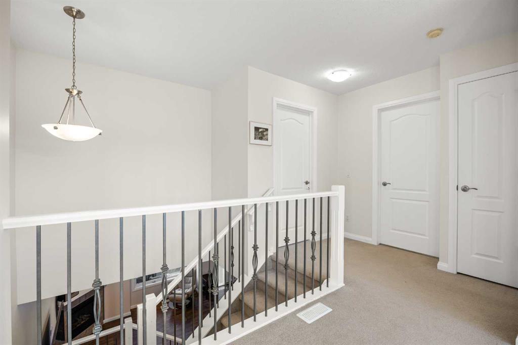 Welcome to this inviting 2-storey townhome in the heart of Royal Oak, offering bright south-facing exposure and everyday convenience—just a short walk to the C-Train station, nearby shopping, parks, and local amenities. The complex also features a beautifully landscaped central courtyard, providing a peaceful outdoor space to enjoy in the spring and summer months. The main level features 9 ft high ceilings and a Den just off the entrance, perfect as a home office or study space. Walk into the heart of the home where the open concept Living, Dining, and Kitchen areas create a bright, airy atmosphere. The well-appointed Kitchen offers quartz countertops, a raised eating bar, stainless steel appliances, and stylish tile backsplash. The spacious Living Room with cozy gas fireplace and the Dining Area open onto a private balcony, an ideal spot for summer BBQs or relaxing outdoors. This level is complete with a powder room and a Mud Room that leads directly to the single attached garage. The spacious South-facing Primary Bedroom features a walk-in closet with organizer and a 4-piece ensuite bath. This floor is finished with a second Bedroom and an additional 4-piece Bathroom. An open Loft that is great as a second family room that can be converted as 3rd bedroom if needed. Owner is willing to change it to 3rd bedroom if buyer prefers. The Basement is unfinished with a large window, offering excellent potential for future development to suit your needs. Located in a well-managed complex, this home combines a comfortable interior layout with a superb Royal Oak location—just minutes to the C-Train station, strip mall, parks, school, Stoney Trail, and Royal Oak Shopping Centre.