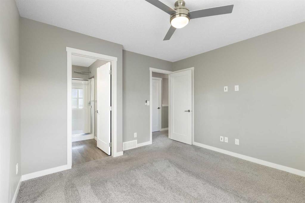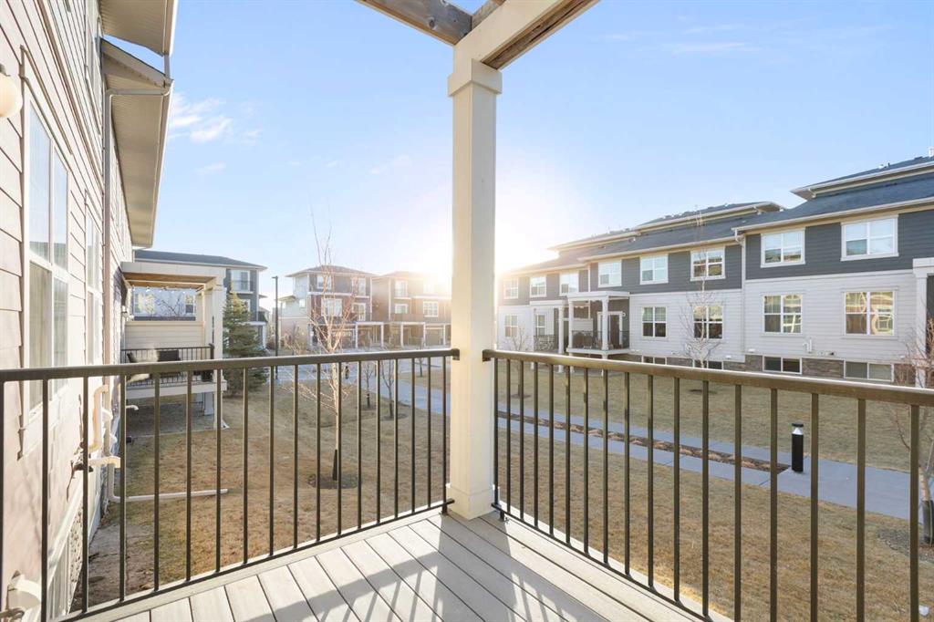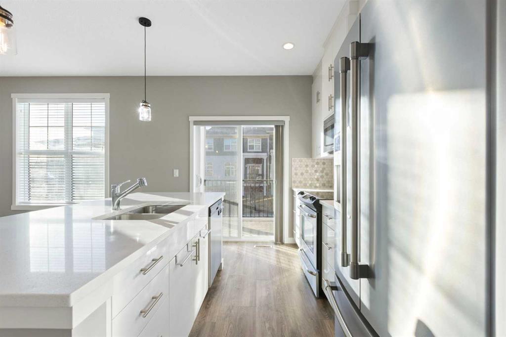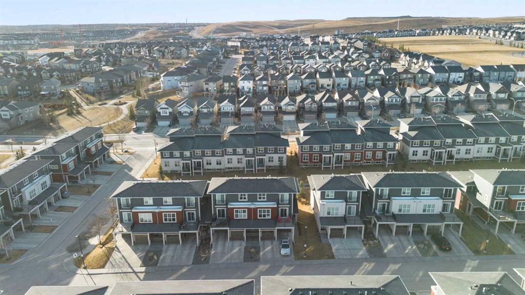 Welcome to this beautifully maintained end-unit townhome in the sought-after community of Nolan Hill. Offering 2 bedrooms and 2.5 bathrooms, this thoughtfully designed layout features highly desired layout with dual primary suites — each complete with its own walk-in closet and private ensuite — making it ideal for roommates, guests, or a comfortable work-from-home setup. The open-concept main floor is filled with natural light from additional end-unit windows and showcases 9’ ceilings, modern vinyl plank flooring, and a timeless & modern colour palette. The kitchen is both stylish and functional, featuring quartz countertops, stainless steel appliances, a large centre island with eating bar, floor-to-ceiling cabinetry, and a sleek tile backsplash. The dining and living areas flow seamlessly onto the sunny south-facing balcony overlooking green space, complete with a gas line for BBQ and room for outdoor seating — a rare and peaceful setting for townhouse living. Upstairs you’ll also find convenient upper-floor laundry. The undeveloped basement offers excellent storage and future potential An attached garage with parking pad provides everyday convenience, with additional visitor parking nearby. Located just minutes from Beacon Hill Shopping Centre (Costco, restaurants, and amenities), parks, pathways, and major roadways, this home offers exceptional value in a well-connected NW location. An excellent opportunity for first-time buyers, downsizers, or investors seeking a low-maintenance property in a desirable community. Call for your private showing today.