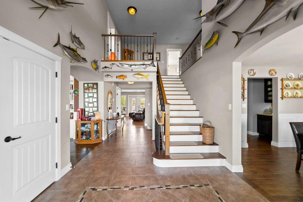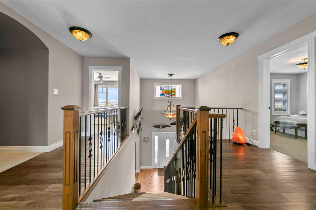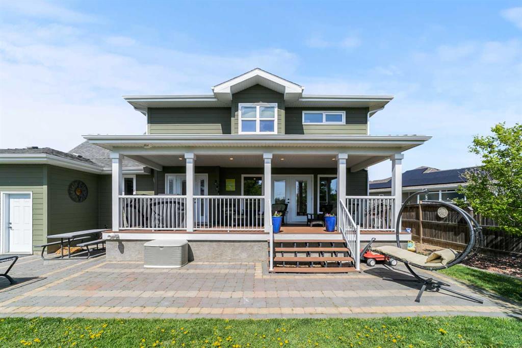One-of-a-Kind Custom High-Efficiency Home | West Side Cul-de-Sac | Backing Green Space Welcome to this exceptional, custom-built high-efficiency home offering the perfect blend of luxury, comfort, and privacy. Thoughtfully designed with composite siding, foam insulation, triple-pane windows, solid wood doors, and zero-maintenance composite front and back decks, this home delivers outstanding energy efficiency and impressively low utility costs. Situated in a quiet west-side cul-de-sac with no neighbours to the east or south—just beautiful green space—this property offers abundant natural light while maintaining exceptional privacy. Grand Entrance & Upper Level Retreat Step inside to a stunning grand foyer with an extra-wide staircase leading to the upper level. Here you’ll find three spacious bedrooms, each featuring large walk-in closets, along with a convenient upstairs laundry room and a versatile bonus room—ideal for movie nights, a study area, or the perfect kids’ play space. The primary suite is a true retreat, complete with a generous walk-in closet, cozy sitting area, and a sun-filled ensuite designed with a spa-like, serene ambiance. Main Floor Elegance & Functionality The main level boasts an open-concept kitchen with custom-built cabinetry and matching Corian countertops carried throughout the home. The kitchen flows seamlessly into the living area, creating an inviting space for everyday living and entertaining. A beautiful formal dining room, accessed through a convenient Butler’s pantry, sits adjacent to a refined library. Both rooms feature tasteful wainscoting, adding timeless elegance and character. An oversized boot room connects the triple attached garage directly to the kitchen—perfect for busy households. The garage offers space for three vehicles and features a drive-through door for easy access to the fully fenced backyard. Outdoor Living at Its Best The backyard is a private oasis filled with mature trees, a stone patio ideal for entertaining, and a covered deck off the kitchen that makes barbecuing effortless year-round. Fully Finished Basement The basement, accessed by another oversized staircase, offers two additional bedrooms with large closets, a full bathroom featuring a spacious walk-in steam shower, a generous recreational area, and a deliberately oversized mechanical room providing ample additional storage. Location Highlights Located on the desirable west side of the city, this home is close to walking trails, schools, ball diamonds, and shopping—offering convenience while maintaining peaceful surroundings.