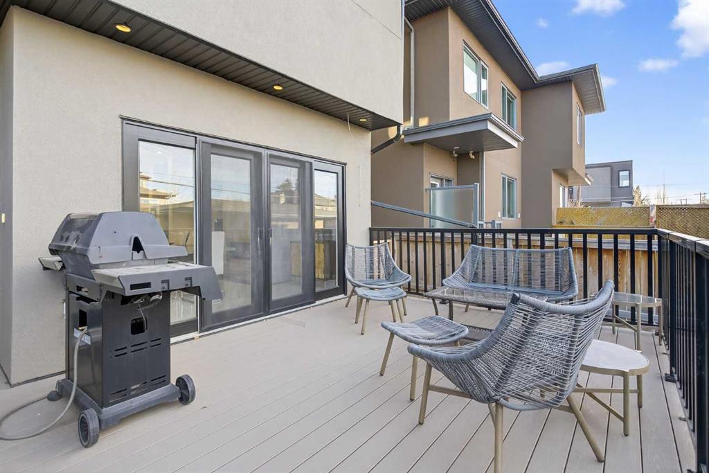 Here in the coveted inner city neighbourhood of West Hillhurst is where you’ll find your new home…this incredible 3-storey semi-detached loaded with the finest of luxury living, in this prime location only minutes to Kensington, Bow River pathway system & downtown. With over 3300sqft of living space spread over 4 levels, this stunning home enjoys a total of 5 bedrooms & 5 bathrooms, quartz countertops & central air, wide-plank engineered hardwood floors & panoramic city views as far as the eye can see! Showcased by expansive 9ft ceilings, you’ll just love the design of the main floor with its wonderful open flow & heated ceramic tile floors, from the airy living room with South-facing living room to the spacious dining room with sleek contemporary fireplace, & the fully-loaded kitchen with massive centre island with under-counter cabinets, top-of-the line Miele stainless steel appliances…including gas cooktop & built-in convection oven, bar area with wine fridge, walk-in pantry & custom cabinets highlighted by 2 huge pull-out spice/pantries. There are 3 bedrooms & 2 full bathrooms on the 2nd level…including the South-facing owners’ retreat with 2 walk-in closets, built-in shoe cabinet, floor-to-ceiling windows & spa-inspired ensuite with heated floors & quartz-topped double vanities, free-standing soaker tub & fantastic walk-in glass steam shower. Another bedroom with walk-in closet & its own private ensuite is on the top floor, plus a dynamite loft with skylight & South-facing balcony from where you can check out the downtown skyline & the surrounding neighbourhood. The lower level is beautifully finished with a 5th bedroom with walk-in closet, full bathroom with glass shower & terrific rec room area. Additional features include the 2nd floor laundry room with stacking Samsung steam washer & dryer, built-in ceiling speakers & flat ceilings, built-in storage cabinets in both the front foyer & rear mudroom, roughed-in radon system, closet organizers, heated tile floors in the main/2nd floor/3rd floor bathrooms, closet organizers & fully fenced backyard with deck (complete with gas bbq line) & insulated/drywalled detached 2 car garage with 220V wiring. Madeleine D’Houet School is steps from your front door & you’re walking distance to popular neighbourhood parks & playgrounds. A truly amazing opportunity you won’t want to miss…to make the home of your dreams come true!