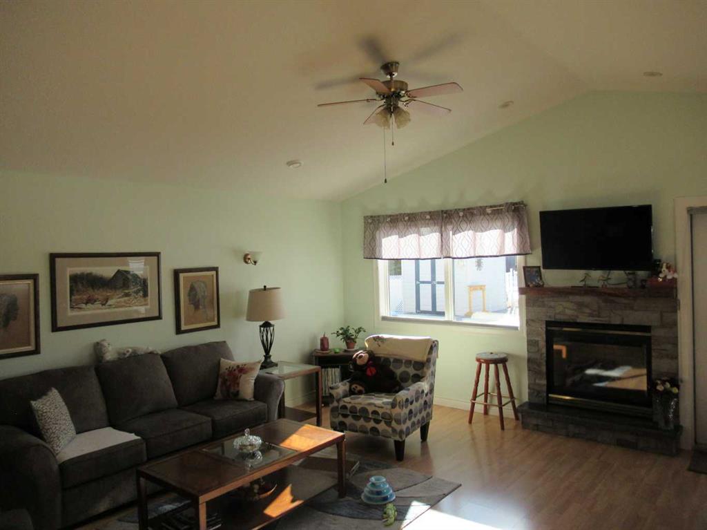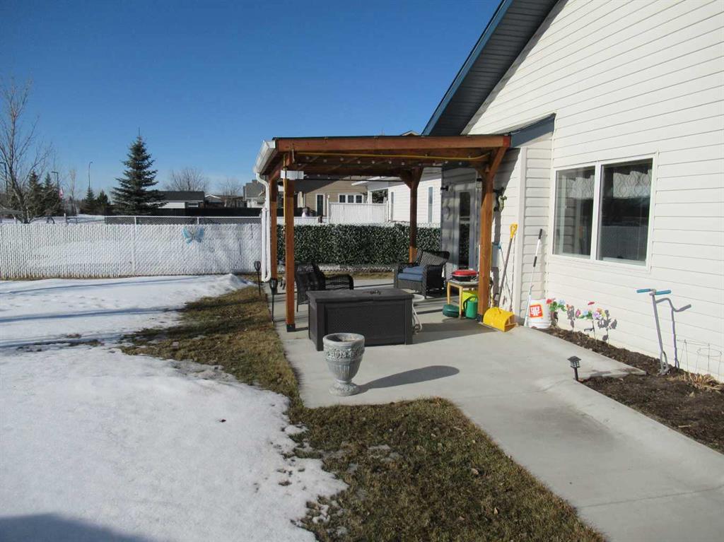 If your looking for one floor living, with no steps, this is it, Open concept living , dining and kitchen with cathedral ceiling in the main part of the home. The newer gas fire place with stone facing makes for a very cozy environment on those cold winter days, spacious kitchen with large island and pantry and newer solid surface counters makes clean up a breeze. The large master suite includes a nice size walk in closet and a large 3 piece bath. Just down the hall is another bedroom and another 3 piece bath, 1 bath has a shower and the other has a tub. to round out this great 1 level living there is a den and a 1.5 car garage. Outside the upgrades continue with a new roof (1 year old), new concrete side walks all the way around to the beautiful sun soaked back yard patio with a covered pergola. The back yard is totally fenced to keep your pets safe and backs onto walking trails and green space, also includes a storage shed . This property is nicely landscaped and very well taken care of, double wide concrete driveway, yearly services done on mechanical, water heater is 8 years old, short possession is possible, so come have a look, you wont be disappointed in this lovely home.