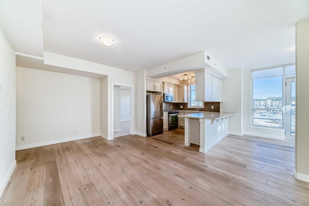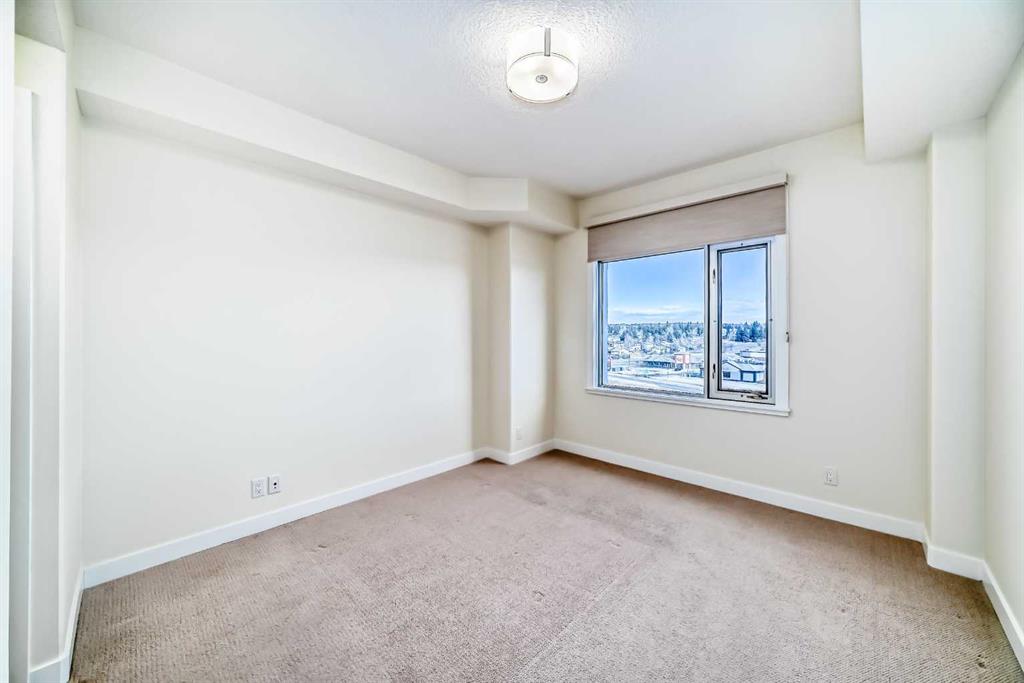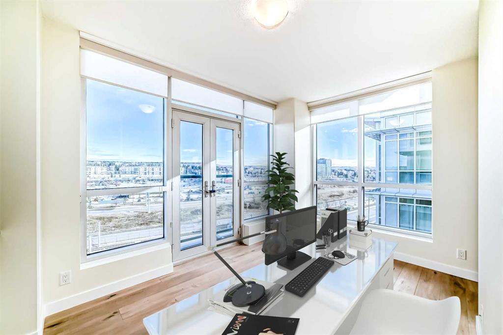 Experience elevated urban living in this gorgeous, light-filled corner residence. Located on the 8th floor of the prestigious Monterey One Tower, this 1,286 sq. ft. concrete-and-steel sanctuary offers a sophisticated blend of space and style. Upon entry, the well-appointed building lobby sets an upscale tone. Inside the suite, high ceilings and large windows bathe the open-concept layout in natural light. The versatile floor plan features a spacious living and dining area, complemented by a semi-enclosed, sunlit office/flex space - perfect for the remote professional. Bedrooms on either side of the suite ensure maximum privacy. The primary bedroom serves as a retreat, featuring a walkthrough closet leading to a 5-piece ensuite with quartz double vanities. Finished with engineered hardwood, light-toned paint, PLUS central air conditioning, every inch of this unit feels fresh and modern. The Groves was designed for a wellness-focused lifestyle, with a comprehensive fitness centre, steam rooms, a professional meeting room, and a wrap-around rooftop patio with panoramic views of the city skyline and the Rockies. Extra storage can be found in a separate assigned storage locker in the secure parkade. Love your Varsity lifestyle — just steps from the Dalhousie LRT and Dalhousie Station shopping, professional medical services, a pharmacy, and a delightful local coffee shop, plus convenient access to Market Mall, the U of C, and the Foothills Hospital. Make this special unit your new home in one of Calgary’s greenest communities.