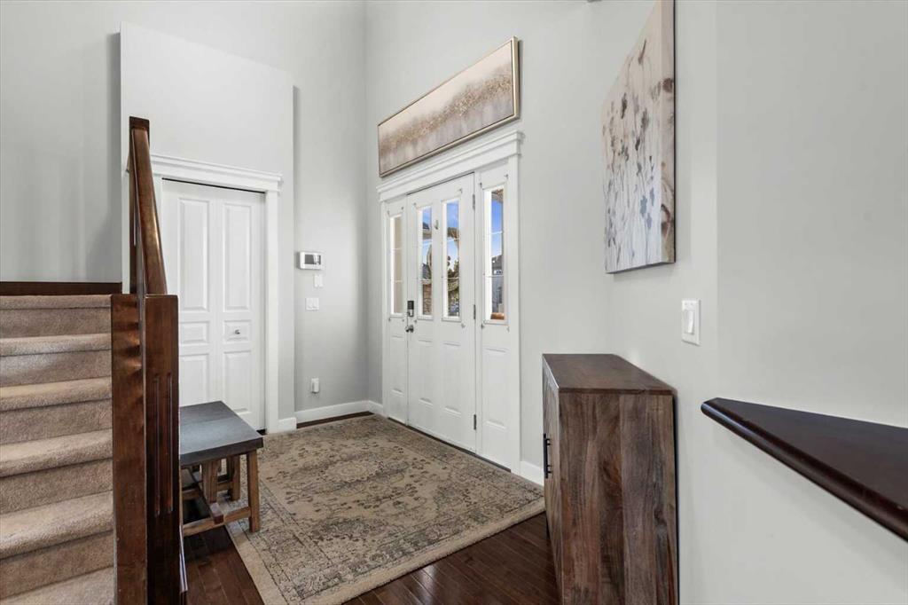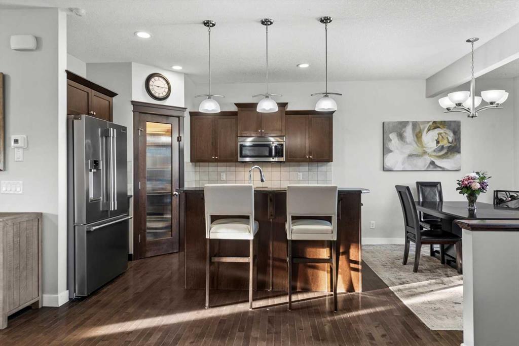 Meticulous, designer-inspired two-story home in the Airdrie community of Ravenswood. The welcoming foyer leads into a bright, open-concept main living area. The kitchen is beautifully appointed with a central island and breakfast bar, new stainless-steel appliances (including an exceptional gas range), and a walk-in pantry. Open to the kitchen, the family room features a cozy gas fireplace and outdoor views of the adjoining green space with its convenient walkway. Step outside to a private, fully fenced backyard with a fire pit—perfect for summer evenings with friends. Upstairs discover a bright, spacious bonus room, three bedrooms, and a 4-piece main bath. The primary retreat offers a customized walk-in closet and a 4-piece ensuite complete with a soaker tub and skylight. The unfinished lower level awaits a finishing design to suit your lifestyle. Ideally located close to Heloise Lorimer School and École des Haute-Plaines (K–12), with easy access to Highway 2 for easy commuting north and south, including YYC airport and downtown Calgary.