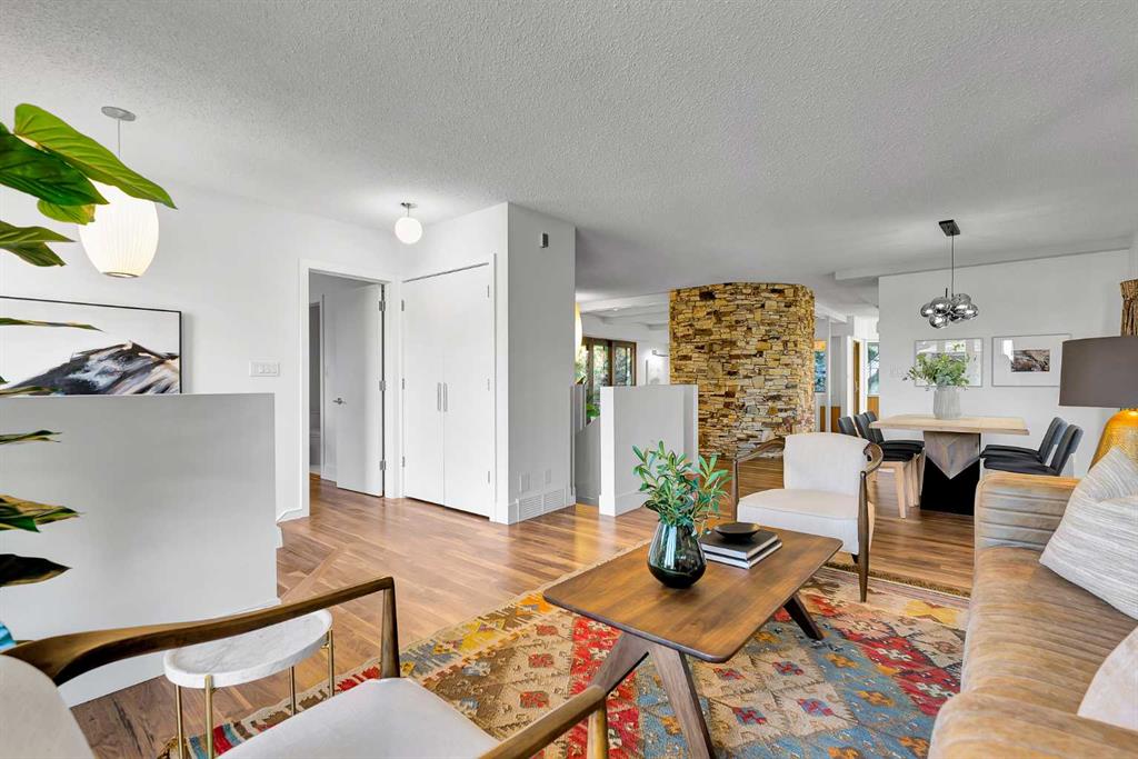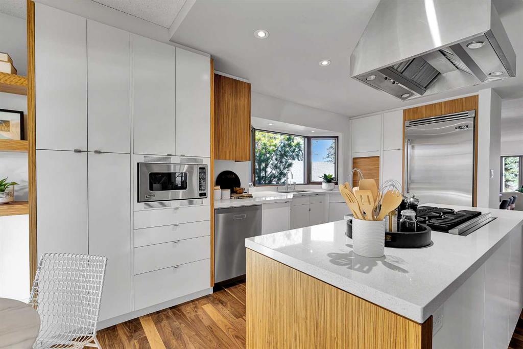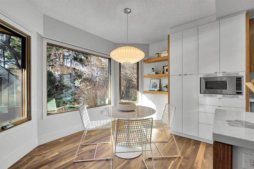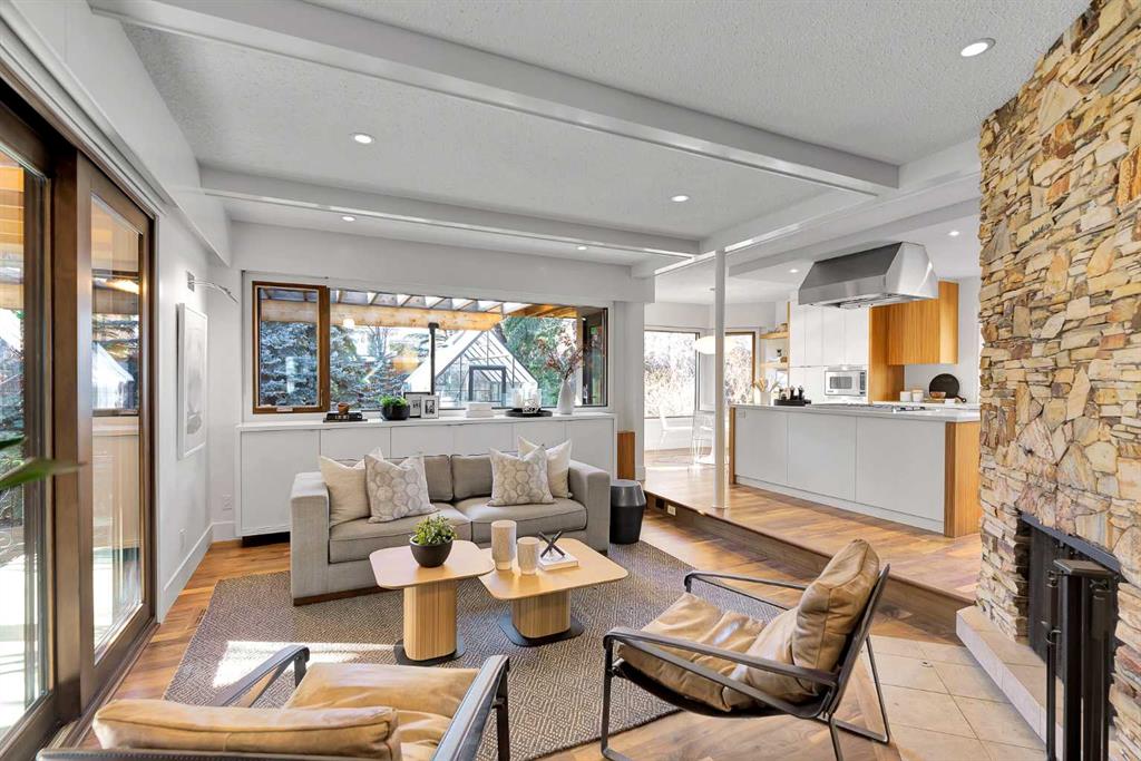 Some homes are renovated. Others are cared for, respected, and thoughtfully evolved. In the heart of Upper Scarboro, this updated mid-century bungalow offers approximately 2,650 sq ft of developed living space across both levels — where original architectural character meets modern-day comfort. Lovingly maintained by owners who appreciated its design, the home has been enhanced over the years without losing its soul. At the centre of the main living space, a natural stone wood-burning fireplace rises like a sculptural column — an authentic mid-century feature that brings warmth, texture, and quiet drama to the room. Light pours in through wide windows, reflecting off warm, freshly refinished walnut hardwood floors and clean architectural lines. The kitchen and bathrooms have been tastefully updated, complementing the home's original character rather than competing with it. The main level includes a peaceful primary suite with a spa-style bathroom with a deep soaker tub and spacious shower. A bright front den offers flexible space for work-from-home or a guest room, and a convenient 2-piece bathroom provides access from the den or hallway for guests. A sunlit breakfast nook opens to a comfortable family room, while seasonal outdoor living is extended with a covered outdoor area — creating a natural extension of the interior and offering an electric fireplace to take off the chill. Beyond, the private backyard offers mature trees, perennials, shrubs and an inviting greenhouse — a lovely space for gardening and quiet mornings with a cup of coffee. Downstairs, the finished basement provides additional living space with potential for guests, teens, or a workout area, along with a 3-piece bathroom and storage. The under-house oversized double garage is heated and has 30 amp service for convenience. Situated just minutes from downtown and offering a large west-exposed yard for evening gatherings, this is a rare opportunity to own a thoughtfully updated mid-century home in one of Calgary’s most sought-after inner city neighbourhoods.