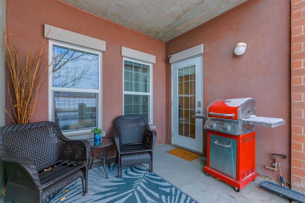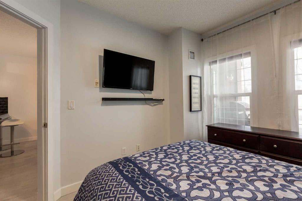 Live in the award-winning Calgary condo of the year 2025 at Gateway Southcentre. This expansive one-bedroom plus den unit offers nearly 700 square feet of functional living space that has been freshly updated with modern laminate flooring and new paint throughout. The bright, open-concept layout features a kitchen equipped with timeless maple cabinetry, stainless steel appliances, and quartz countertops with a breakfast bar. The living area extends naturally to the patio, which is perfect for summer barbecues and outdoor relaxation. Pet owners will particularly appreciate this location, as the main-floor unit provides direct access from your patio to the sidewalk, making morning walks effortless. The primary bedroom is generously scaled with a walk-in closet, complemented by a four-piece bath and a dedicated den that serves as an ideal home office. This property comes complete with in-suite laundry, titled underground parking, and an assigned storage area. The building offers efficient geothermal heating and cooling alongside premium amenities including a fitness center, guest suites, a party room, and underground visitor parking. Located within walking distance to the trendy shops and restaurants in Avenida and Southcentre Mall, this home offers easy access to major roads and urban conveniences.