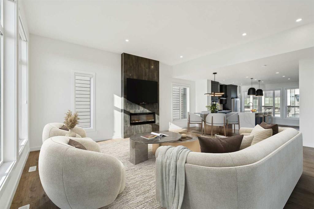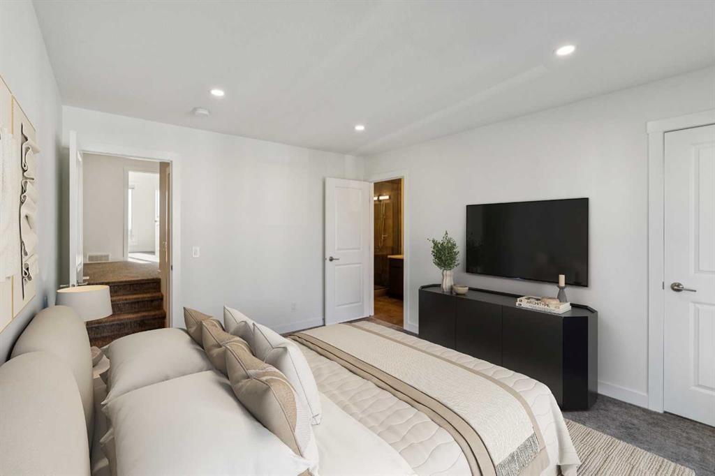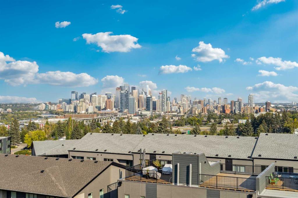 OPEN HOUSE SUNDAY FEBRUARY 15TH 12-2P.M. Perched at the highest point in Crown Park with the BEST VIEWS in the complex, this sophisticated Rouge walk out end-unit townhome was one of the first sold by the developer, offering a rare blend of urban convenience, contemporary design and DIRECT CITY SKYLINE VIEWS FROM 3 LEVELS setting it apart from other units (NO GST!). Steps from walking paths, parks, the Bow River, and LRT access, this home places the best of the city and nature right at your doorstep. A private east-facing front patio overlooks the community’s expansive green space and beautifully maintained raised garden beds — an inviting introduction to the lifestyle that awaits. Inside, the entry-level welcomes you with a flex space ideal for a home gym, office, or studio, as well as access to a private double attached garage with additional storage. Ascend to the main living level, where soaring ceilings and a sun-drenched open floor plan define the heart of the home. The chef-inspired kitchen features a premium stainless steel appliance package, sparkling quartz countertops, and a waterfall island. A stylish adjacent bar area, complete with wine fridge and additional cabinetry, is perfect for entertaining and crafting your signature cocktail. The dining room serves as the hub for hosting memorable meals, while the spacious living room centers around a sleek linear gas fireplace ready with TV wall mount already installed. Step out onto the east-facing balcony, with full city views, overlooking the community’s tranquil green space—perfect for morning coffee or evening unwinding. On the upper level, discover three well-appointed bedrooms, a bonus flex area, and convenient upper laundry. The primary suite features a 4-piece ensuite and walk-in closet, while two additional bedrooms share a beautifully designed 3-piece bath. The central bonus area offers a perfect spot for a kids’ play area, study nook, or cozy reading lounge. But the true showstopper awaits above — the private rooftop patio. With the best direct views of Calgary’s downtown skyline to the east when sitting and enjoying the sun and glimpses of the west, this incredible outdoor living space is your personal retreat to watch both sunrises and sunsets in style. This energy-efficient home is thoughtfully designed and EnerGuide-rated, seamlessly blending luxury with sustainability. Located in a community that connects urban living with natural beauty, you’ll enjoy access to the Douglas Fir and Quarry Trails, dog-friendly parks, boutique fitness studios, and some of Calgary’s top dining and entertainment spots. With Bow Trail and the LRT just minutes away, you're effortlessly connected to downtown and the mountains alike. Whether you're entertaining guests, working from home, or escaping to the rooftop to soak in the skyline, this Crown Park masterpiece offers an elevated lifestyle in one of Calgary’s most dynamic new communities.