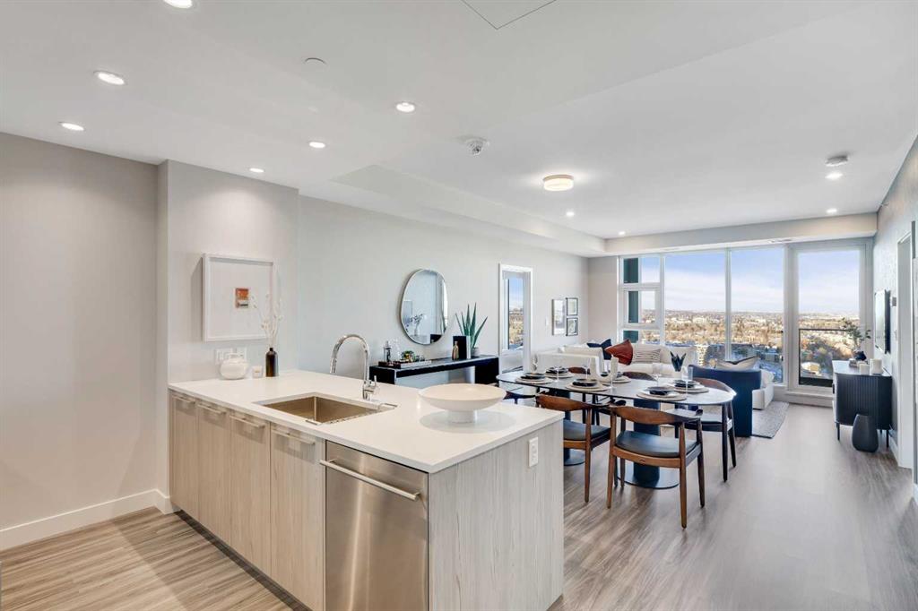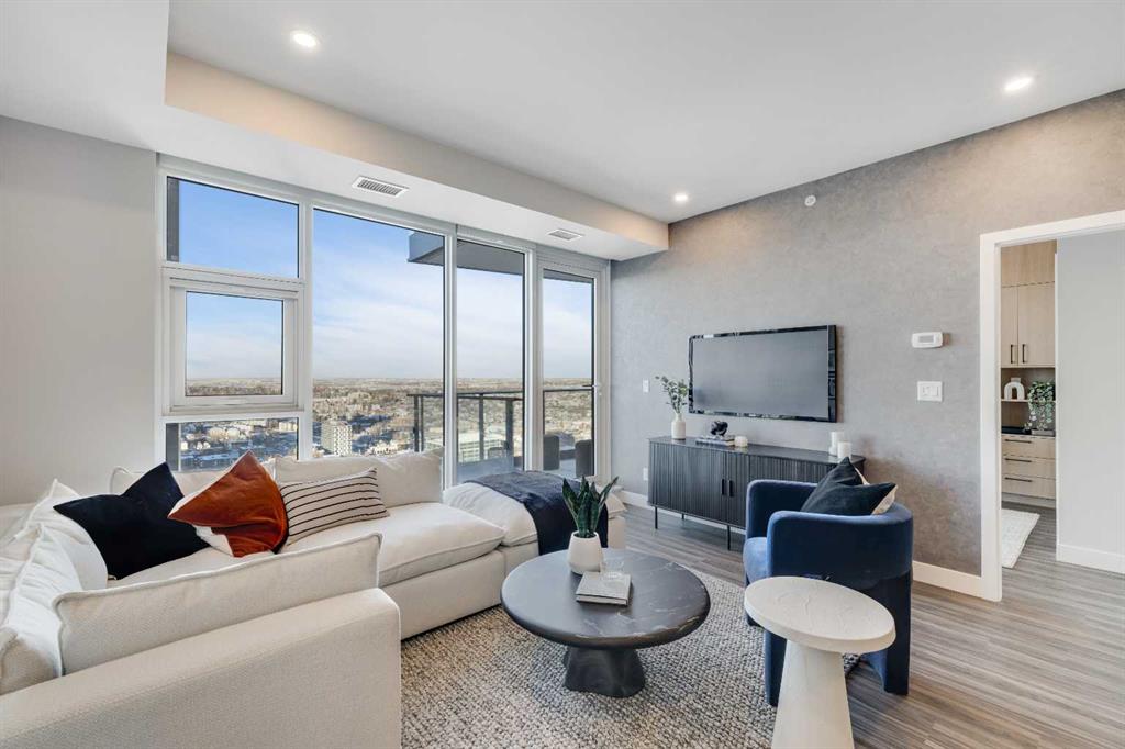 Experience the epitome of urban luxury living at Arris Residences! Immerse yourself in a world of unparalleled convenience, sophisticated comfort, and top-tier amenities. Set your sights high as you journey through this magnificent building, where a pristine 2-bedroom, 2-bathroom unit, with a sprawling balcony awaits, offering breathtaking river views. As you step through the entrance, a welcoming foyer ushers you in, providing easy access to your front closet and in-suite laundry. Moving into the expansive main living area, you're greeted by floor-to-ceiling windows that reveal a panoramic spectacle. The open-concept layout seamlessly merges the kitchen, dining, and living spaces, all adorned with premium finishes, including abundant pot lights and wide plank flooring. The gourmet kitchen is graced with a high-end European appliance package, featuring a built-in 30” Blomberg stainless steel refrigerator and a Fulgor Milano stainless steel 5-burner gas cooktop and wall oven. Quartz countertops, sleek soft-close cabinetry, and an expansive kitchen island with a built-in dishwasher and microwave create an inviting space for gatherings. The dining area accommodates a generous table, while the living area beckons for relaxation as you take in the captivating river and city views. The primary bedroom boasts ample space and a generously sized closet. Mornings are a delight in the 4-piece ensuite, which features double sinks, vanity drawers, and a spacious step-in shower enclosed by a glass door. The second bedroom, currently used as an office, offers versatility, and serves as an ideal workspace or guest retreat. To top it all off, this unit includes an underground parking stall and a storage locker. EV parking options available. Within the building, the modern structure houses a wealth of amenities centered around 'Club Arris,' offering an impressive 25,000 sq. ft. of both indoor and outdoor facilities. Enjoy our state-of-the-art fitness center equipped with spin, weight, yoga, and TRX options, featuring top-of-the-line fitness equipment that rivals any gym. The four-season indoor heated pool, complete with a hot tub, sauna, and steam room, provides an unparalleled relaxation experience. The social lounge, private dining area, video conferencing rooms, and the lush outdoor terrace serve as the ultimate VIP social spaces, expanding your living area and enhancing your social connections. These executive-style residences sit atop a sprawling podium of essential services, including the new urban-format Real Canadian Superstore, ensuring all your needs are met right at your doorstep. ** PHOTOS ARE FROM A PREVIOUS SHOWSUITE**