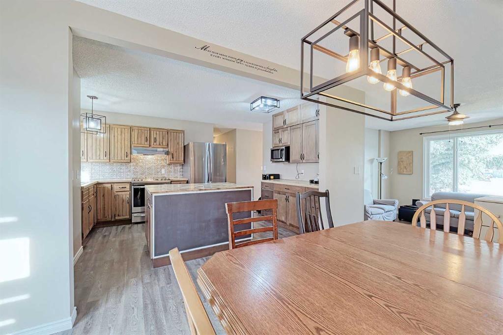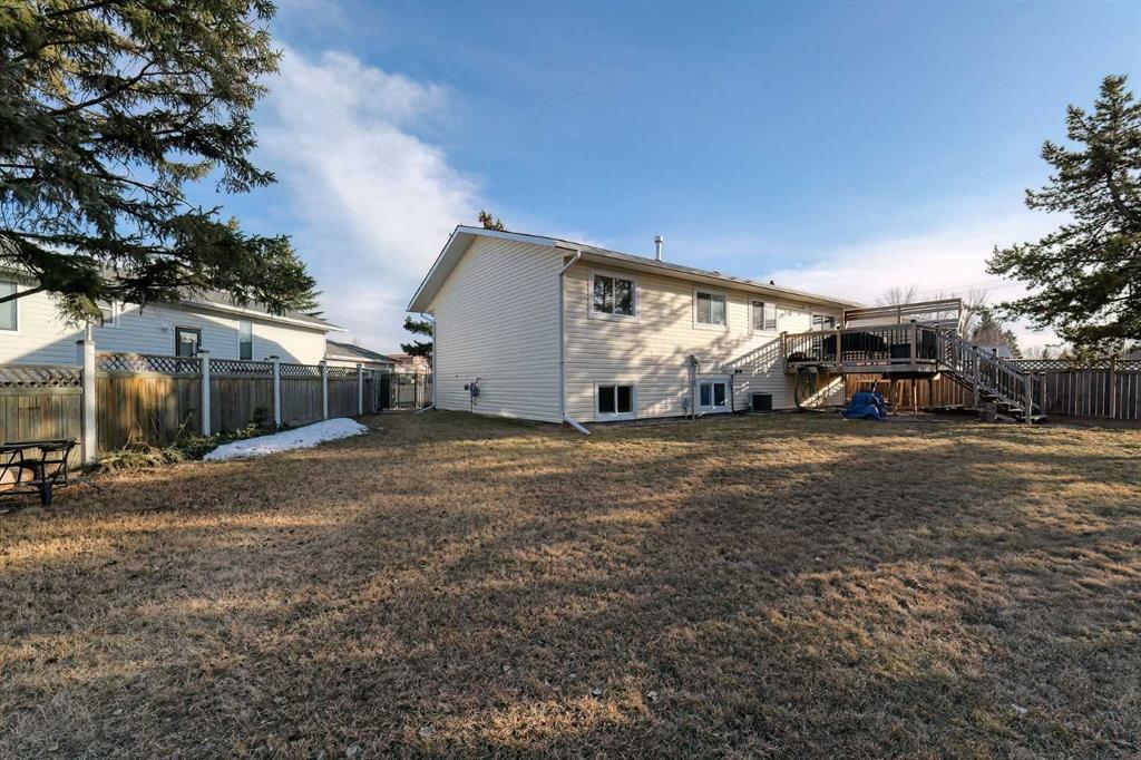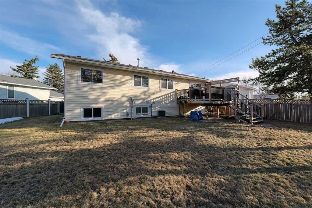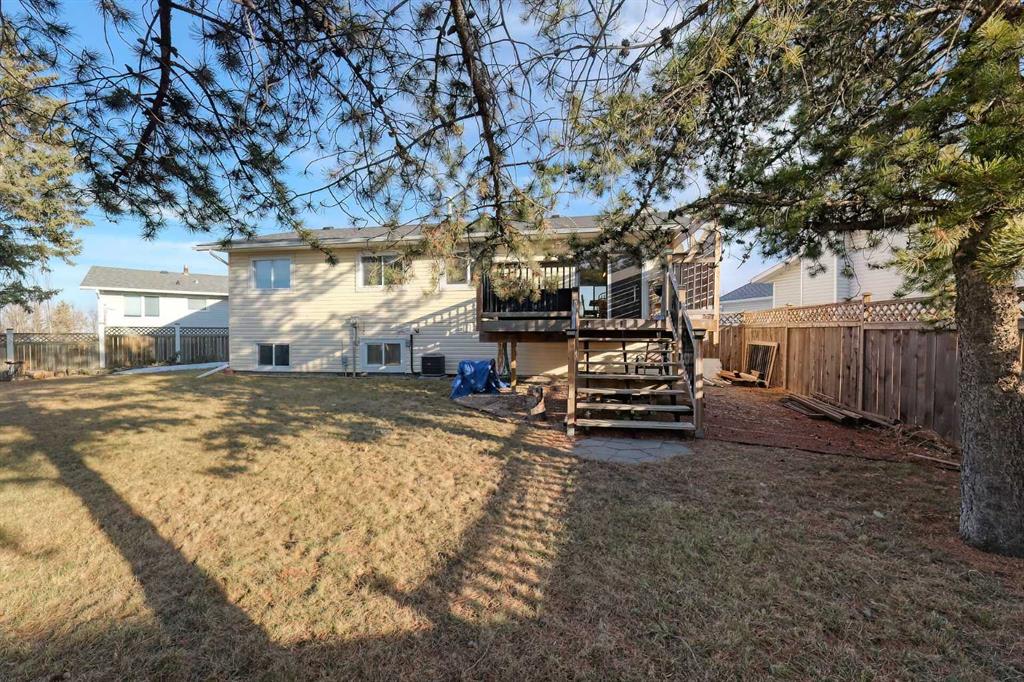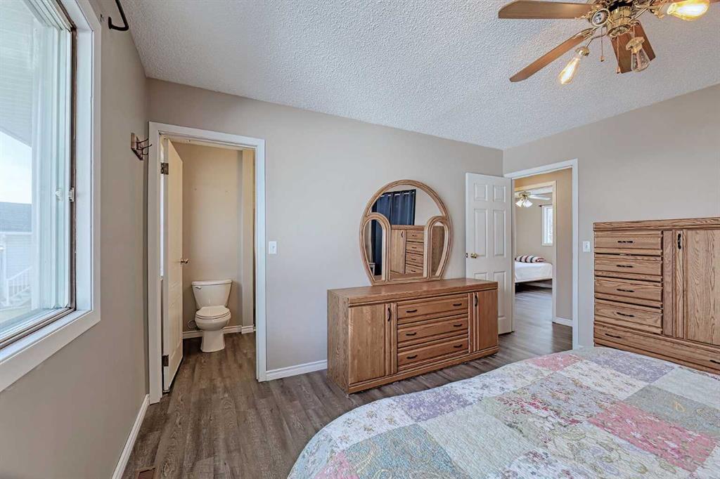 ***OPEN HOUSE SATURDAY MARCH 28 12:00 TO 2:00*** WOW! This charming DETACHED home in Irricana offers small-town living just 20 minutes to Airdrie and 25 minutes to the Calgary International Airport. Move-in ready and lovingly maintained by long-time owners, this home is cute as a button and located on a quiet cul-de-sac with a good-sized driveway providing ample parking. Inside the double front doors, you’ll find a spacious grand foyer with a closet—rare for a bi-level. The main floor features a thoughtfully designed kitchen with an island, ample counter space, pantry, stainless steel appliances and a window over the sink. The kitchen flows into the dining area with patio doors leading to the back deck and west facing backyard. The sunken living room has built in bookshelves and a brick wood-burning fireplace, creating a cozy and inviting atmosphere. There are three bedrooms on the main level, including the primary bedroom with a 3-piece ensuite, plus a 4-piece main bathroom. The lower level offers a family room, two additional bedrooms with large windows, a versatile craft/hobby room, utility room and a handy 2 piece powder room. The HUGE, fully fenced lot (over 8800 sq ft) is perfect for kids, pets, and outdoor entertaining, with mature trees providing privacy and shade. The upper level and all the stairs have well installed matching flooring throughout and the home has CENTRAL AIR CONDITIONING. Lots of upgrades over the years and really very well maintained. This home is an excellent opportunity for first-time buyers, empty nesters or anyone looking for a peaceful community with easy access to the city.
