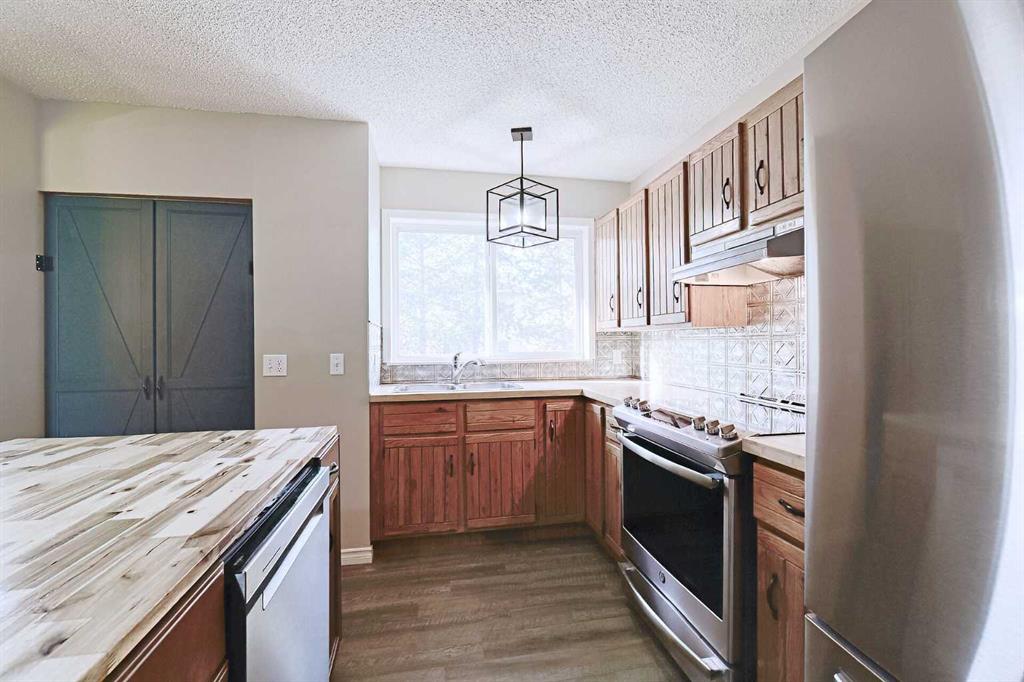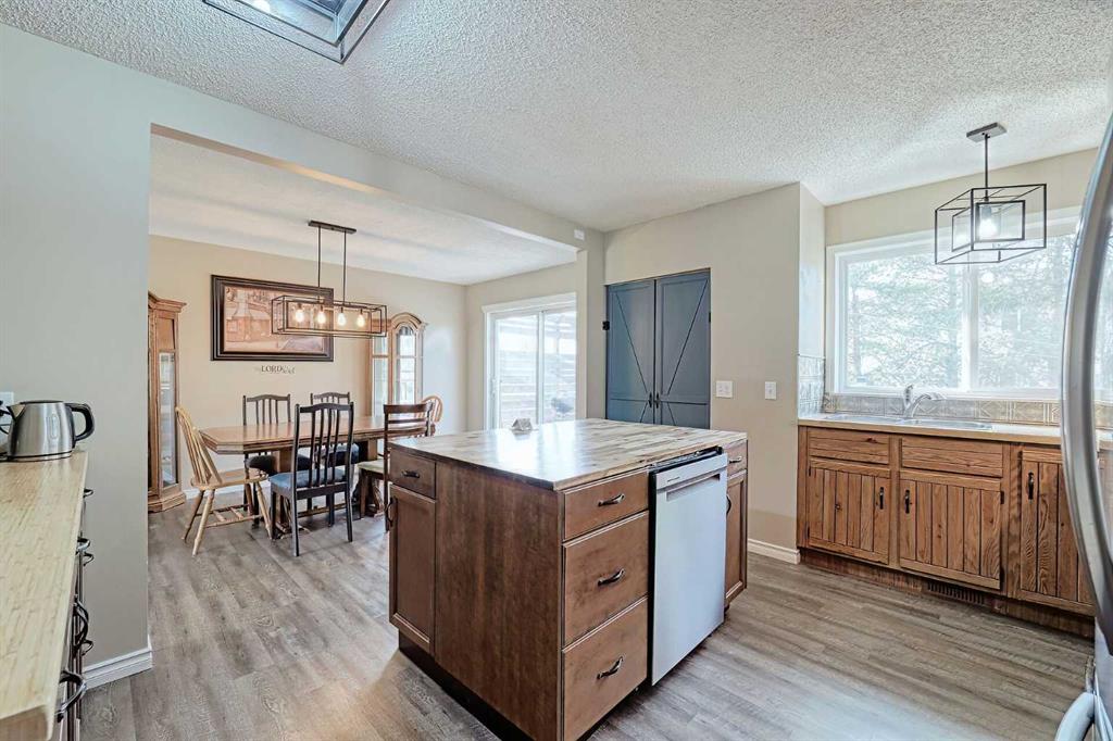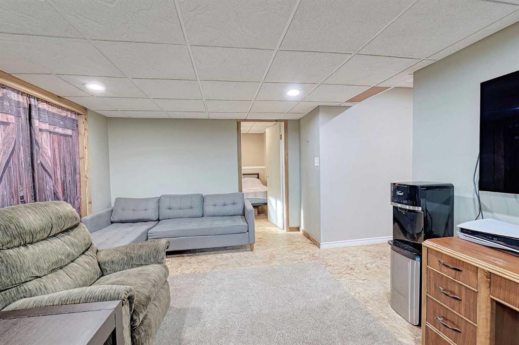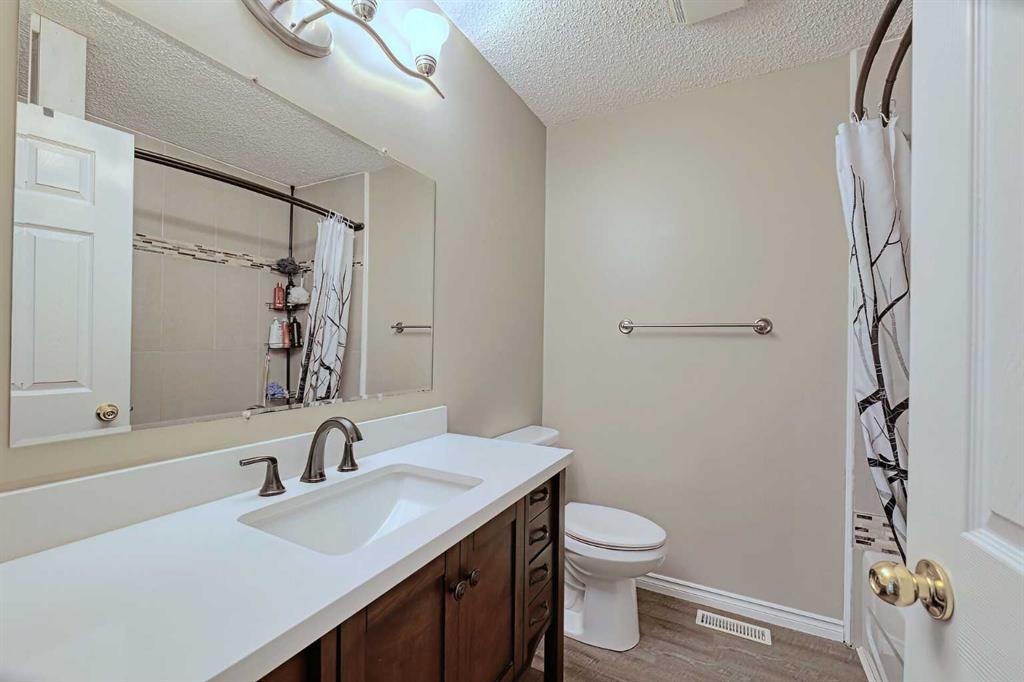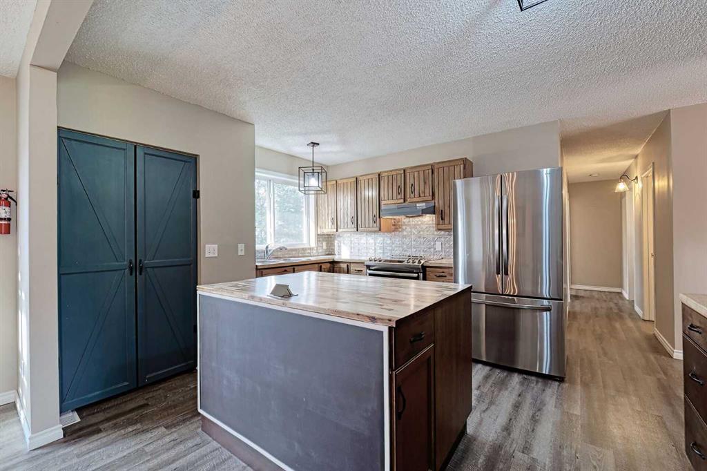 ***OPEN HOUSE SATURDAY MARCH 28 12:00 TO 2:00*** WOW! This charming DETACHED home in Irricana offers small-town living just 20 minutes to Airdrie and 25 minutes to the Calgary International Airport. Move-in ready and lovingly maintained by long-time owners, this home is cute as a button and located on a quiet cul-de-sac with a good-sized driveway providing ample parking. Inside the double front doors, you’ll find a spacious grand foyer with a closet—rare for a bi-level. The main floor features a thoughtfully designed kitchen with an island, ample counter space, pantry, stainless steel appliances and a window over the sink. The kitchen flows into the dining area with patio doors leading to the back deck and west facing backyard. The sunken living room has built in bookshelves and a brick wood-burning fireplace, creating a cozy and inviting atmosphere. There are three bedrooms on the main level, including the primary bedroom with a 3-piece ensuite, plus a 4-piece main bathroom. The lower level offers a family room, two additional bedrooms with large windows, a versatile craft/hobby room, utility room and a handy 2 piece powder room. The HUGE, fully fenced lot (over 8800 sq ft) is perfect for kids, pets, and outdoor entertaining, with mature trees providing privacy and shade. The upper level and all the stairs have well installed matching flooring throughout and the home has CENTRAL AIR CONDITIONING. Lots of upgrades over the years and really very well maintained. This home is an excellent opportunity for first-time buyers, empty nesters or anyone looking for a peaceful community with easy access to the city.