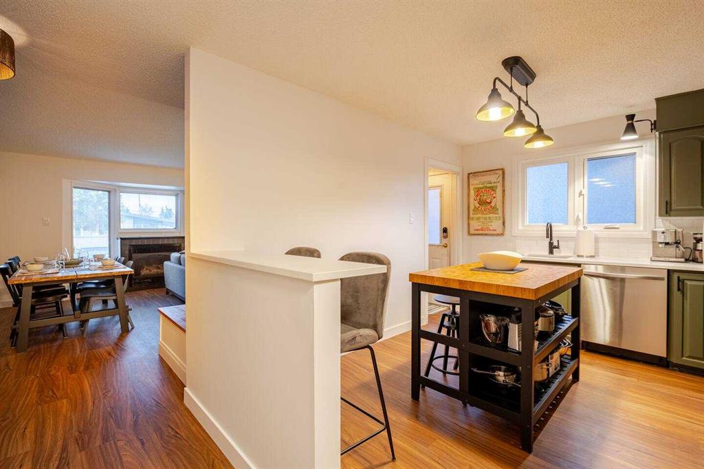 Welcome to this beautifully updated bungalow in sought-after Acadia, offering an open-concept layout, modern finishes, and an incredible private backyard retreat on a massive lot. Step inside to a bright and inviting main floor featuring luxury vinyl plank flooring throughout and a spacious south-facing living and dining area anchored by a cozy gas fireplace—perfect for everyday living or hosting friends. The upgraded kitchen is made for entertaining, complete with quartz countertops, a subway tile backsplash, undermount sink, and new high-performance appliances including a Samsung stove, Samsung dishwasher, and Whirlpool refrigerator. The main level also includes two generous bedrooms and a beautifully renovated full bathroom. Downstairs, the fully finished basement expands your living space with two additional bedrooms, a second cozy wood-burning fireplace, another upgraded bathroom, and an oversized laundry room with a brand-new dryer—ideal for busy households. Outside, you’ll love the front carport and driveway, plus the added bonus of a detached single garage off the laneway. The backyard is truly something special—mature trees, exceptional privacy, and a peaceful retreat vibe. An oversized private deck completes the space, perfect for summer evenings, entertaining, or simply relaxing. Additional Upgrades & Highlights: Professionally installed new front entry door (GreenFox); New patio sliding door (GreenFox); 3 replaced basement windows for improved light and efficiency (GreenFox); Custom Hunter Douglas window coverings in upstairs bedrooms and patio door; Fully renovated main floor with modern finishes; New vanities, toilets, and updated tile in all bathrooms; New bathtub in main bathroom + new shower in basement bathroom; Energy-efficient hot water tank installed last year (full list of upgrades in supplements). This is an exceptional opportunity to own a move-in-ready home in one of Calgary’s most established and convenient communities—close to parks, schools, shopping, and major routes. Book your private showing today!