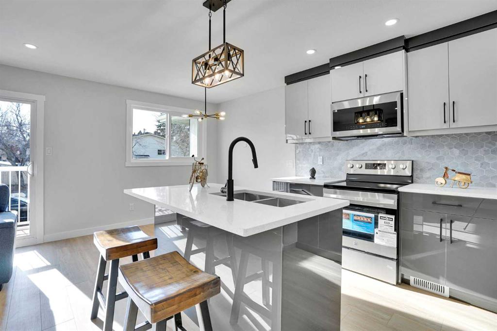 Welcome to this beautifully renovated bi-level semi-detached home located in the desirable community of Beddington Heights NW, Calgary. Offering over 1,027 sq. ft. of above-grade living space and a fully finished basement, this impressive property features a total of 6 bedrooms and 3.5 bathrooms, making it ideal for families, multi-generational living, or investors. Upon entry, you are greeted by a spacious foyer that leads into a modern, open-concept main floor. The upgraded kitchen showcases brand-new stainless steel appliances, quartz countertops, a large island, and ample cabinetry, overlooking the bright living and dining areas—perfect for entertaining. Large windows provide access to the balcony and allow an abundance of natural light to fill the space. The main level offers three generously sized bedrooms, including a primary bedroom with a private 4-piece ensuite, along with two additional bedrooms and a 4-piece common bathroom. Main-floor laundry adds to the home’s everyday convenience. The fully finished basement (illegal suite) features a separate entrance, a large recreation room, three additional bedrooms, a 4-piece bathroom, and a 2-piece bathroom, along with separate laundry facilities, providing excellent flexibility and potential for extended family use. The property is fully fenced and includes a beautiful backyard and two parking pads, completing this exceptional home. Ideally located close to schools, shopping, parks, public transit, and all major amenities, with easy access to transportation routes. This move-in-ready home is truly a gem. Book your showing today!