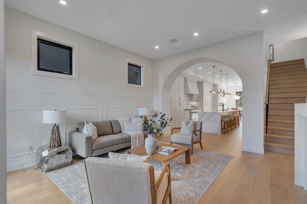 The builder is offering an extended warranty with the standard first year coverage extended to two full years, providing enhanced peace of mind and added long term protection for the new homeowner. This exceptional brick residence by Jerry Homes is ideally situated near Marda Loop in one of Calgary’s most desirable inner city neighbourhoods and offers a refined blend of timeless architecture and modern luxury. The thoughtfully designed main level features soaring 10 foot ceilings, expansive windows that flood the space with natural light, an elegant dining area with detailed wall treatments, and a stunning chef inspired kitchen anchored by an oversized island, quartz countertops, custom cabinetry, premium built in Wolf and Dacor appliances, a concealed walk in pantry, and sophisticated designer finishes throughout. A beautifully defined great room centers around a custom multi tier gas fireplace creating an inviting yet elevated atmosphere, while a functional mudroom with ample storage adds everyday convenience. Upstairs, 9 foot ceilings frame a luxurious primary retreat complete with dual walk in closets and a spa like five piece ensuite finished in full height designer tile and offering in floor heating, a steam shower rough in, and a deep soaker tub. Two additional bedrooms, a well appointed bathroom, and a spacious dedicated laundry room complete the upper level. The fully developed basement expands the living space with a large recreation room, wet bar, fourth bedroom, and a full bathroom along with in floor heating rough in for added comfort. Additional highlights include rough ins for air conditioning, built in ceiling speakers, a security system, and exterior cameras. Surrounded by top rated schools, parks, and the vibrant shops and restaurants of Marda Loop, this home delivers elevated inner city living with exceptional craftsmanship and everyday practicality.