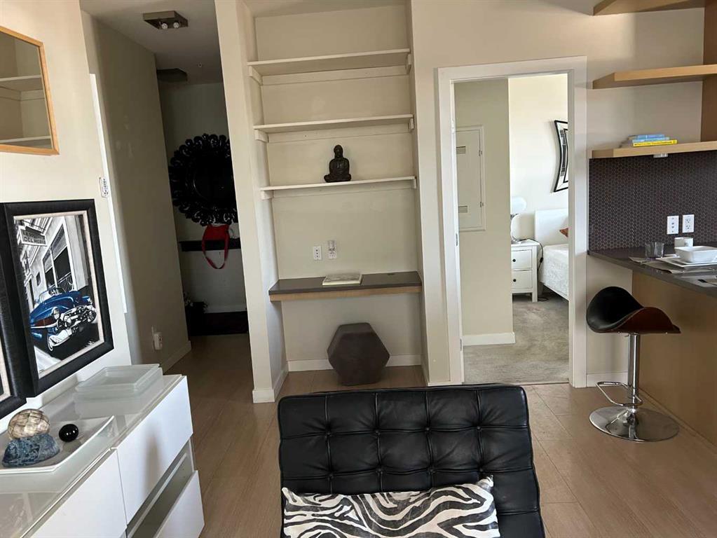 Step into this 2 bedroom and 2-bathroom corner-unit home and you will be greeting by a spacious kitchen with classic penny-round backsplash and quartz countertops, maple cupboards, stainless appliances including a built-in oven, and a countertop gas stove . A huge quartz peninsula has enough counter space to sit 3 people. Nine feet ceilings and large windows create an extra roomy feel. Windows blanket both the North and East sides of this unit The North – East patio has a gas hookup to take care of your ba4bequing needs. The master bedroom has a luxurious ensuite with a 3’ x 8’ glass shower and a walk-in closet. The second bedroom is more than generous with ample storage and a 2’nd 4-piece bathroom is just off the entrance to the unit. Apartment style in-suite laundry facilities enable you to take care of all your laundry needs. This unit also has a storage locker and a tandem parking stall for 2 vehicles. This desirable condo complex features a pet-wash, a car wash, 2 gyms, a bike storage room, visitor parking and a beautiful courtyard. The condo has very reasonable condo fees. Conveniently located near restaurants and shopping and minutes to downtown. This condo has a perfect balance for size and lifestyle for the inner-city dweller. This is a pet friendly building. NOTE: Vacant – easy to show. CREB LOBBYBOX at the front entrance of building 707 provides access to the building. Condo entrance lockbox on the unit door.