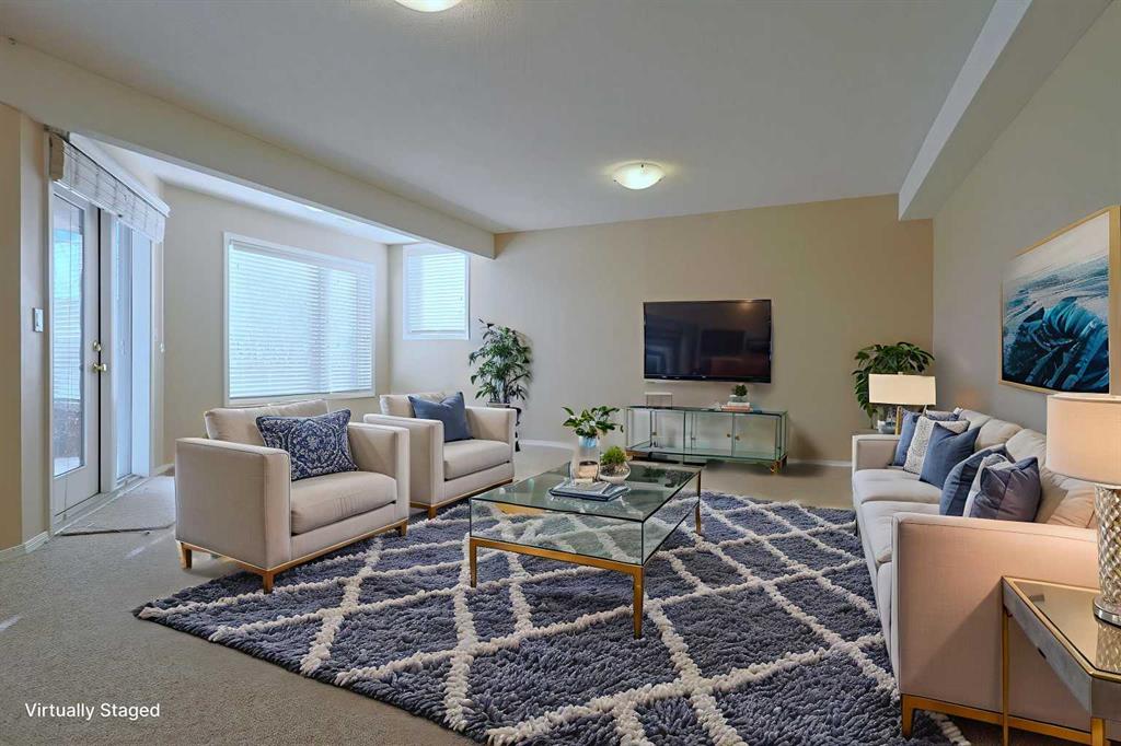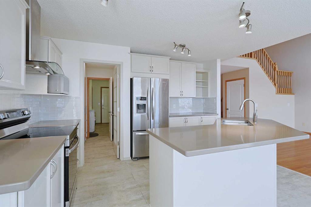 Available for quick possession is this Calbridge Homes two storey walkout in the highly-desirable golf course community of Hamptons, located here on this quiet street only minutes walk to bus stops & neighbourhood shopping. Offering a total of 4 bedrooms & central air, this fully finished home enjoys hardwood & vinyl floors, white kitchen with quartz countertops, 3.5 bathrooms & almost 3000sqft of developed living space. Fantastic family-friendly floorplan featuring sunny living room with gas fireplace & soaring 17ft ceilings, separate formal dining room, dining nook with access onto the rear balcony & terrific open concept kitchen with centre island, stainless steel appliances & walkthrough pantry with built-in cabinets. Upstairs there are 3 lovely bedrooms & 2 full baths; the primary bedroom has a big walk-in closet & soaker tub ensuite with separate shower & tile floors. The walkout level is finished with a 4th bedroom with walk-in closet, bathroom with shower, lots of storage space & games/rec room with access into the backyard. Main floor laundry room complete with sink, built-in cabinets & Kenmore washer/dryer set. Ready & waiting for a new family to make it their own, this dynamite home is only minutes to the golf course clubhouse & Hamptons School, community parks & sports courts, playgrounds & easy access to major retail centers, Nose Hill Park, University of Calgary, hospitals & downtown.