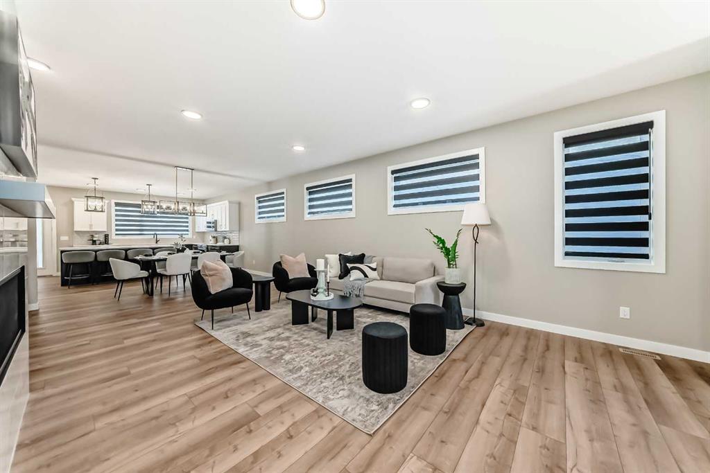 This CUSTOM BUILT BUNGALOW should be featured in a design magazine! 1,862 square feet on the main level, HIGH CEILINGS with a WIDE OPEN CONCEPT. Abundant with BIG WINDOWS through out, all fitted with CUSTOM BLINDS each with remote chargeable wands. 3 very generously sized BEDROOMS, with 3 ADDITIONAL bedrooms framed downstairs, equally as large. 2 BATHROOMS upstairs. The ENSUITE features IN FLOOR HEAT that heats right into the tiled shower. Each bathroom is upgraded with PULLOUT TAPS, QUAD STYLE ELECTRICAL OUTLETS and TOTO TOILETS. The MAIN FLOOR LAUNDRY ROOM has plenty of CABINETS, FOLDING COUNTER+ SINK. A 2nd Laundry is plumbed downstairs. The LIVING ROOM/DINING/KITCHEN area are WOW the moment you walk into the home. Designer Feature Wall with CABINETRY, GAS FIREPLACE + TV WALL, FLOOR OUTLETS for extra convenience, DRY/COFFEE BAR with a BAR FRIDGE, ELEVATED LIGHTING throughout the home! The Kitchen has all PULLOUT DRAWERS + CUSTOM CABINETS. The large ISLAND features hidden cabinet space on the backside, pullout drawers all the way around, seats 4 easily and is a chef’s dream space for entertaining. All TOP TIER APPLIANCES which includes the popular "knock knock" Fridge. Outside is a fabulous 30x10 deck with a built on PREGOLA and GAS LINE for the BBQ. DOWNSTAIRS FEATURES: 3 FRAMED BEDROOMS w/closets, Roughed IN 4 PIECE BATHROOM, Functioning IN FLOOR HEAT, Roughed-in WET BAR + 2nd GAS FIREPLACE, space for a FAMILY ROOM + GAMES ROOM, a huge STORAGE ROOM that could make a great work shop or 2nd pantry. Upgraded UTILITY ROOM. EXTRAS: A/C, FINISHED HEATED GARAGE w/a FOOR DRAIN, Exterior GEMSTONE LIGHTS, WIRED for SECURITY, NEW HOME WARRANTY. The Walking Trails, Parks are at the end of the street. Shopping, Amenities, Schools are close by. This BRAND NEW, NEVER LIVED IN home, is a one of a kind home. 10 minutes from Red Deer. This home is for those who love space + design for an elevated lifestyle at home. **Summer Exterior Photos Virtually Staged. Virtually Staged photos for the BASEMENT development (if needing inspiration)are available upon request**