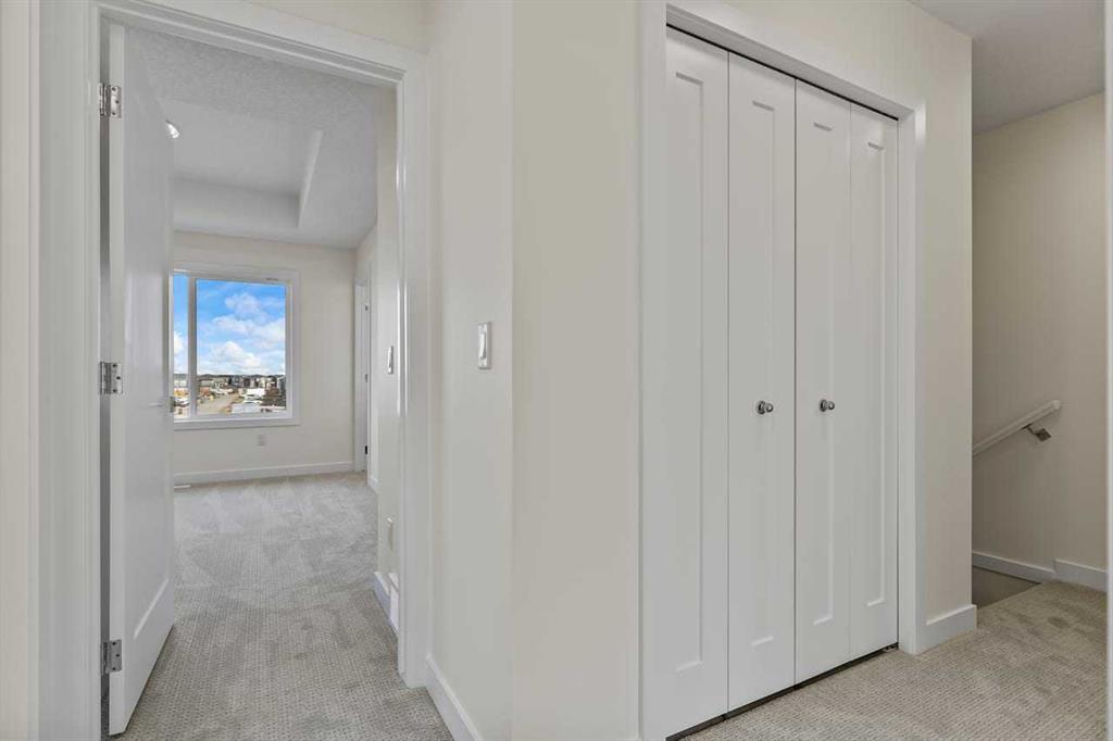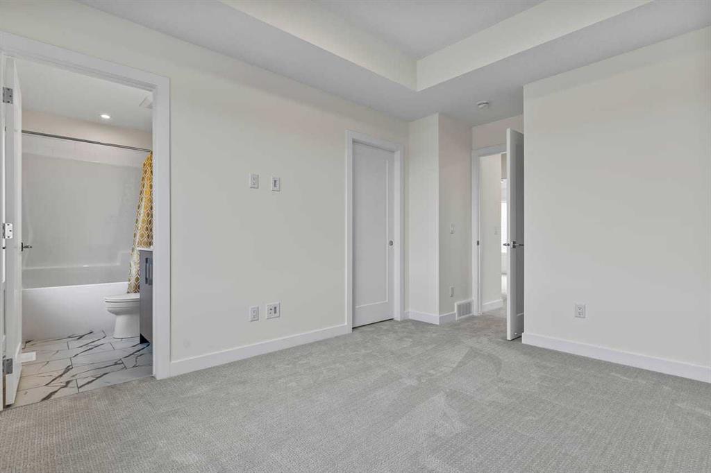 Brand-new 2025 end-unit townhome offering modern design, extra natural light, and exceptional functionality. The entry level features a welcoming foyer with ample storage and a bright bedroom — ideal for guests, a home office, or multi-generational living. The main floor showcases an open-concept layout with kitchen featuring full-height cabinetry, stainless steel appliances, pantry, and a large quartz island. Spacious dining and living areas lead to a private balcony, perfect for relaxing or entertaining, along with a convenient powder room. Upstairs, the primary suite includes a walk-in closet and private 4-piece ensuite, complemented by two additional bedrooms, a full bathroom, and upper-floor laundry. Complete with an attached double garage and end-unit privacy, this home is ideally located close to parks, future schools, shopping, and major routes.