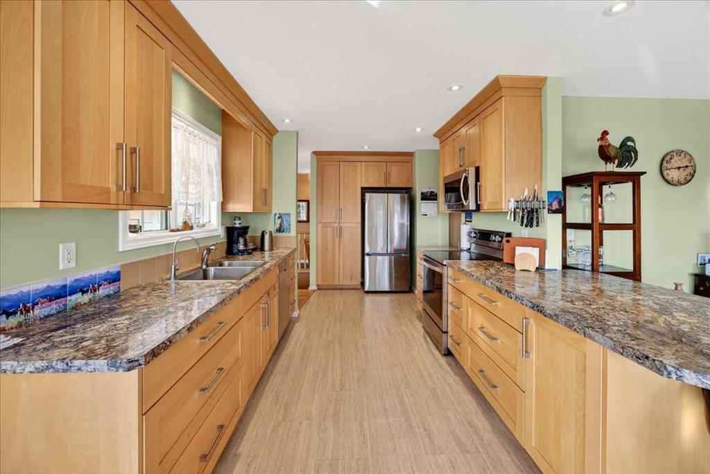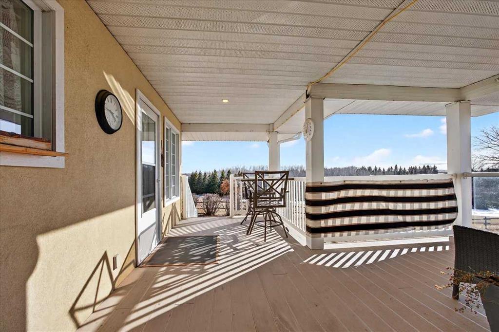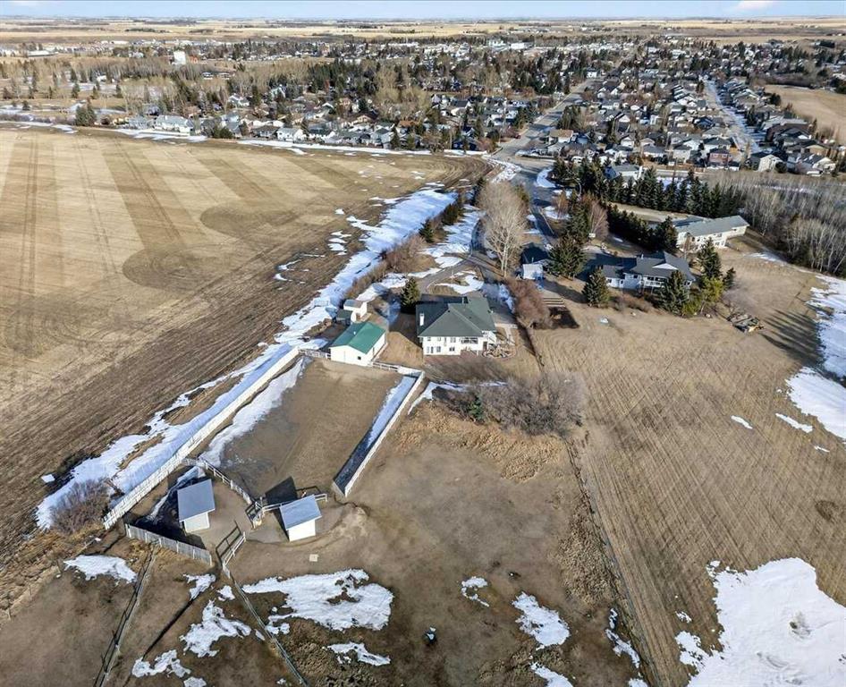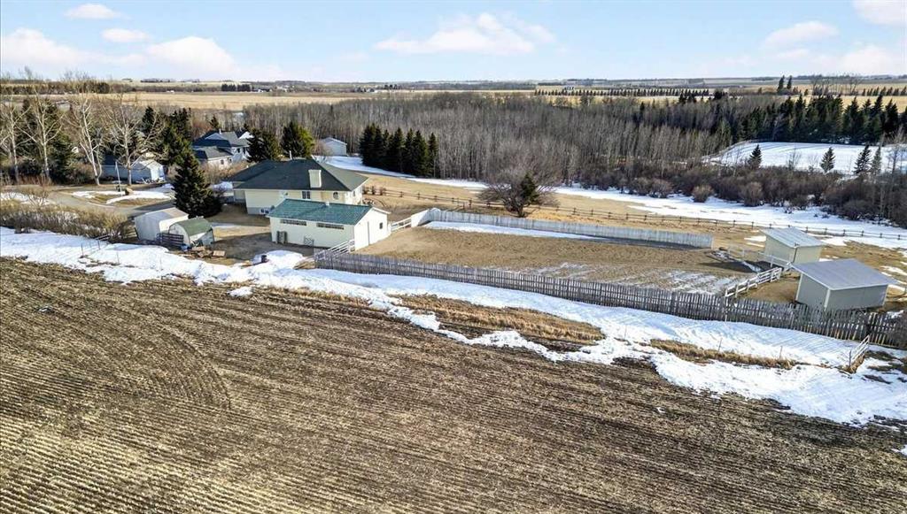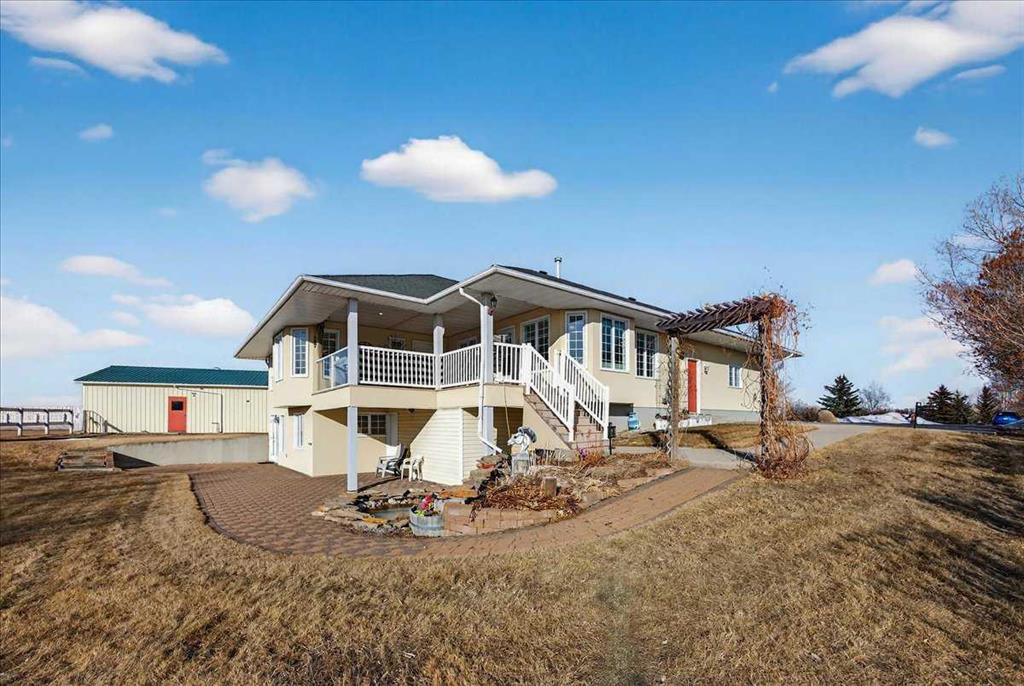 Properties like this don’t come on the market often — bring the horses! This is the lifestyle property you have been dreaming of... Original owner acreage bordering the town of Didsbury, featuring beautiful west-facing views and surrounded by open fields. This 4.57-acre property offers privacy, tranquility, and the convenience of town amenities just two minutes away — with pavement right to your garage. The spacious walk-out bungalow has been tastefully renovated. The functional kitchen features newer maple cabinets, and the large primary bedroom includes an ensuite and walk-in closet. You’ll also find a second bedroom, main-floor laundry, a powder room, and an updated 4-piece bath on the main level. Downstairs, the legal walk-out basement suite includes in-floor heating, two bedrooms, a massive family room, its own laundry, and plenty of storage — including a large utility room and cold room. The attached double garage is heated with in-floor heat and offers high ceilings. Step outside to a massive covered deck overlooking the property, or relax on the lower brick patio beside the pond — a peaceful spot that often attracts visiting moose and deer. Equestrian enthusiasts will love the heated 25' x 35' barn and riding arena, complete with a built-in tack room. The property is fenced and cross-fenced, with two horse shelters and two large sheds. The barn could easily be converted into a workshop if desired. Didsbury offers everything you need — schools, healthcare, shopping, dining, and recreation — all just minutes from your door. Plus, you’re ideally located between Calgary and Red Deer, with quick access to the QEII Highway, making commuting or weekend trips easy and convenient. With mature trees, gorgeous views, and unbeatable proximity to town, this acreage is the perfect blend of rural lifestyle and modern convenience. Don’t wait — properties like this are rare. Schedule your private viewing today!