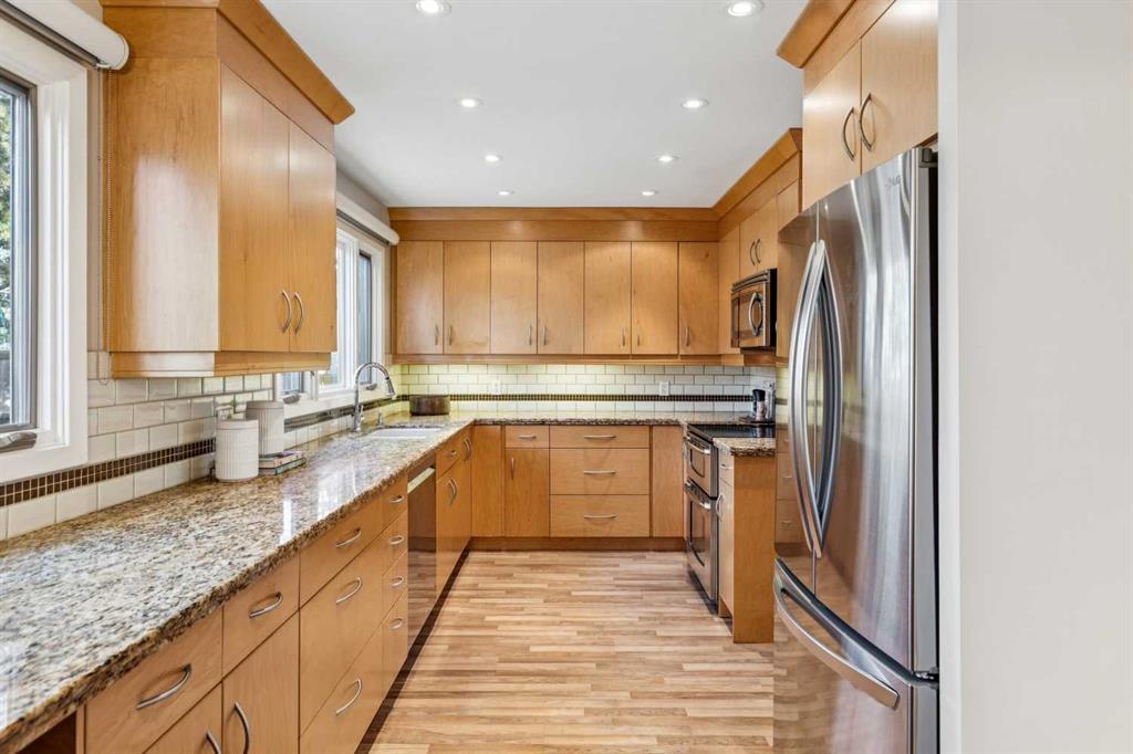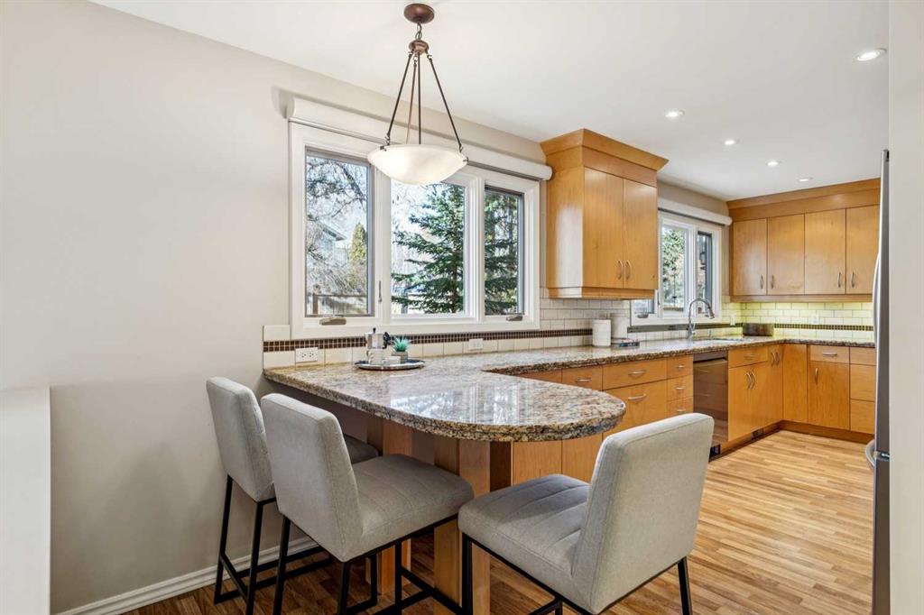 PLEASE VIEW i-GUIDE AND VIDEO. OPEN HOUSES FEB 21 AND 22 (1-4pm) Welcome to this stunning home in the quiet, highly sought-after community of Oakridge—an established, tree-lined neighbourhood known for its strong sense of community, excellent schools, and unmatched access to Calgary’s most treasured natural spaces. As you arrive, you’re welcomed into a bright, airy main level where vaulted ceilings and expansive windows fill the living and dining areas with natural light. The space feels open yet inviting—ideal for both everyday living and entertaining. Just beyond, the custom-built kitchen blends style and function, offering generous cabinetry, quality finishes, and a built-in breakfast nook for casual family meals. From the kitchen, step down into the sunken family room, where a gas fireplace creates a cozy focal point. Double walk-out doors extend your living space outdoors to the private, west-facing backyard—perfect for afternoon sun and evening sunsets on the expansive deck, surrounded by mature trees. The main floor also features convenient laundry, an updated two-piece powder room, and a practical transition area with access to the double attached garage, complete with EV charging. Upstairs, the home continues to impress with three well-appointed bedrooms. The spacious primary suite offers a private sitting area, a walk-through closet, and a spa-inspired ensuite with dual sinks and a walk-in shower. A beautifully updated four-piece bathroom serves the additional bedrooms. Overlooking the main living area, a stunning open library loft provides an ideal home office or reading retreat, while the third bedroom is thoughtfully positioned for added privacy. The fully developed, sound insulated basement adds exceptional flexibility, featuring a cozy gas fireplace, a large rec room or gym space, and a recently renovated three-piece bathroom with sauna. Ample storage, dual furnaces, and a newer hot water tank ensure comfort and efficiency year-round offering peace of mind. Beyond the home, Oakridge continues to shine. Families appreciate access to top-tier education, including Louis Riel School with its GATE and Science programs, along with excellent public, Catholic, and French Immersion options nearby. Outdoor enthusiasts will love the walking access to Anne Arnold Off-Leash Area and close proximity to Glenmore Reservoir, South Glenmore Park, and Weaselhead Natural Area—offering endless opportunities for recreation. With shopping, transit, community amenities, and major commuter routes just minutes away, this move-in-ready home offers nearly 3,000 sq. ft. of developed living space and an exceptional lifestyle in one of Southwest Calgary’s most beloved communities.