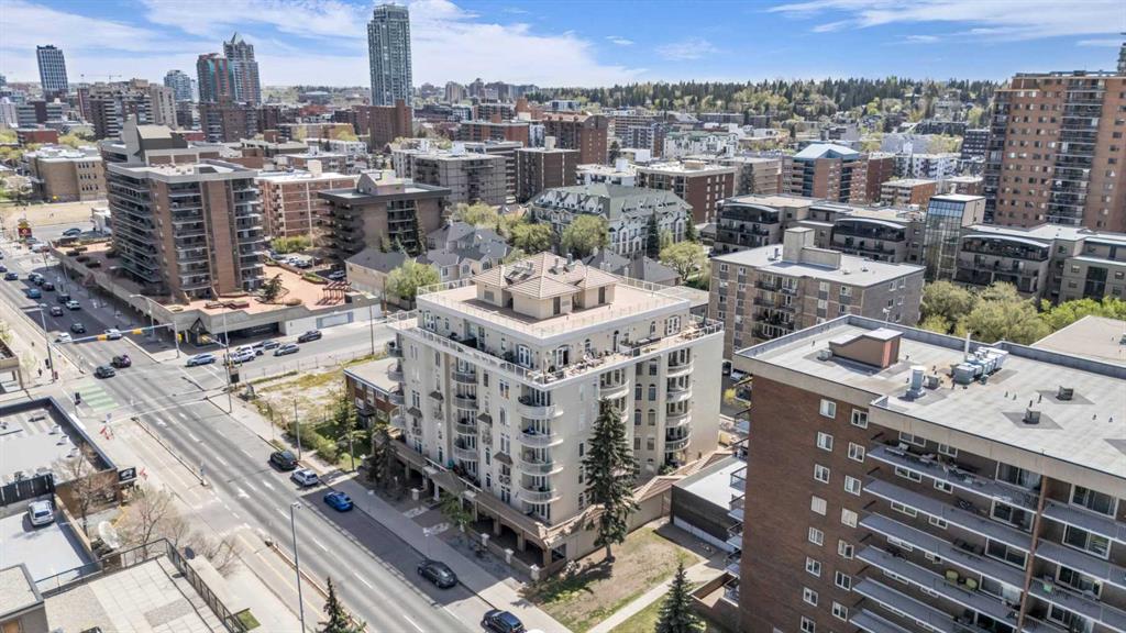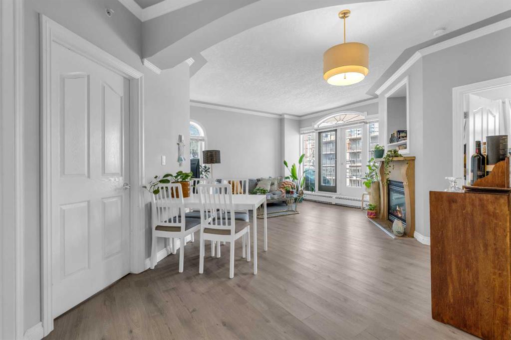 Step inside this stunning corner suite in the iconic Monaco building in Calgary's trendy Beltline district, where timeless Mediterranean-inspired architecture meets modern urban living. Designed with meticulous attention to detail, this residence features arched walls, sculpted ceilings, and grand crown moulding, creating a sense of sophistication and style throughout. Expansive arched windows invite natural light to pour into the open living space, highlighting the impressive 9 ft ceilings and enhancing the feeling of spaciousness. The architectural allure continues with French doors leading to a massive private balcony that spans the entire corner of the unit – perfect for outdoor entertaining or enjoying city views. Inside, the kitchen exudes elegance with maple cabinetry, centre island, stainless steel appliances, seamlessly connecting to the main living area, complete with a gas fireplace with a modern niche for storage. The primary suite is a serene retreat, featuring a luxurious Jacuzzi tub and custom finishes, while the second bedroom offers ample space and versatility. Building amenities include a rooftop sun deck, bike room storage, and visitor parking, all within the security of solid concrete construction. Located in the heart of the Beltline district, you’re steps away from the Bow River pathways, Sunalta and Kirby LRT stations, a few blocks to Bow River pathways17th Avenue’s eclectic shops and cafes, and the downtown core – all wrapped in architectural charm and sophisticated design.
