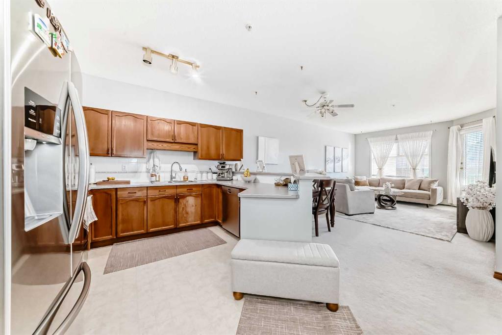 Welcome to College Gardens in the desirable community of Lincoln Park, ideally located next to Mount Royal University with quick access to transit, major routes, shopping, and everyday amenities. This bright and well-maintained third-floor condo offers a functional open layout with 2 bedrooms and 2 full bathrooms. The primary bedroom features a walk-through closet and private 4-piece ensuite. The spacious kitchen includes a breakfast bar overlooking the living and dining areas, perfect for entertaining. Enjoy the private balcony accessed from the living room. Additional features include in-suite laundry, storage room, and an underground parking stall. Well-managed complex with an attractive lobby and excellent maintenance. Conveniently located with easy access to downtown and surrounding amenities. A great opportunity for first-time buyers, students, or investors — shows very well!