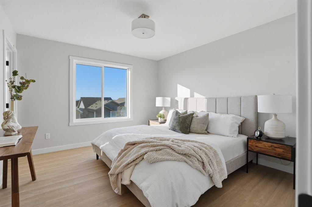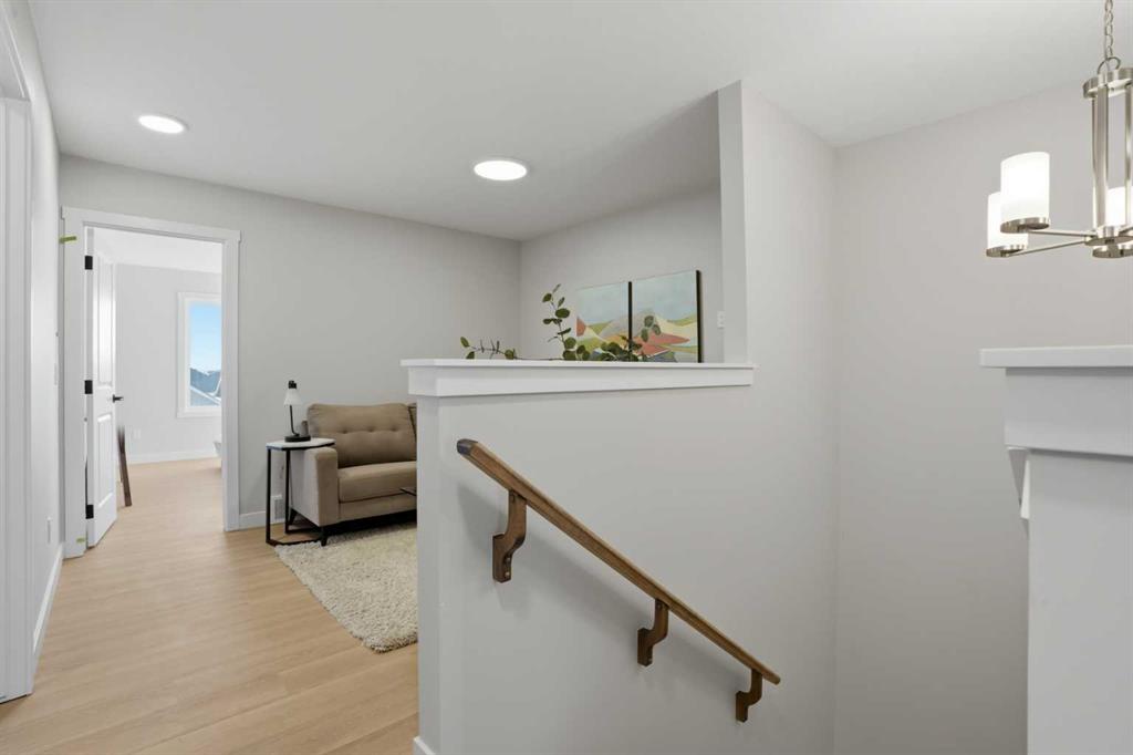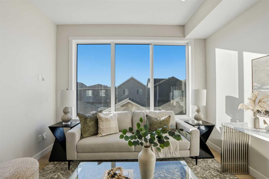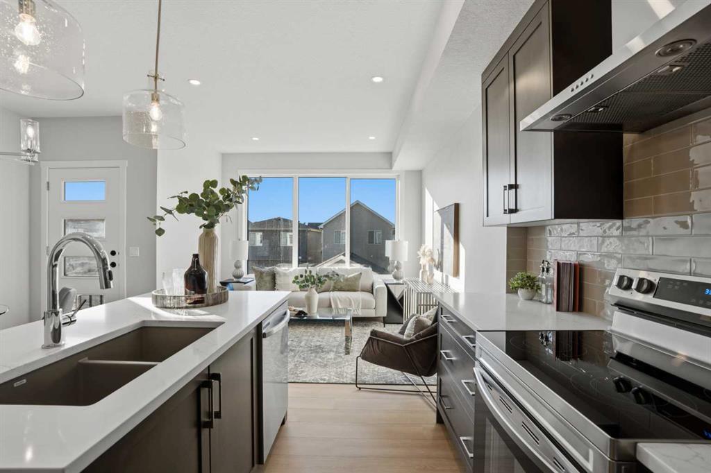 ** Brand New No Condo Fee Townhome Built by Genesis Homes ** Haley Model | End Unit | Move-in Ready | 3 Beds | 3.5 Baths | Double Attached Garage | Main Level Den/Office | Incredible Open Floor Plan | Top of the Line Finishes | Quartz Countertops | Designer Curated Backsplash | Full Height Cabinets | Builder Package Stainless Steel Appliances | Gas Line to Range | Walk-in Pantry | Wide Plank LVP Flooring | Sizeable Bedrooms | Upper Level Hall Laundry | Smart Automated Home | Balcony | BBQ Gas Line | Double Attached Garage | James Hardie Siding. This stunning Theo model by Genesis boasts 1,705 SqFt, 3 bedrooms, 2.5 bathrooms and a spacious open floor plan layout that’s perfect for families, professionals, or anyone who loves extra space. The front door opens to a main level foyer with closet space and a flex den. With large windows and high ceilings this space is space has the versatility to be an office space with a peaceful retreat for work or creativity. Head upstairs to the 2nd level to a grand floor plan both open and functional. The kitchen is outfitted with sparkling quartz countertops, ample cabinet storage, a gas line and a stainless steel builders appliance package. The centre island in the kitchen is equipped with a barstool seating area making it the perfect space to enjoy small meals and socialize while you cook. The walk-in pantry is a bonus to your dry good storage. The dining room paired with the kitchen makes for an easy stove to table transition. The spacious living room is the perfect area to unwind with your family in the evenings and is ideal for hosting guests. Just off the living room is a door to your private balcony with a gas BBQ line for those summer cook outs! This level holds a bedroom and 4pc bath. The uppermost level is complete with 2 bedrooms, 2 full bathrooms and hall laundry. The primary bedroom is a personal retreat with a deep walk-in closet and private 4pc ensuite bath with a deep tub/shower combo. Bedroom 3 is a great size with its own walk-in closet and beside this bedroom is the 4pc bath with a single vanity and tub/shower combo. The upper level laundry is a treat as its located near all the bedrooms. The double attached garage secures you 2 year round secured parking and space for seasonal storage. Located just moments from essential amenities and nestled close to a picturesque park, you’ll enjoy easy access to shops, dining, and outdoor activities. Take in breathtaking mountain views and sunsets as you stroll by the serene pond. Genesis Builders Group follows the First-Time Home Buyer GST/HST Rebate to eliminate the 5% GST on qualifying new homes (up to $1 million) for qualifying first time home buyers. Hurry and book your showing at this gorgeous Genesis home today!