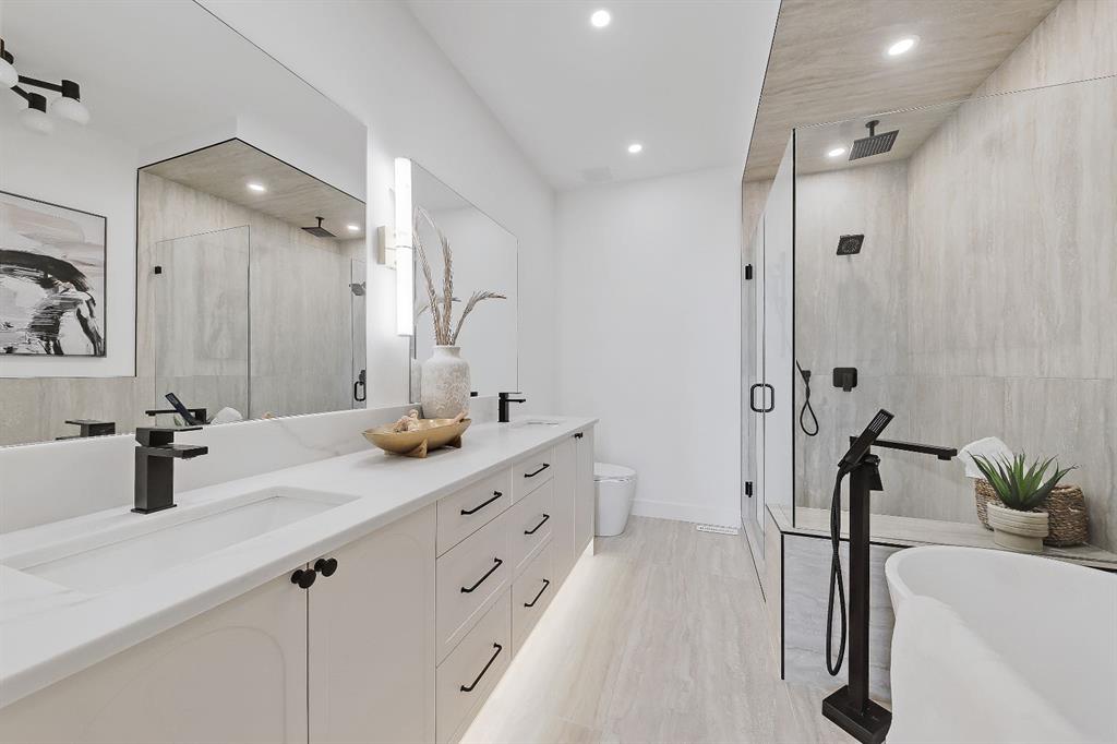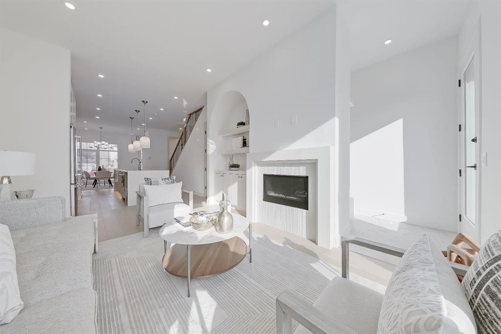 Warm, refined, and effortlessly livable, this brand-new luxury infill in Mount Pleasant blends clean-lined contemporary design with thoughtful everyday function. Designed for modern family living, this two-storey home with legal basement suite offers bright, open-concept social spaces balanced by calm, private retreats. Step inside from the covered front entry to a practical foyer complete with a built-in bench and storage. The sun-filled dining area overlooks the front streetscape through oversized windows, flowing seamlessly into a stunning open-concept chef’s kitchen. Anchoring the main floor, the oversized island offers seating for casual meals & entertaining, wrapped in quartz countertops with abundant lower drawers and full-height cabinetry along the perimeter wall. The upgraded stainless steel appliance package includes a gas range, French door refrigerator, built-in microwave, and dishwasher — ideal for everyday living and hosting alike. At the rear of the home, the spacious living room centers around a sleek gas fireplace with designer textured tile surround, flanked by custom built-in cabinetry and illuminated shelving. Large windows draw in afternoon sun and open onto the SOUTH-facing backyard & patio, creating the perfect setting for summer evenings, outdoor dining, and family gatherings. A functional rear mudroom with bench and walk-in closet keeps daily life organized, while the main-floor powder room continues the elevated finish palette with quartz counters and designer lighting. Upstairs, the primary suite is a true retreat. A soaring vaulted ceiling enhances the sense of space, complemented by a generous walk-in closet with built-in organization. The spa-inspired ensuite features a double vanity, freestanding soaking tub, and a glass-enclosed shower with bench & dual shower heads. Professionally curated designer tile and light-toned quartz create a timeless, calming atmosphere. Two additional bedrooms offer flexibility for children, guests, or a home office, sharing a full bathroom finished with vertically stacked matte tile and large-format flooring for a boutique-hotel feel. The upper-level laundry room includes cabinetry for added storage and convenience. The fully developed lower level is designed as a legal basement suite, complete with a full kitchen, spacious living area, separate laundry, and full bathroom. Ideal for rental income, multigenerational living, extended family, or guest accommodation, this income-generating suite mirrors the same high-end finishes as the main level for a cohesive, upscale feel. Located just blocks to Confederation Park, enjoy access to scenic walking paths, playgrounds, and expansive green space. Families benefit from proximity to King George School, Saint Joseph Elementary Junior High School, École de la Rose sauvage – Francophone school(Grades 7–12), Crescent Heights High School, UofC and SAIT. Close to DT & amenities this home delivers exceptional inner-city convenience. Book your showing today!