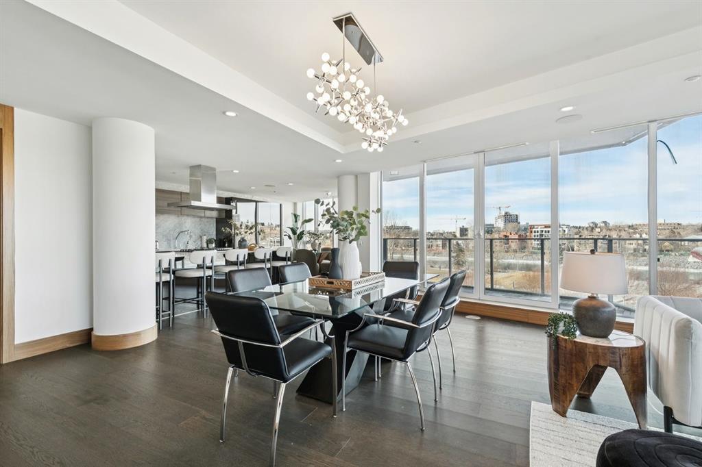 Amazing river views plus the epitome of luxury living in this exquisite original owner residence located in The Concord building, a prestigious address across from the iconic Peace Bridge in Eau Claire. A private elevator leads directly to your unit's foyer, ensuring exclusivity & privacy that is rare in urban living. Floor-to-ceiling windows facing the river flood the space with natural light, w/unobstructed NW & E views. Step inside through elegant double glass doors & be captivated by the open floor plan, which spans nearly 2,000 sq. ft. This stunning unit showcases features such as Control 4 automation, hardwood flooring, LED lighting, built-in speakers, marble finishes, and heated bathroom floors for added comfort. At the heart of this luxurious residence lies the Poggenpohl kitchen, equipped with white stone countertops, a spacious island that seats four, and top-of-the-line Miele appliances, including a gas cooktop, built-in refrigerator, and wine fridge—ideal for both cooking & entertaining. The formal dining room, adorned with a stunning chandelier, seamlessly flows into the expansive living room, which includes access to two private balconies—perfect for morning coffee or evening cocktails—while a cozy gas fireplace adds warmth. Journey down the hall to find the large primary bedroom, offering direct access to one of the balconies through generous patio glass doors. The opulent 5-piece ensuite features his/her sinks, a tall glass and marble shower, heated floors, & a luxurious jacuzzi soaker tub. The spacious walk-in closet ensures effortless organization. Bedroom two features glass patio doors leading to the same balcony, a large closet with built-ins, & a stylish 4-piece ensuite bathroom with a tub/shower combo & heated flooring. Indulge in exceptional craftsmanship & meticulous attention to detail throughout this remarkable residence. Custom built-ins, walnut wood accents, and a separate laundry closet reflect a commitment to quality and style. This residence includes Level 2 charging in the oversized private garage w/ one of the largest storage units, ensuring ample space for all your belongings. With a dedicated 24-hour concierge, every need is met with grace, allowing you to indulge in true luxury. The heated garage offers guest parking & a car wash facility, complete with a separate undercarriage wash, ensuring your vehicles stay pristine. The building's amenities enhance your living experience, featuring a state-of-the-art fitness center, an elegant party room, & a beautiful patio area with BBQ space overlooking a serene pond. In winter, this charming pond transforms into a picturesque skating rink, perfect for seasonal recreation. Experience the ultimate in luxurious living—call today to schedule a showing & take the first step toward making this extraordinary condo your new home. Embrace a lifestyle defined by elegance and Luxury.