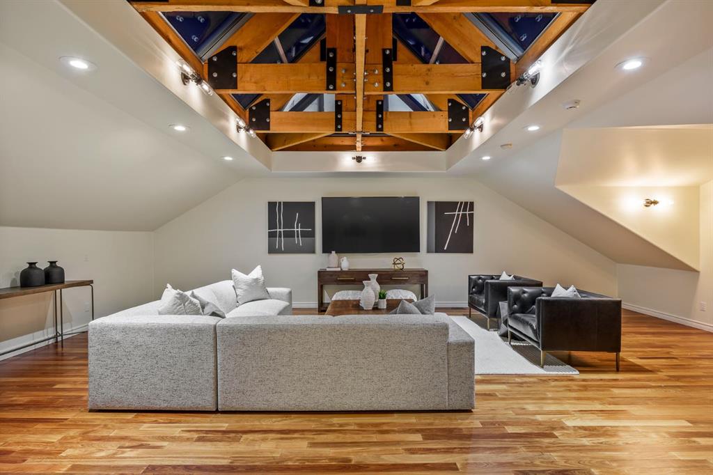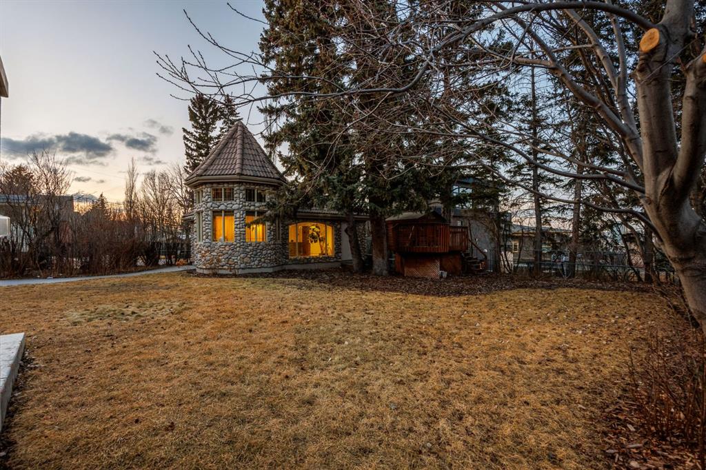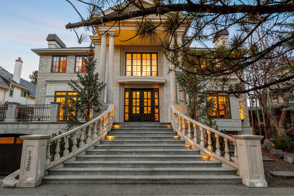 Set on an exceptional 0.31-acre estate lot in the heart of prestigious Upper Mount Royal, this extraordinary 2½-storey luxury residence offers a rare opportunity in one of Calgary’s most coveted neighbourhoods. Completely re-imagined and renovated by award-winning Rockwood Custom Homes in 2018, the property delivers over 8,700 sq. ft. of beautifully developed living space, including close to 6,050 sq. ft. above grade, blending timeless elegance with modern sophistication. The striking stone exterior complements the historic character of the community, while the interior showcases exceptional craftsmanship throughout. A dramatic 19-foot foyer welcomes you with marble floors, a sweeping dual staircase, and a custom Swarovski crystal chandelier. Designed for both refined entertaining and everyday living, the main level features an expansive chef’s kitchen with marble backsplash, premium Sub-Zero, Faber and Dacor appliances, quartz countertops, ample storage, and an oversized leathered granite island. The adjacent great room is highlighted by coffered ceilings and floor-to-ceiling windows and flows seamlessly to a covered outdoor living and kitchen area with a built-in fireplace and grill. Infratech heaters and the addition of retractable screens transform this space into a comfortable three-season space. A formal dining room and private office, both with gas fireplaces, along with a discreet powder room, complete the main floor. Upstairs, the private quarters are anchored by an exceptional primary retreat featuring dual walk-in closets and adjoining yet separate spa-inspired ensuite bathrooms. Two additional bedrooms each include their own four-piece ensuite, along with a dedicated laundry room. The third-floor loft offers flexible space ideal for a home gym or lounge with vaulted ceilings, skylight, and opens up to a balcony with unrivalled downtown city views. The fully developed lower level includes a spacious recreation and media room, guest bedroom with full ensuite, and a glass-enclosed wine room with sink and elegant bottle storage. The generous sized mudroom with additional Sub-Zero refrigerator and freezer adds everyday convenience and function. An oversized heated four-car garage connects via a heated underground tunnel to a private, standalone spa pavilion featuring almost 500 sq. ft. of wellness space with dry sauna, steam shower, powder room and additional space for a cold plunge or hot tub —an exceptionally rare amenity that can be accessed without ever stepping a foot outside. Professionally landscaped grounds include mature trees, extensive irrigation, stone detailing, and a large south-facing backyard with a charming treehouse. Additional features include ELAN smart-home integration, built-in speakers, state-of-the-art security, a heated driveway with upgraded grating system, and proximity to The Glencoe Club, top schools, parks, downtown, and the shops and dining of 17th Avenue S.W.